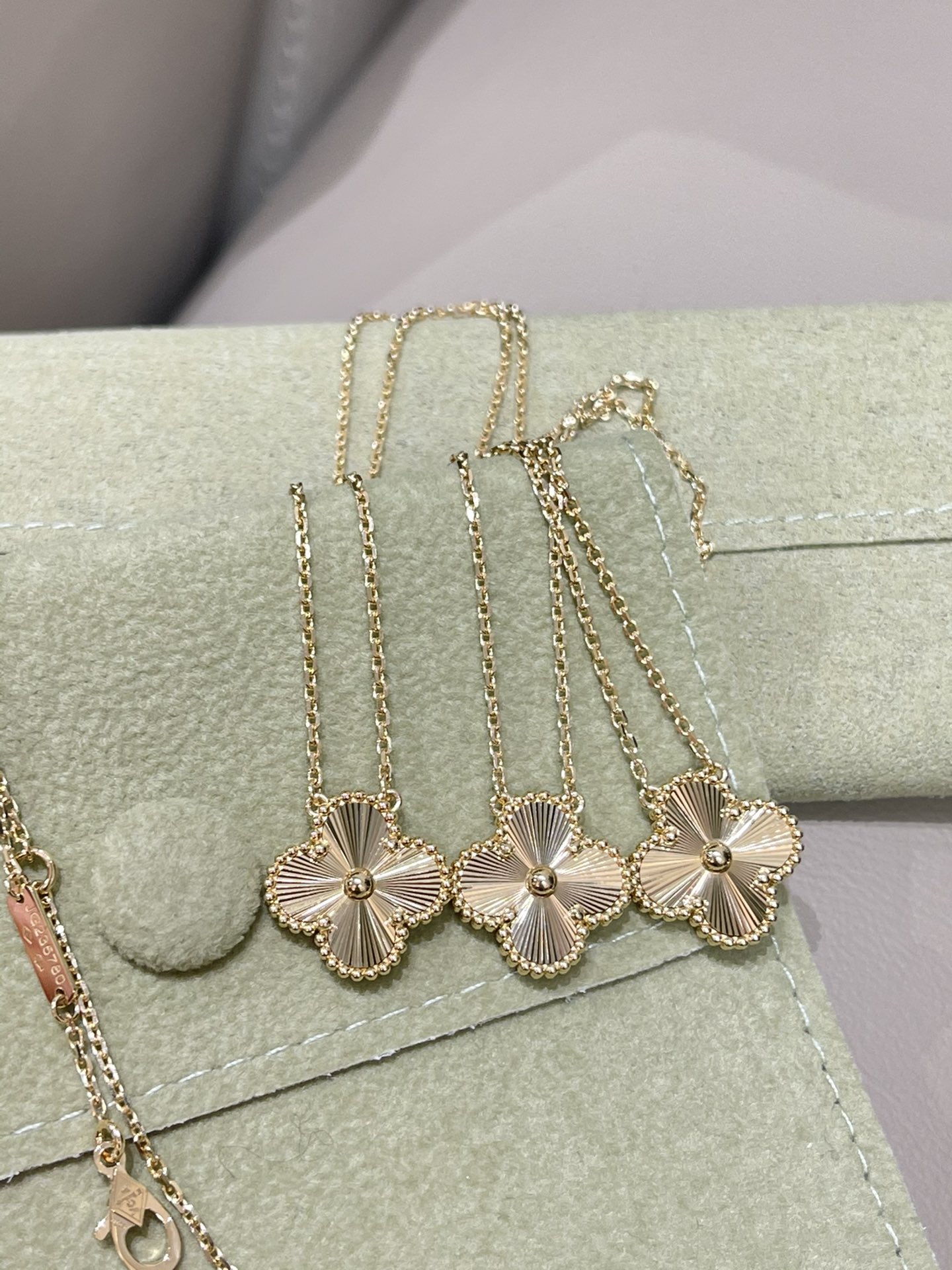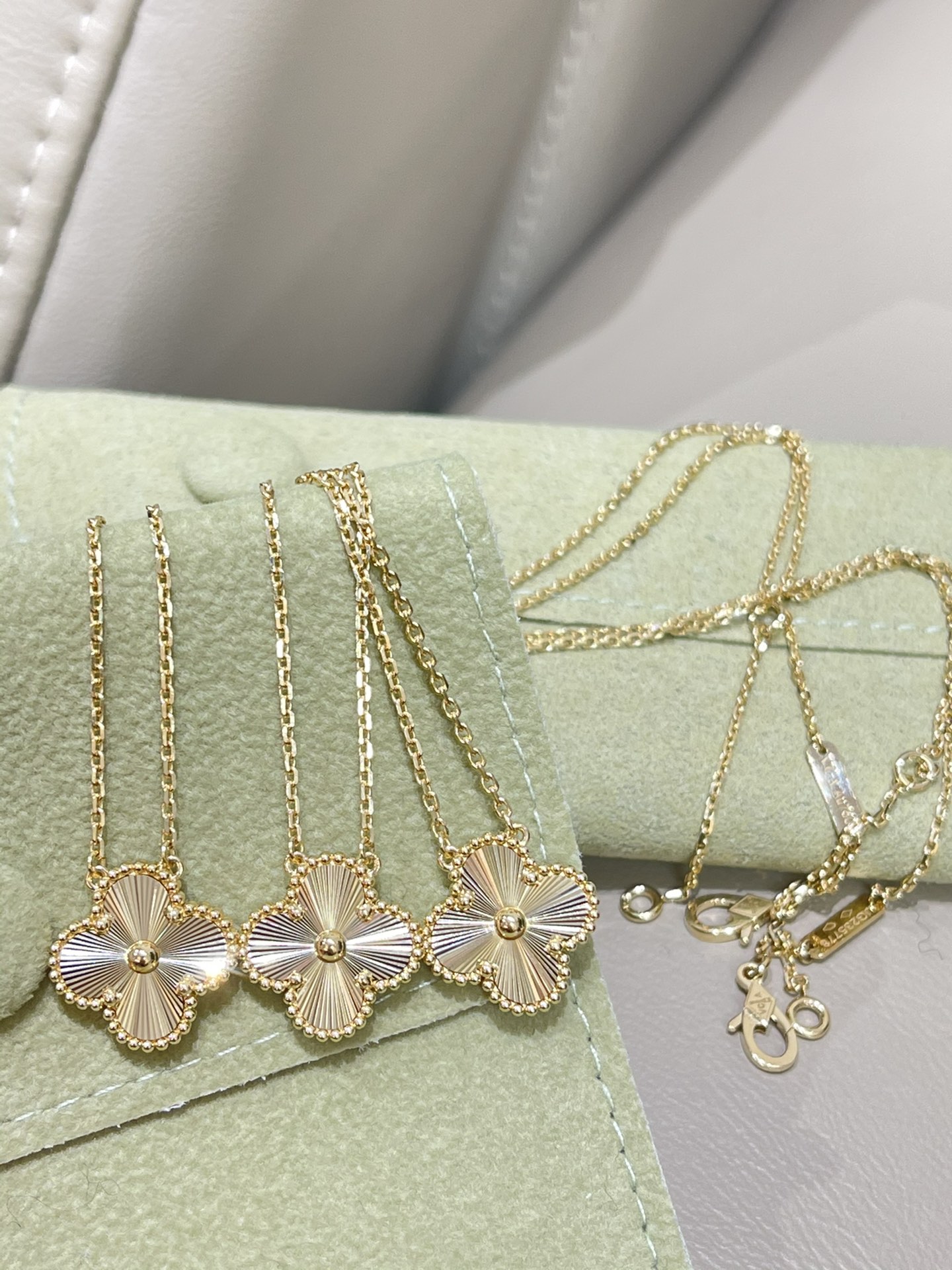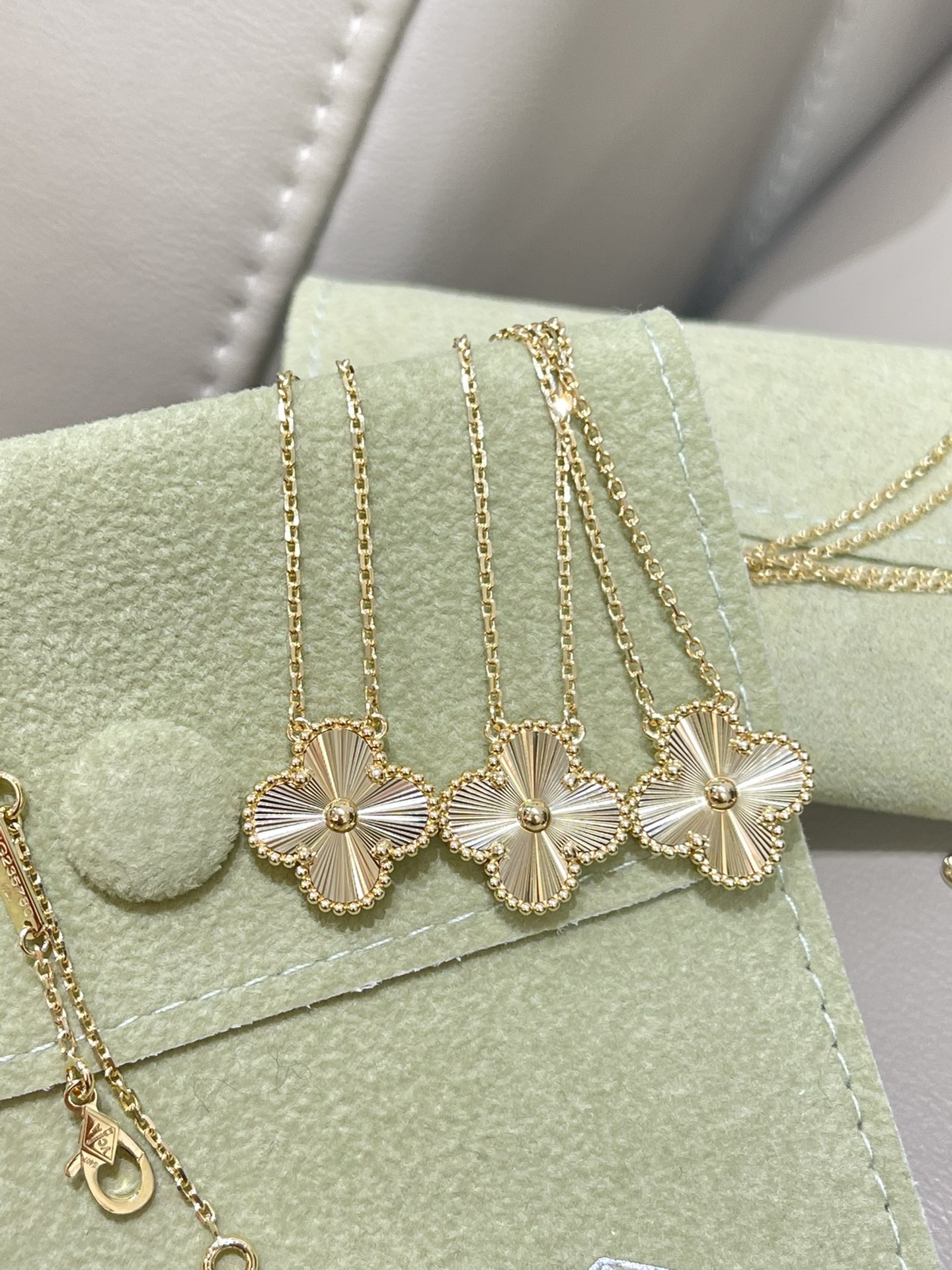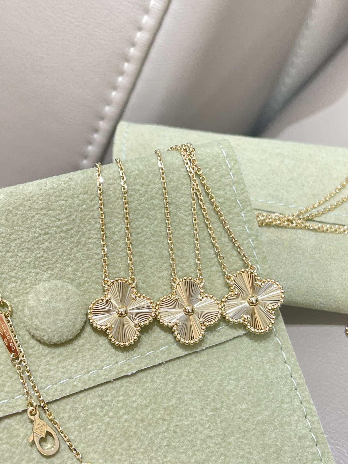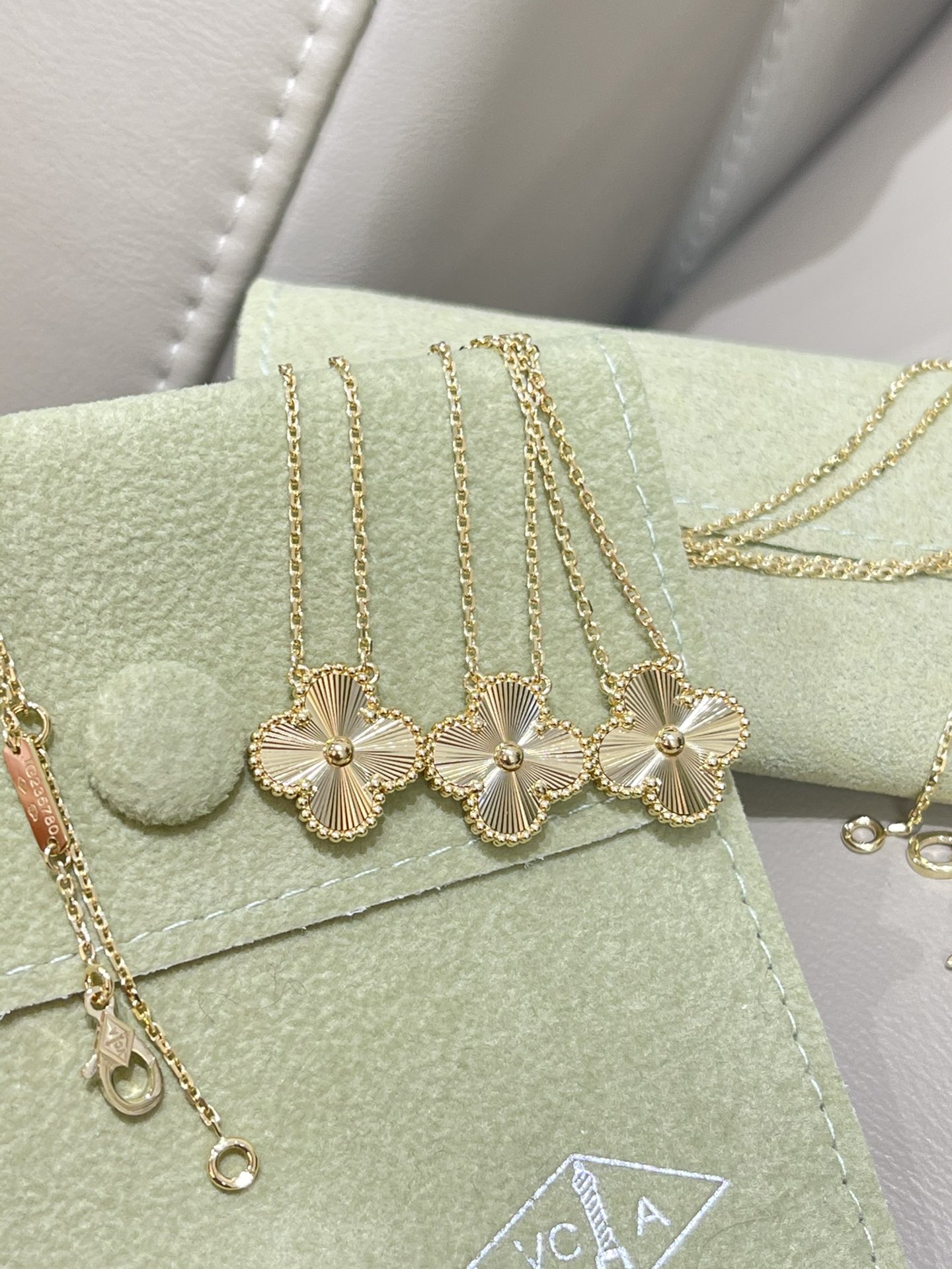 这款首饰是AAAAA 1:1 质量 (非常棒). 使用了和原版一模一样的材料. 商标部分也保持了和梵克雅宝/Van Cleef & Arpels一样. 图片拍摄是实物首饰拍摄, 您所收到的实物保证和我们图片一模一样.