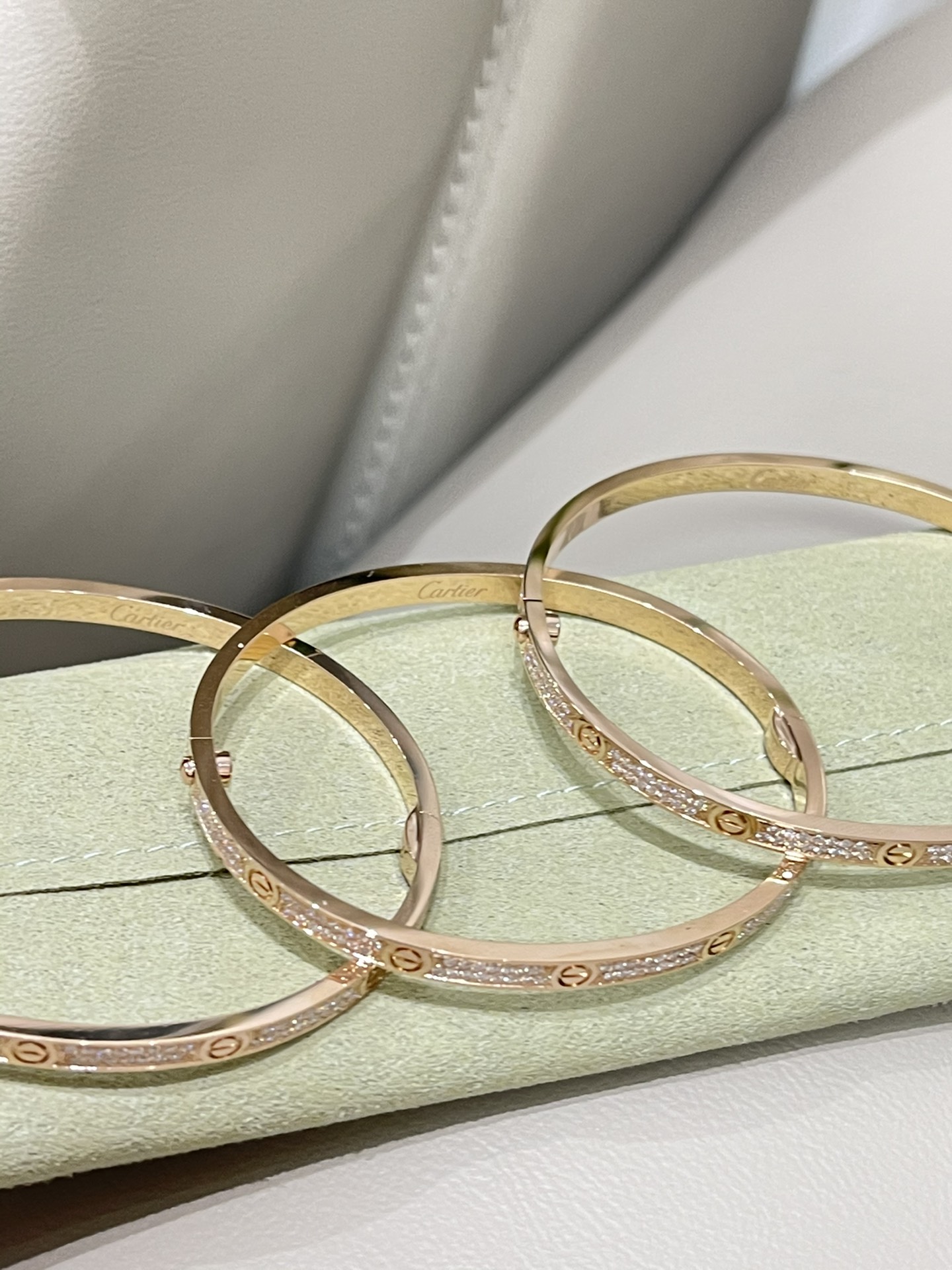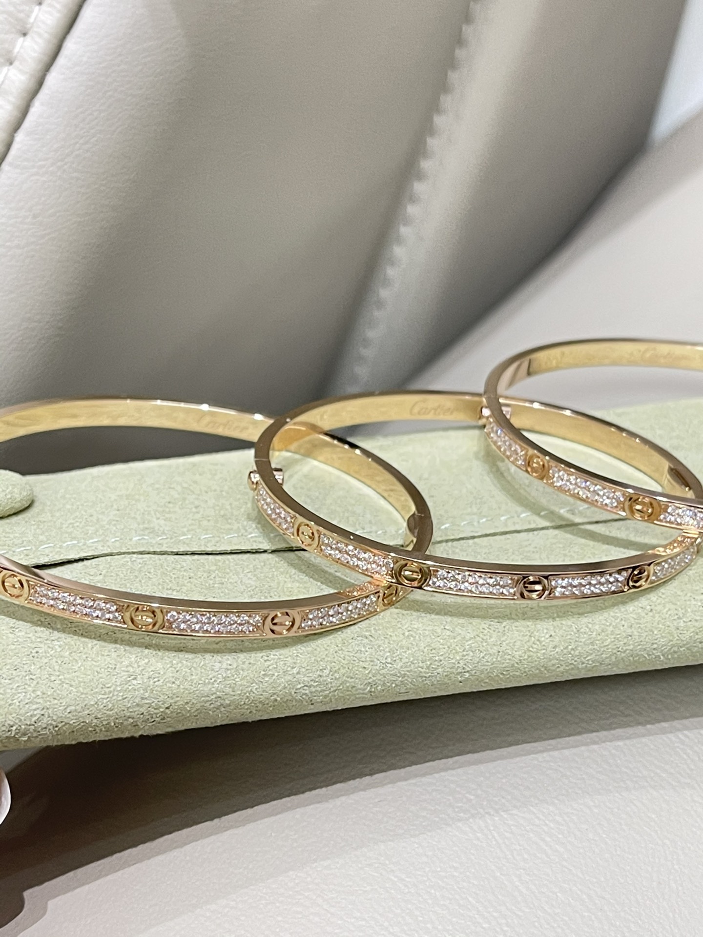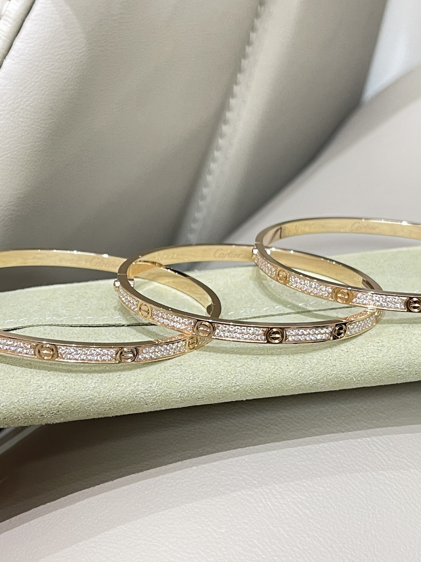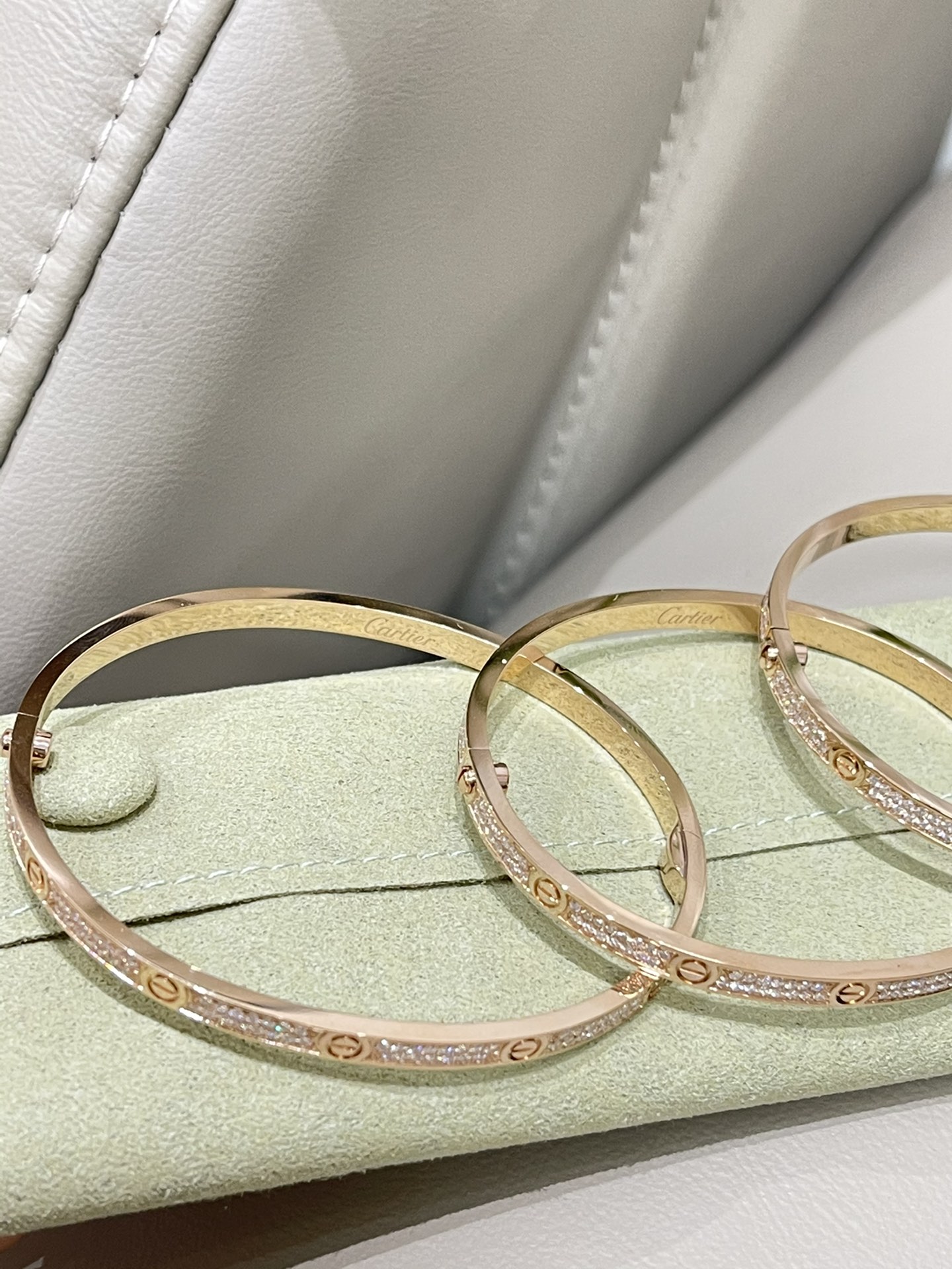 这款首饰是AAAAA 1:1 质量 (非常棒). 使用了和原版一模一样的材料. 商标部分也保持了和卡地亚/Cartier一样. 图片拍摄是实物首饰拍摄, 您所收到的实物保证和我们图片一模一样.