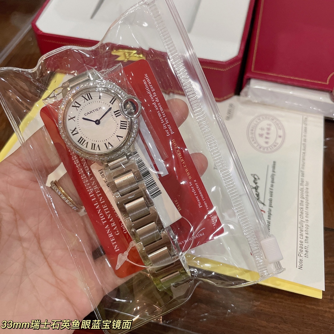 这款手表是AAAAA 1:1 质量 (非常棒). 使用了和原版一模一样的材料. 商标部分也保持了和卡地亚/Cartier一样. 图片拍摄是实物手表拍摄, 您所收到的实物保证和我们图片一模一样.
