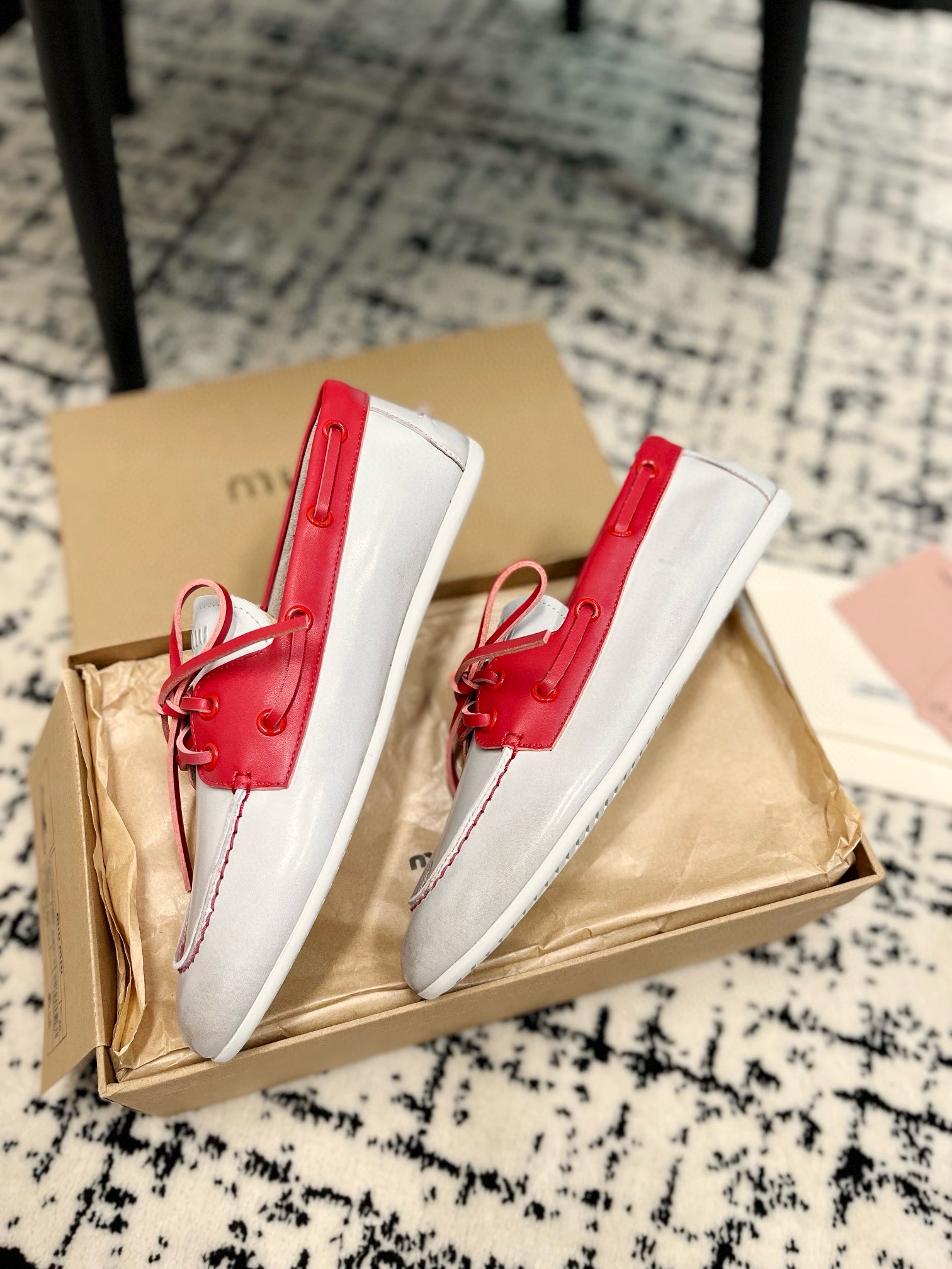 这款鞋子是AAAAA 1:1 质量 (非常棒). 使用了和原版一模一样的材料. 商标部分也保持了和缪缪/Miu Miu一样. 图片拍摄是实物鞋子拍摄, 您所收到的实物保证和我们图片一模一样.