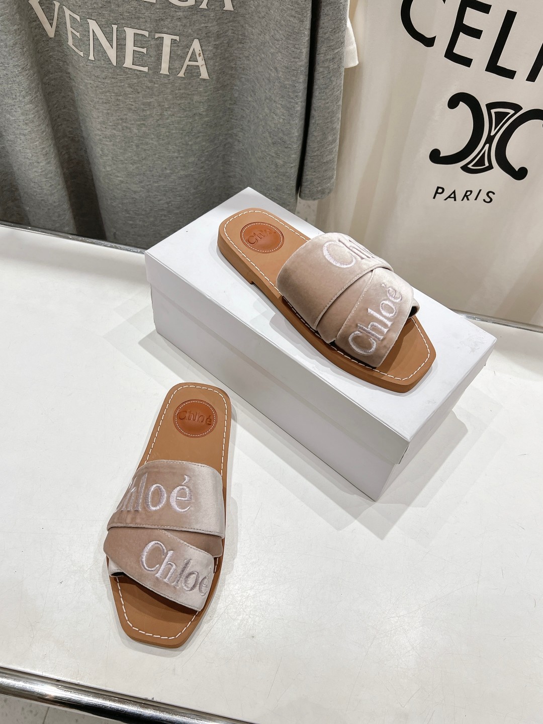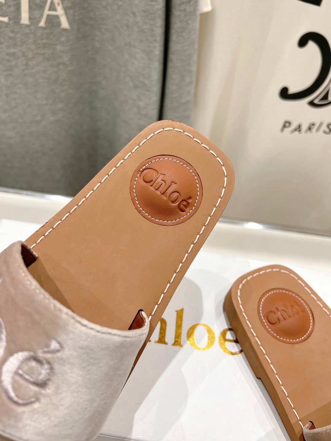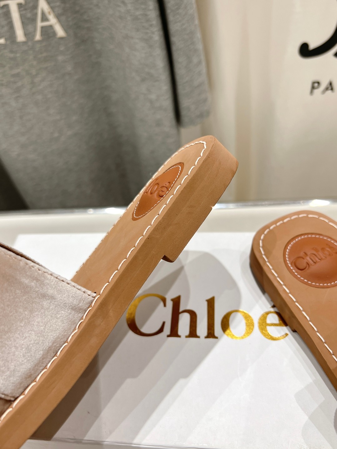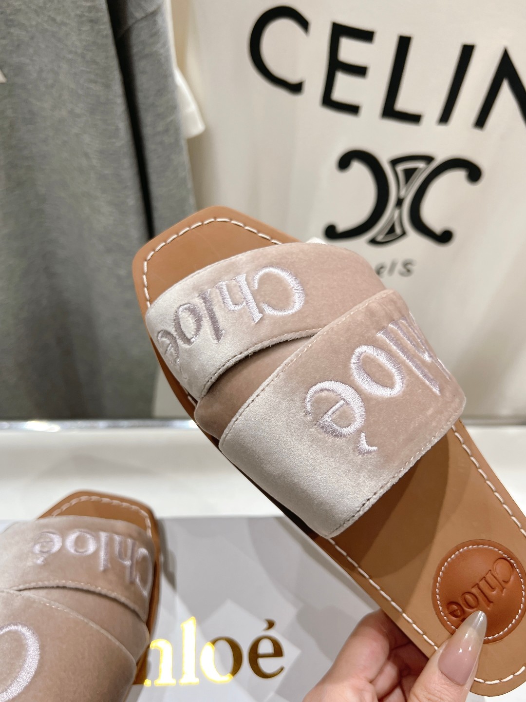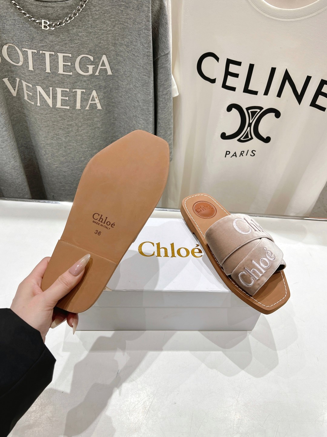 这款鞋子是AAAAA 1:1 质量 (非常棒). 使用了和原版一模一样的材料. 商标部分也保持了和克洛伊/Chloe一样. 图片拍摄是实物鞋子拍摄, 您所收到的实物保证和我们图片一模一样.