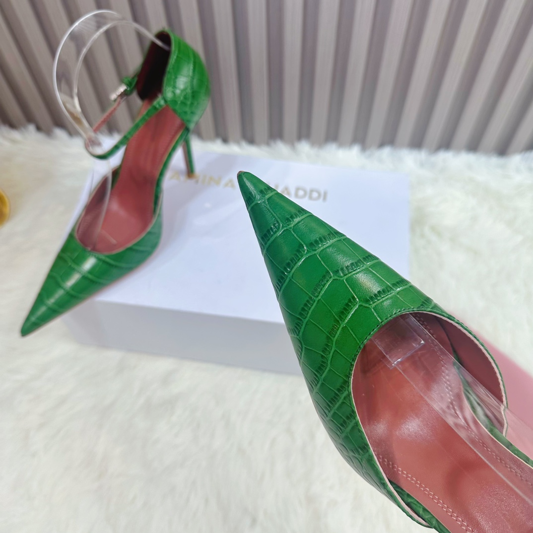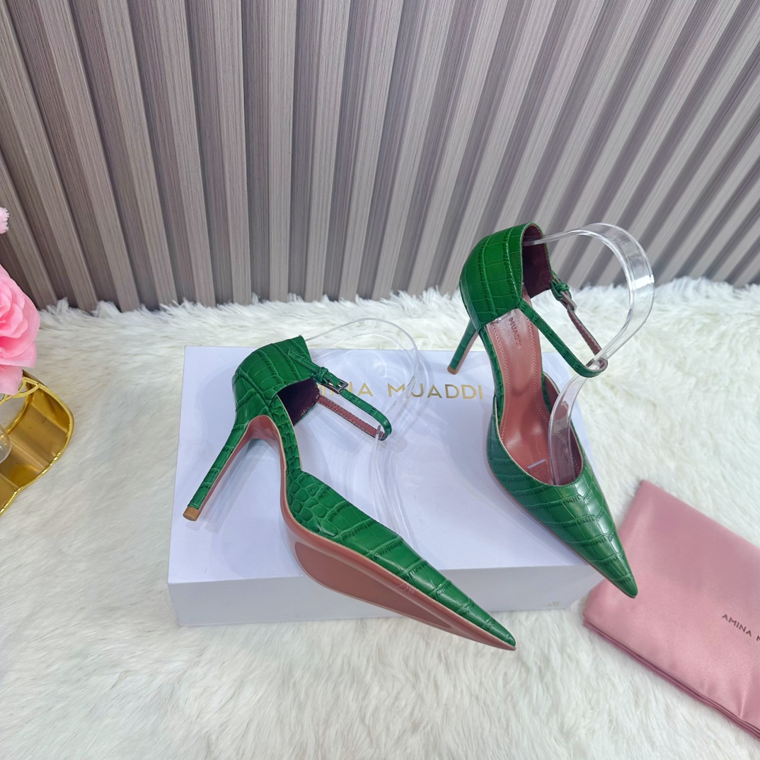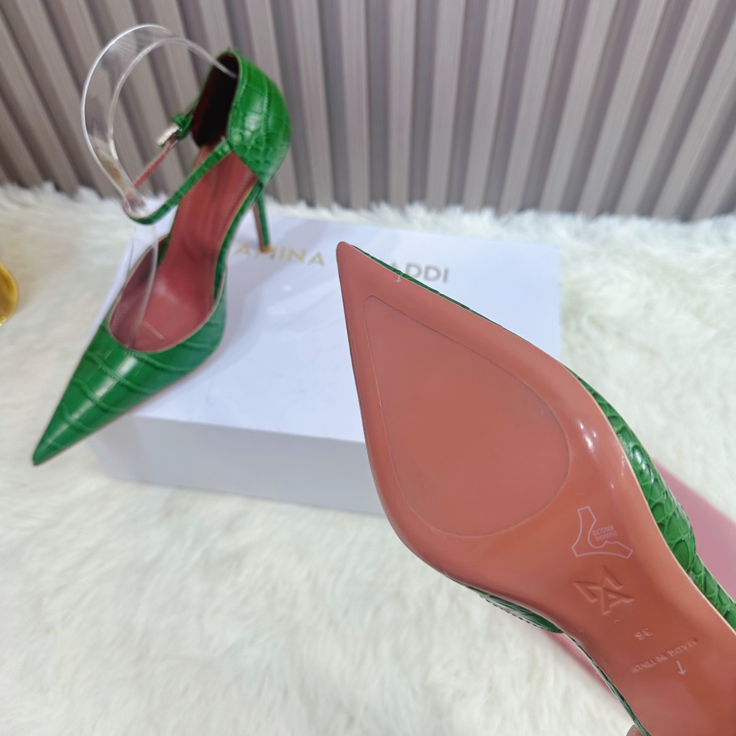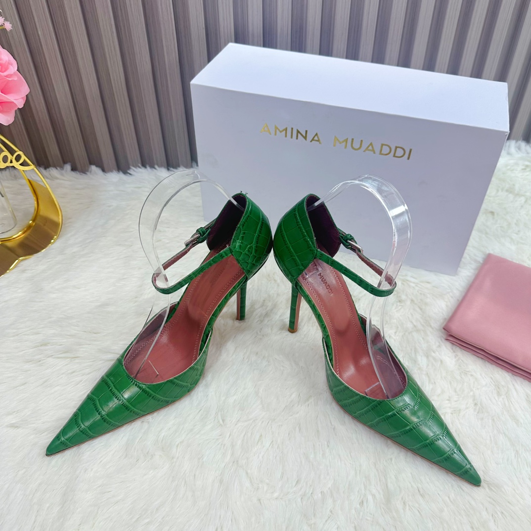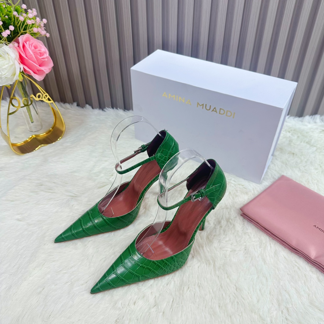 这款鞋子是AAAAA 1:1 质量 (非常棒). 使用了和原版一模一样的材料. 商标部分也保持了和Amina Muaddi一样. 图片拍摄是实物鞋子拍摄, 您所收到的实物保证和我们图片一模一样.