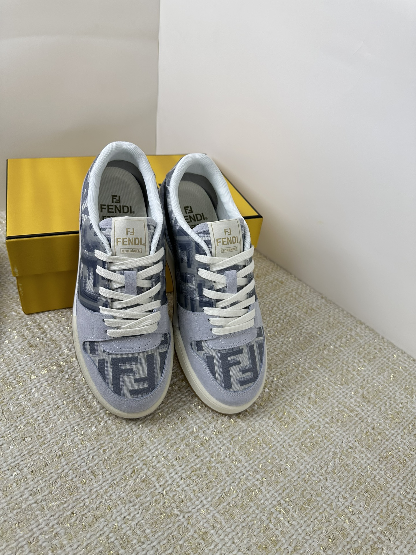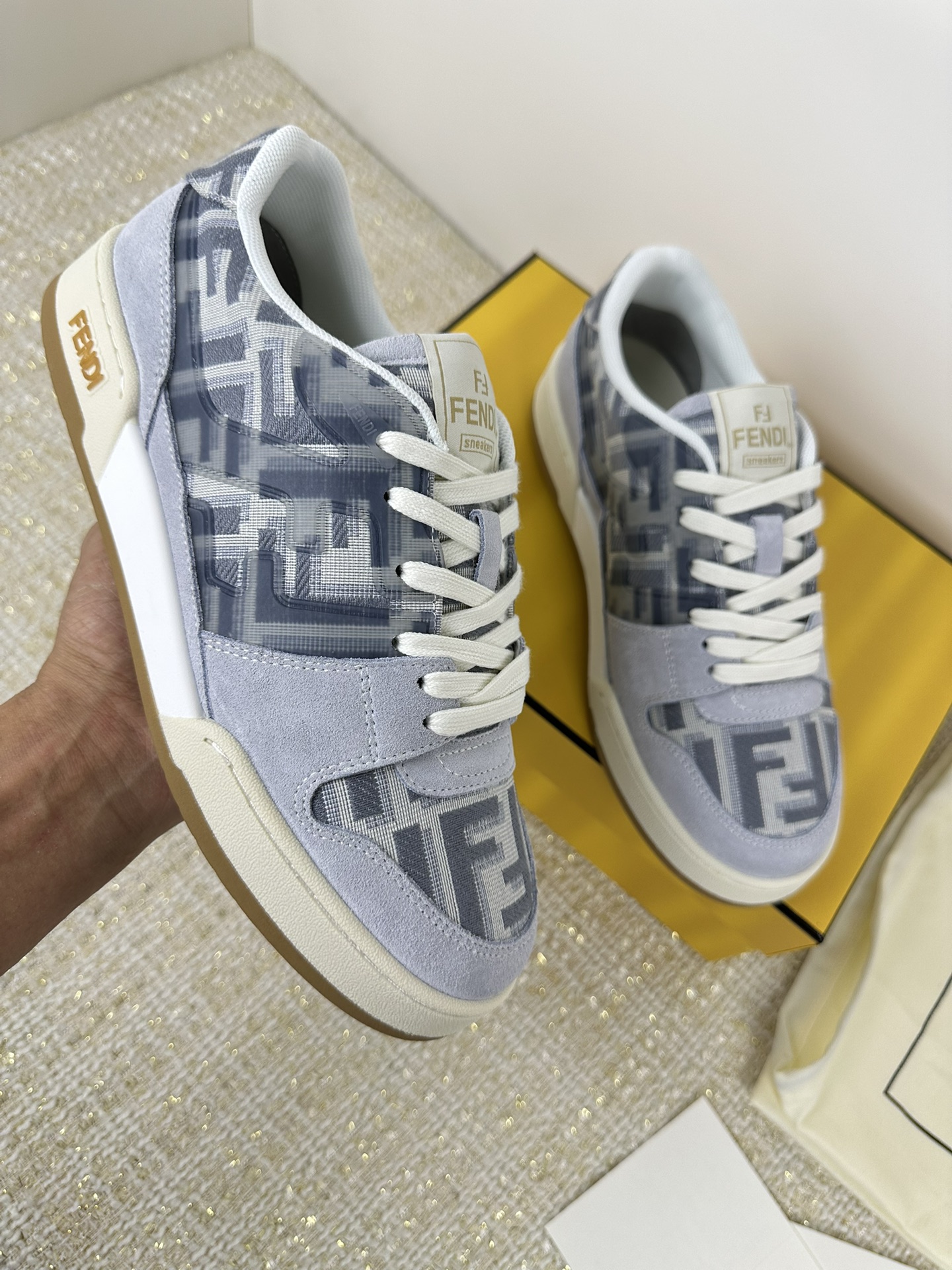 这款鞋子是AAAAA 1:1 质量 (非常棒). 使用了和原版一模一样的材料. 商标部分也保持了和芬迪/Fendi一样. 图片拍摄是实物鞋子拍摄, 您所收到的实物保证和我们图片一模一样.