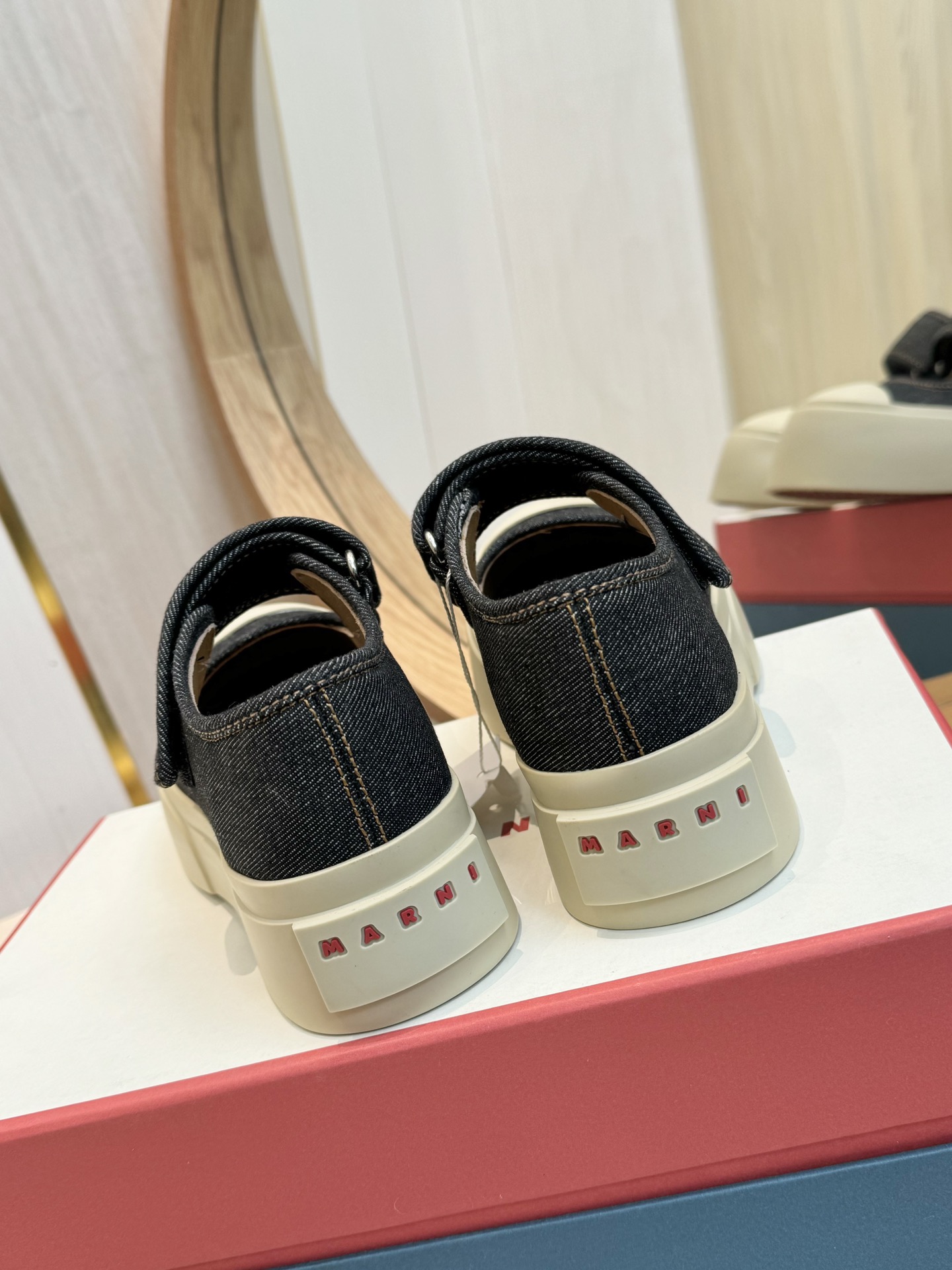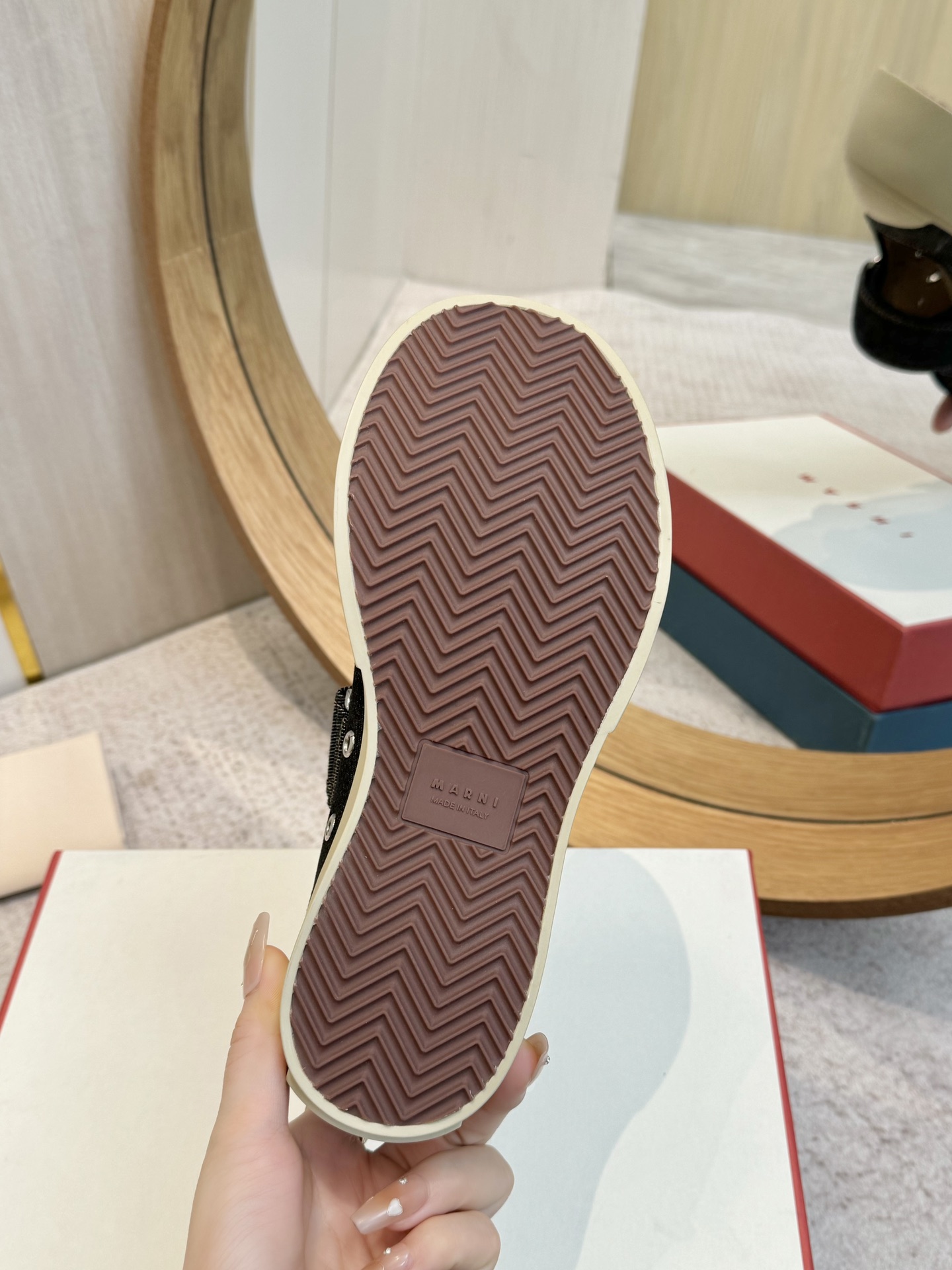 这款鞋子是AAAAA 1:1 质量 (非常棒). 使用了和原版一模一样的材料. 商标部分也保持了和马尔尼/Marni一样. 图片拍摄是实物鞋子拍摄, 您所收到的实物保证和我们图片一模一样.