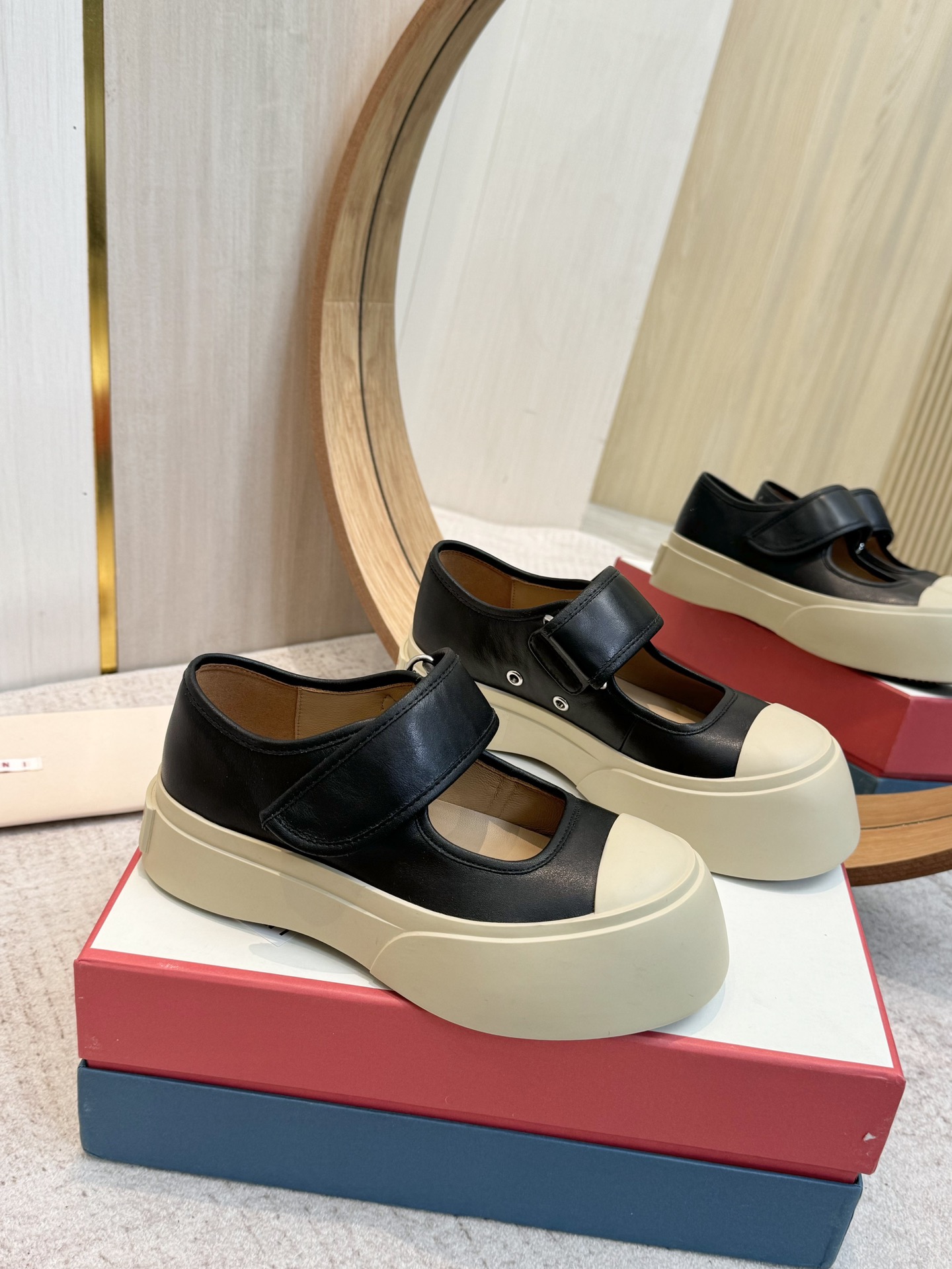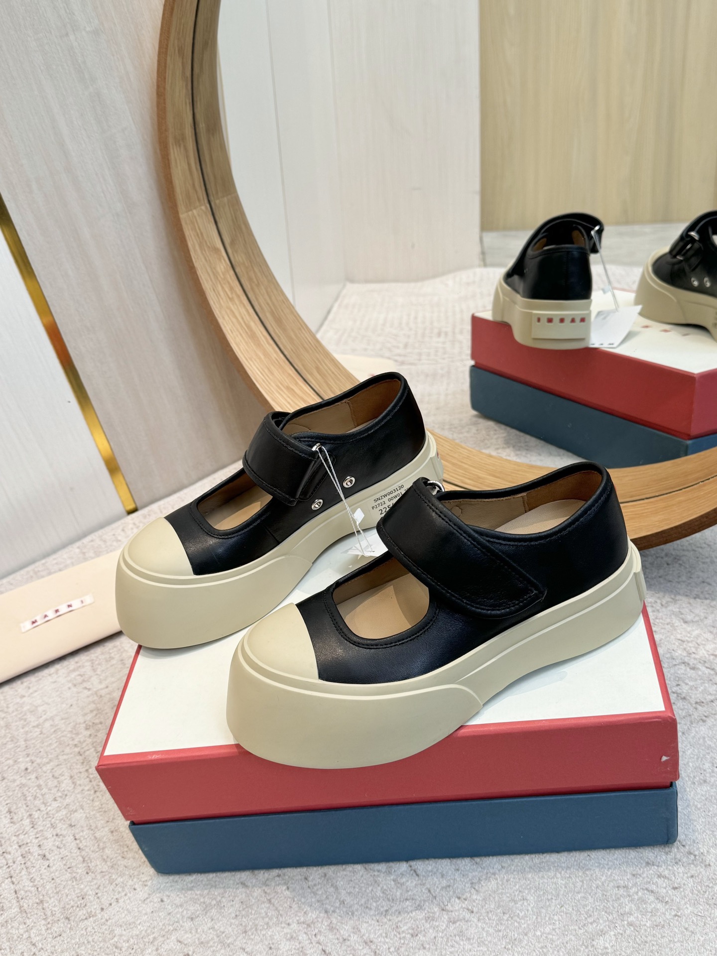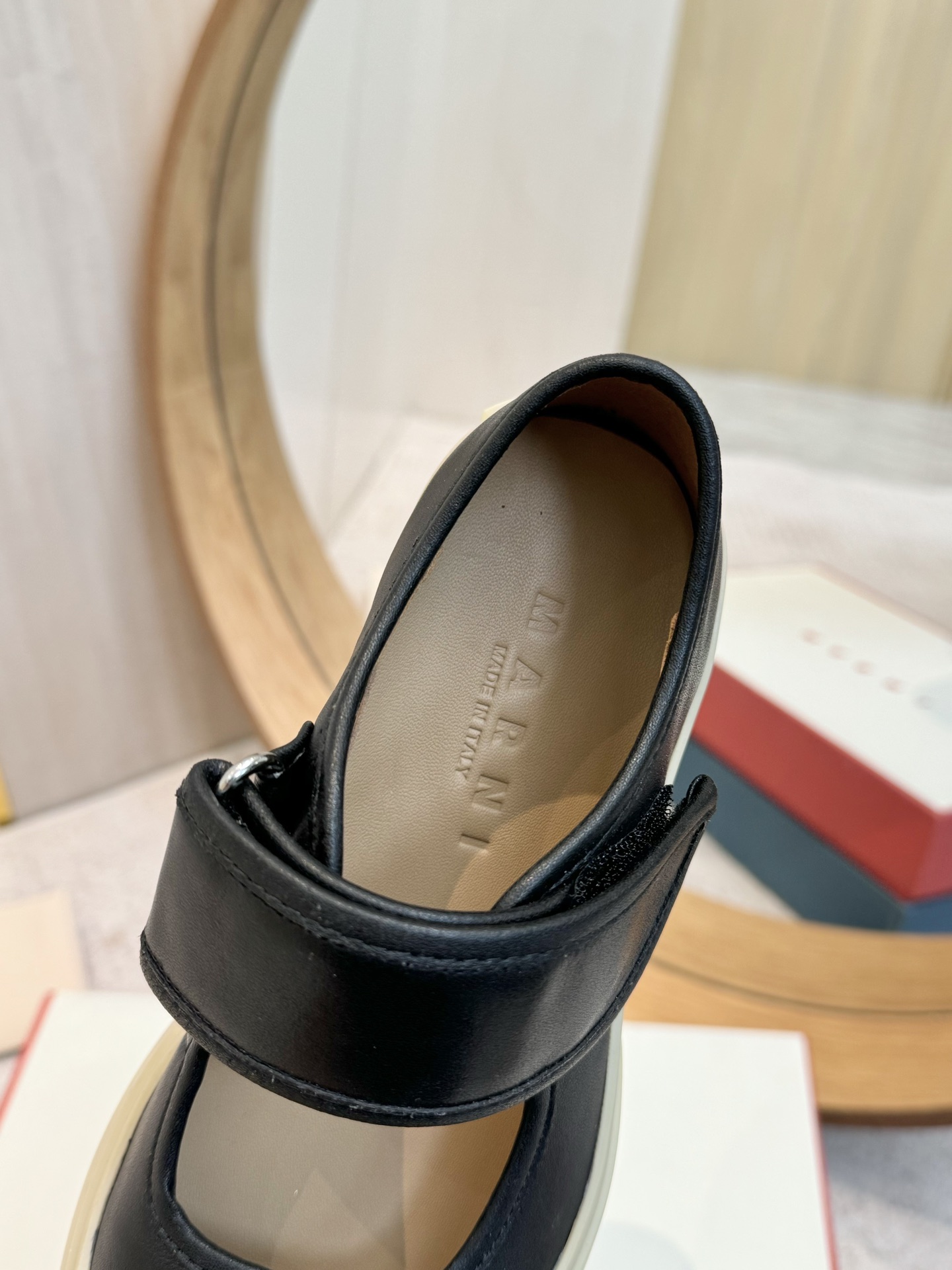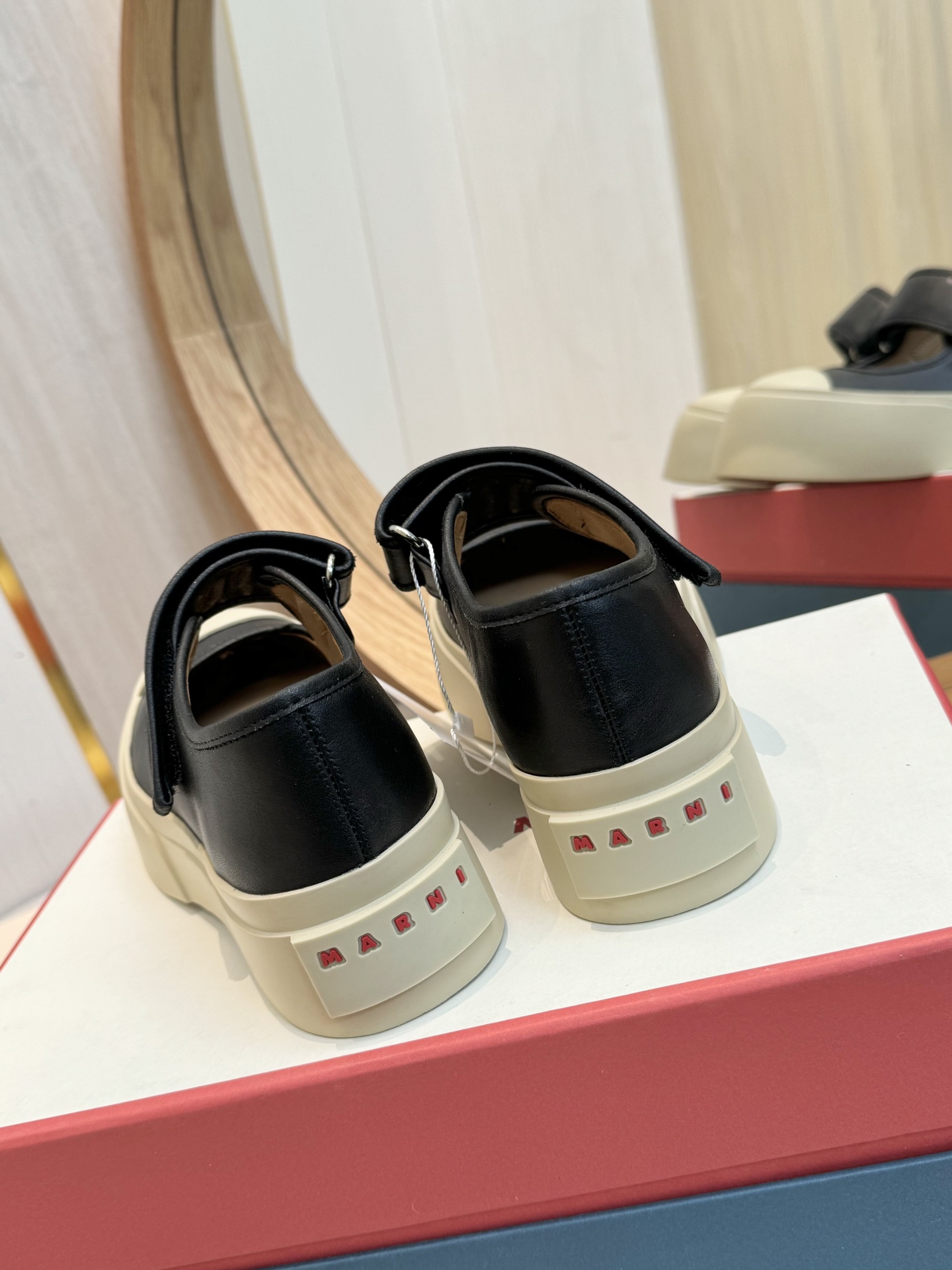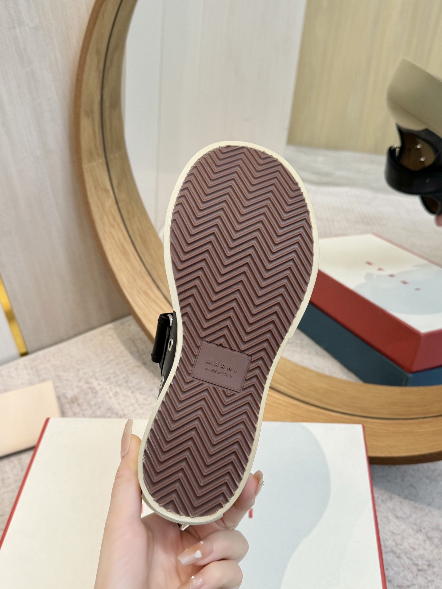 这款鞋子是AAAAA 1:1 质量 (非常棒). 使用了和原版一模一样的材料. 商标部分也保持了和马尔尼/Marni一样. 图片拍摄是实物鞋子拍摄, 您所收到的实物保证和我们图片一模一样.