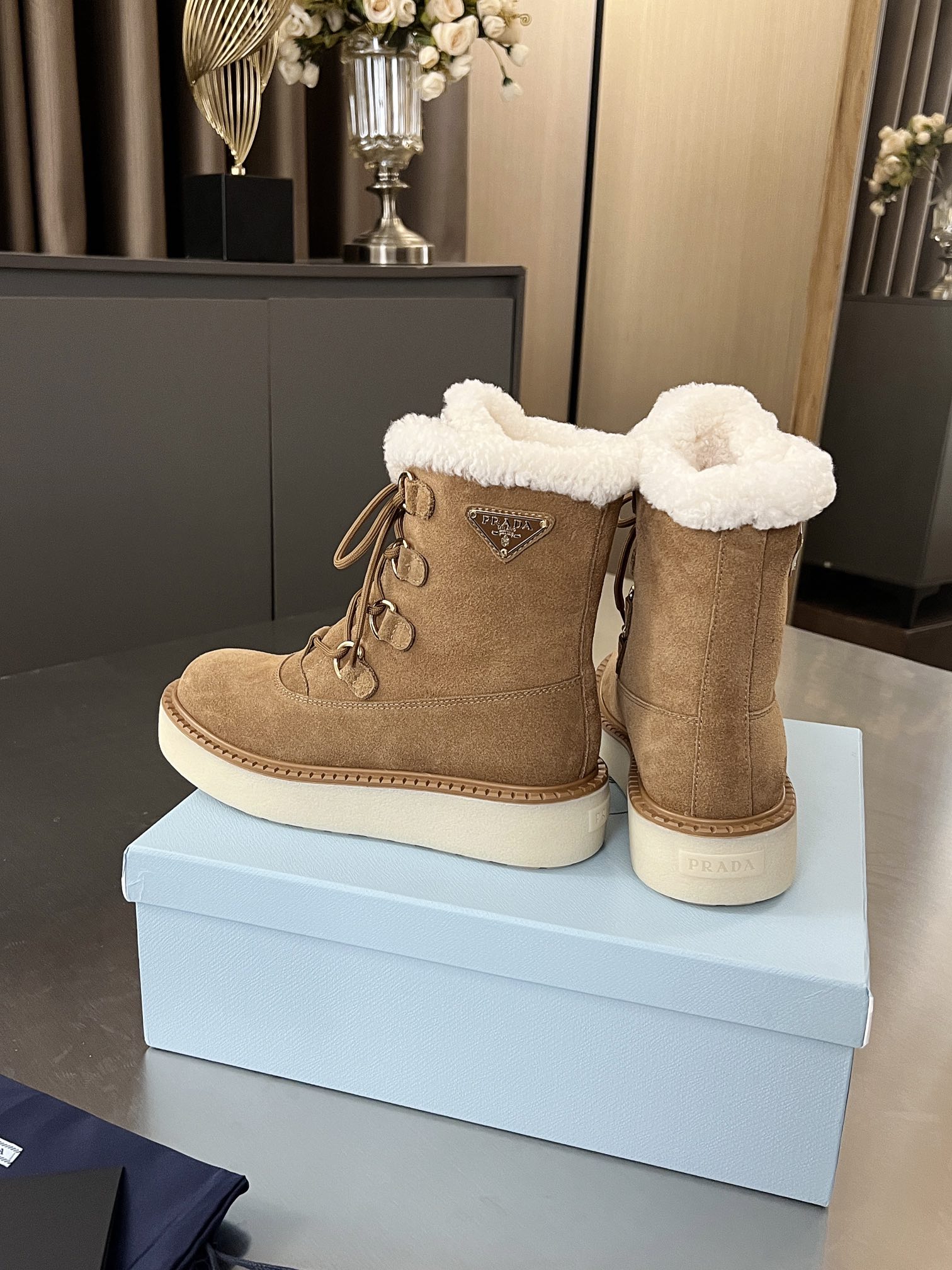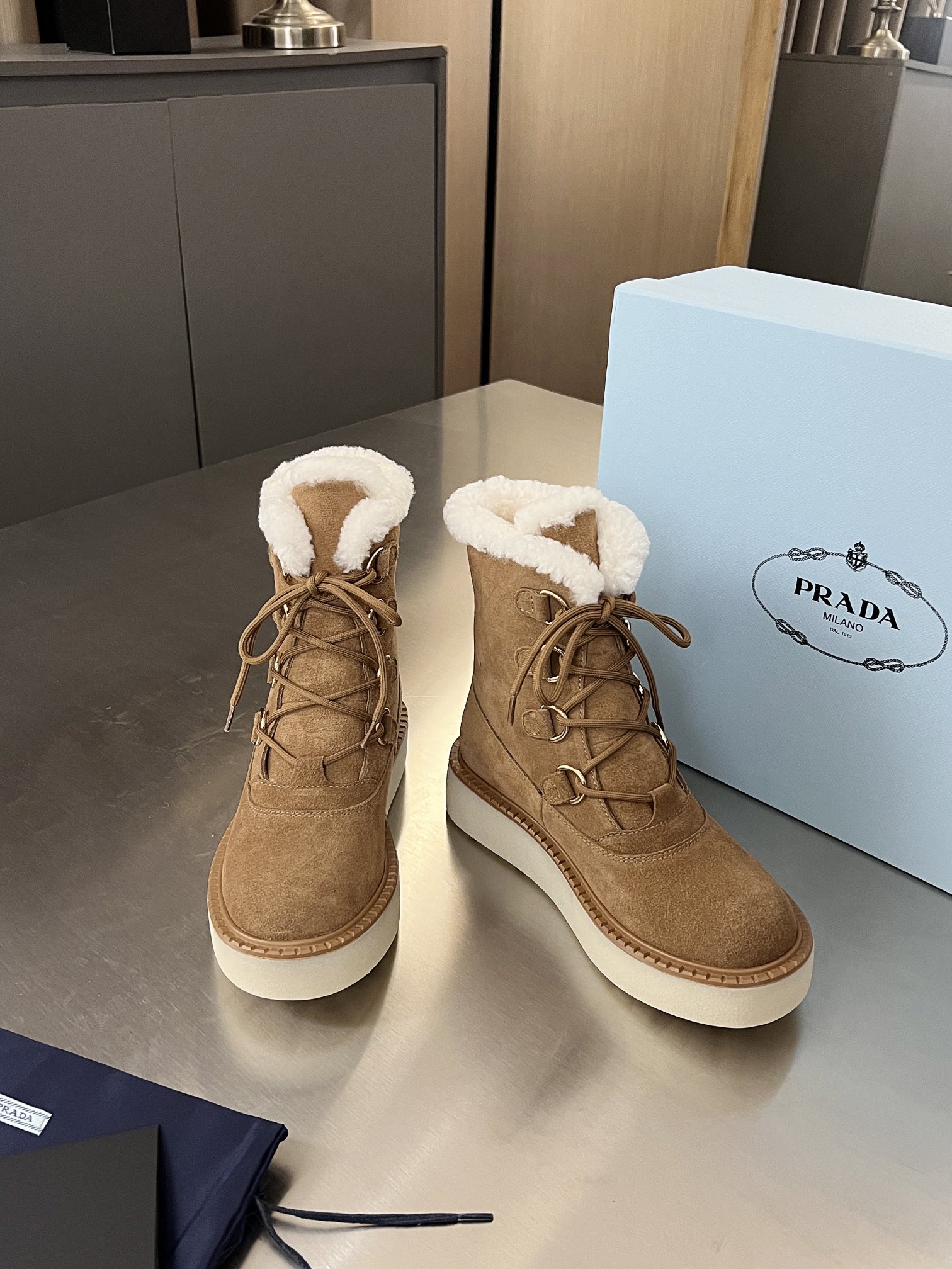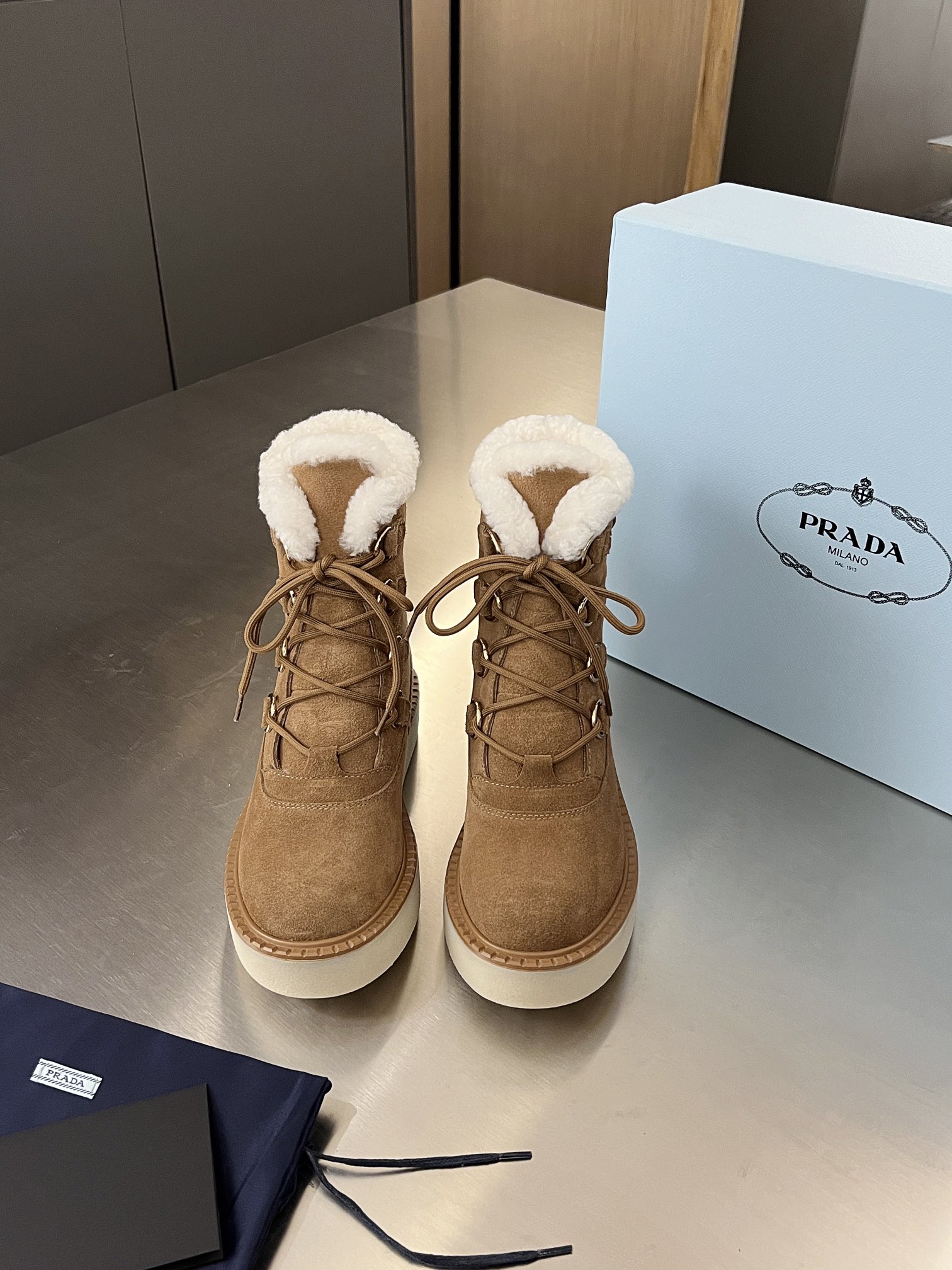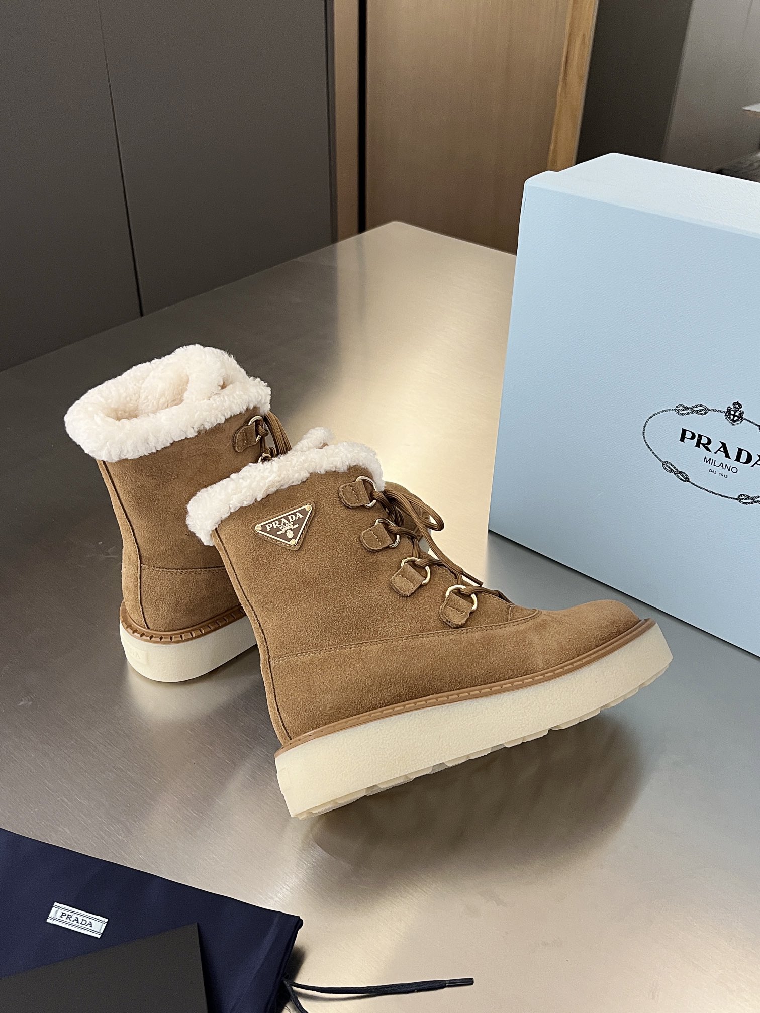 这款鞋子是AAAAA 1:1 质量 (非常棒). 使用了和原版一模一样的材料. 商标部分也保持了和普拉达/Prada一样. 图片拍摄是实物鞋子拍摄, 您所收到的实物保证和我们图片一模一样.