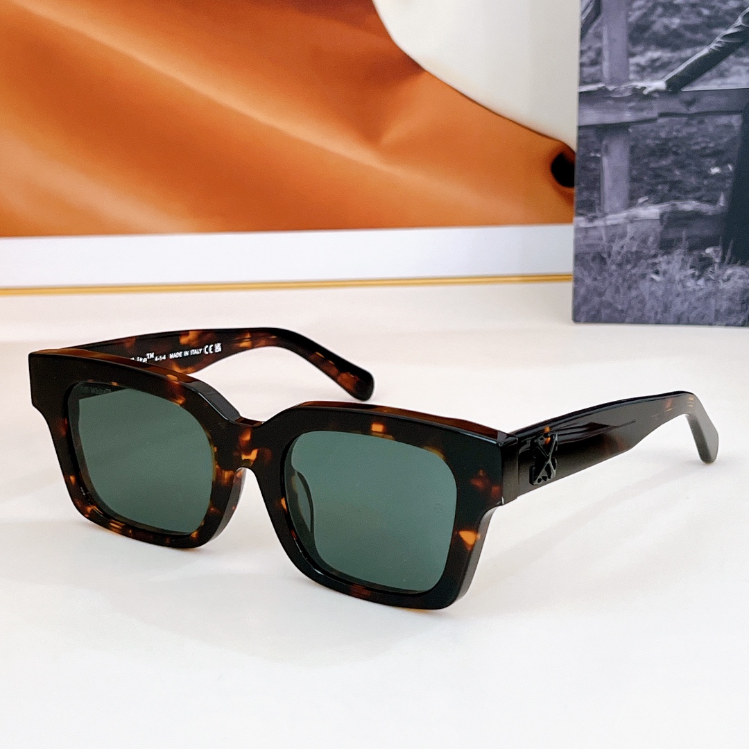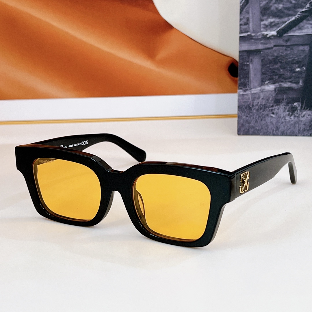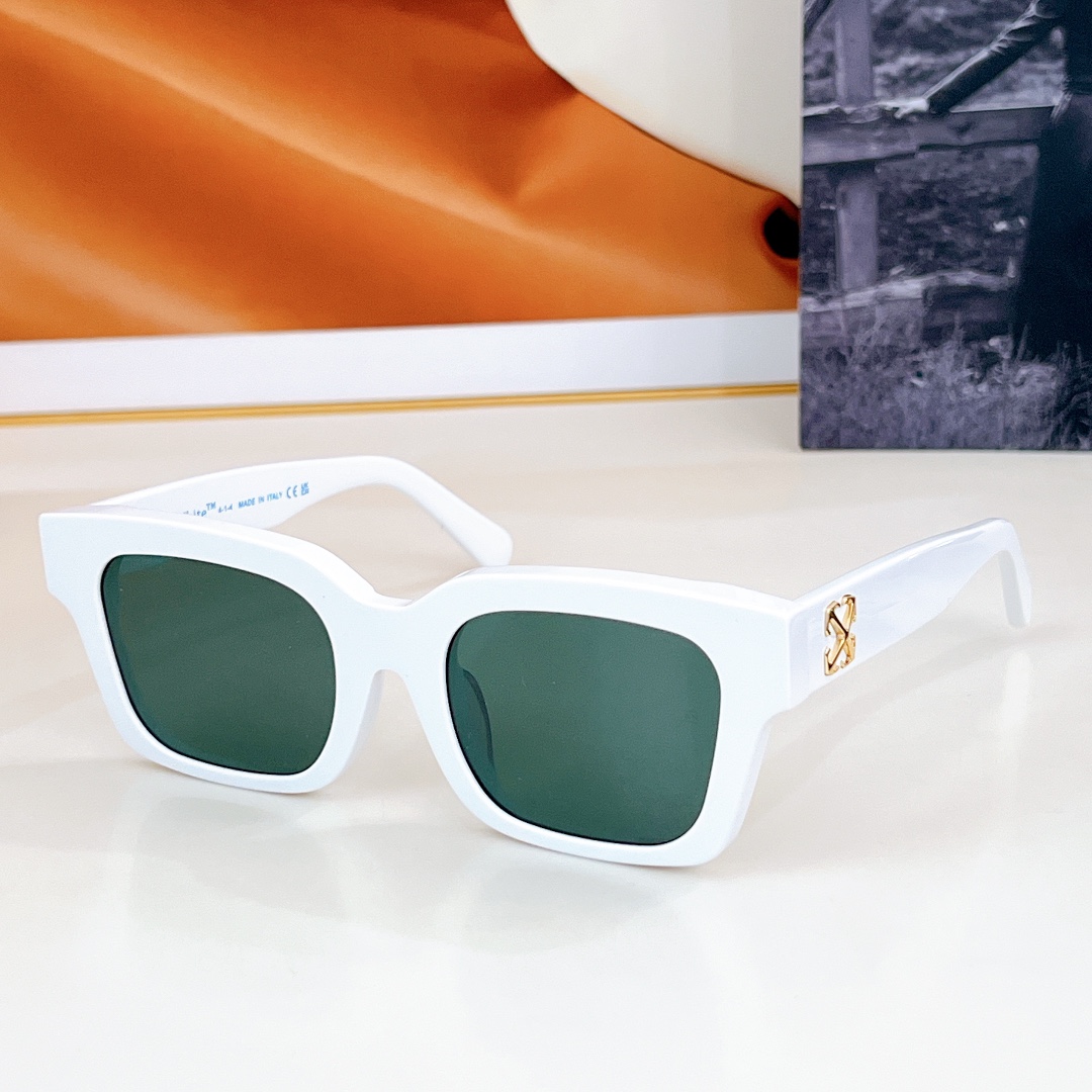 这款太阳眼镜是AAAAA 1:1 质量 (非常棒). 使用了和原版一模一样的材料. 商标部分也保持了和OFF WHITE一样. 图片拍摄是实物太阳眼镜拍摄, 您所收到的实物保证和我们图片一模一样.