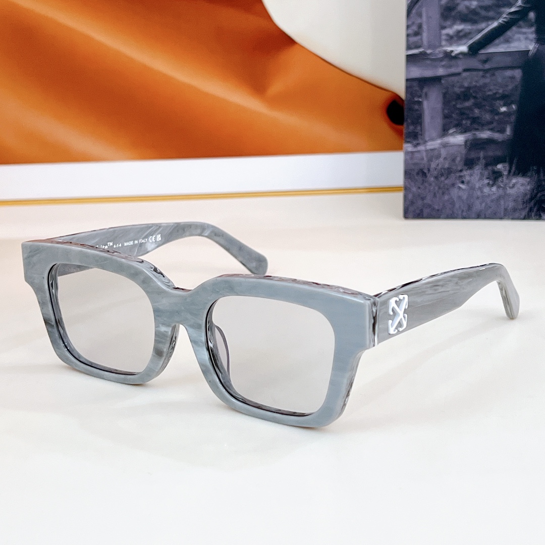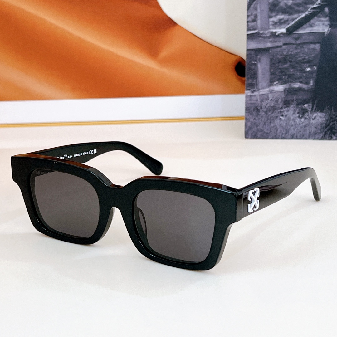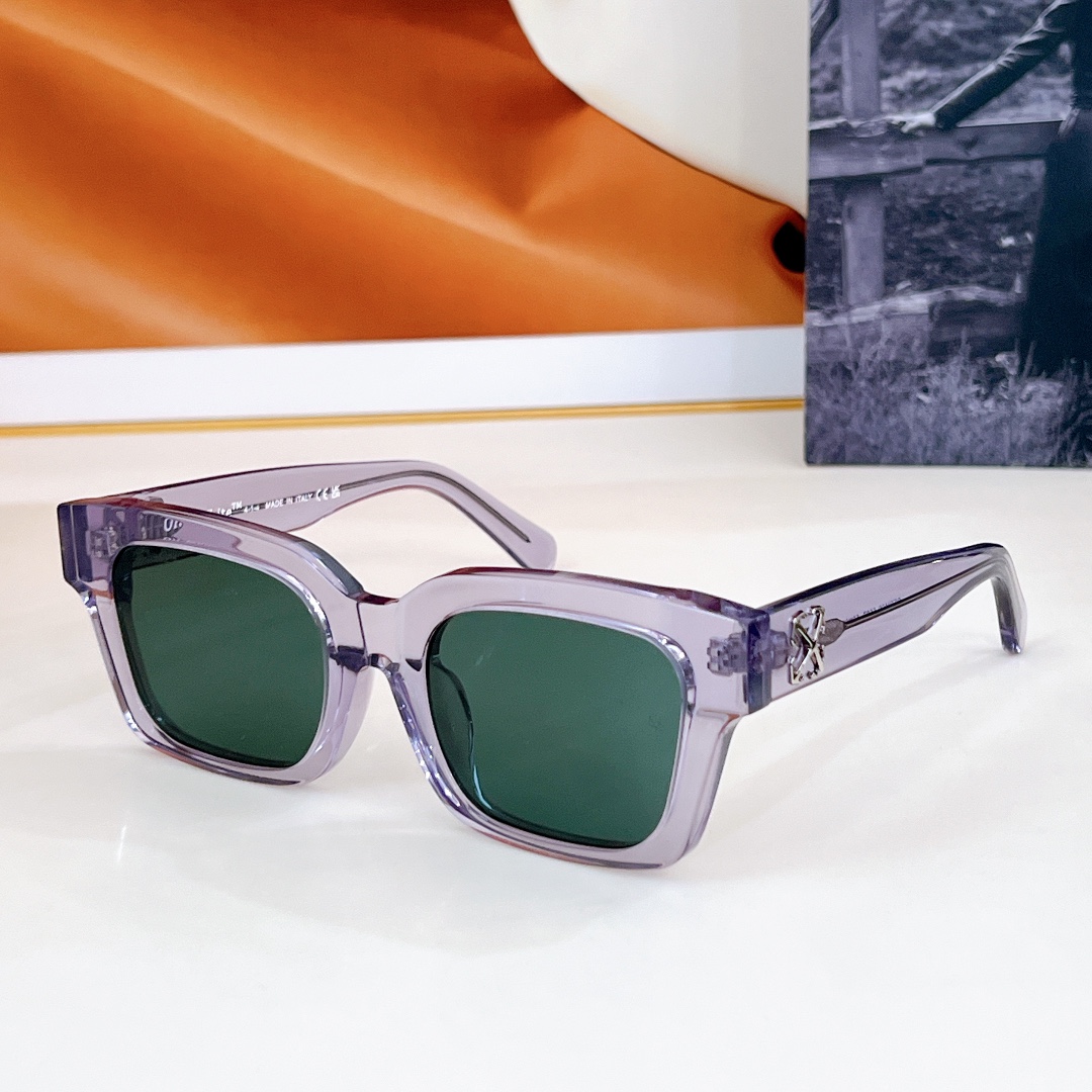 这款太阳眼镜是AAAAA 1:1 质量 (非常棒). 使用了和原版一模一样的材料. 商标部分也保持了和OFF WHITE一样. 图片拍摄是实物太阳眼镜拍摄, 您所收到的实物保证和我们图片一模一样.