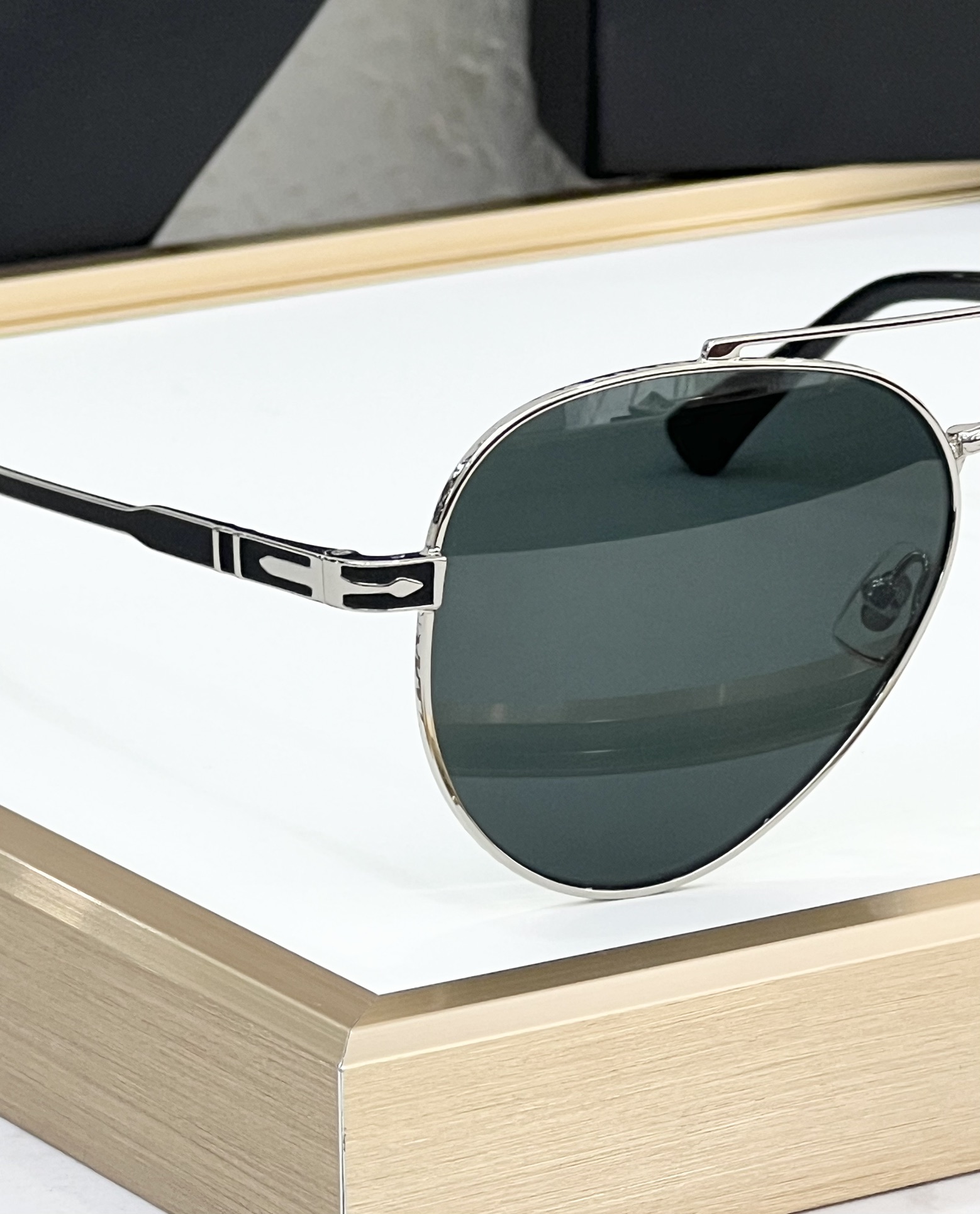 这款太阳眼镜是AAAAA 1:1 质量 (非常棒). 使用了和原版一模一样的材料. 商标部分也保持了和一样. 图片拍摄是实物太阳眼镜拍摄, 您所收到的实物保证和我们图片一模一样.