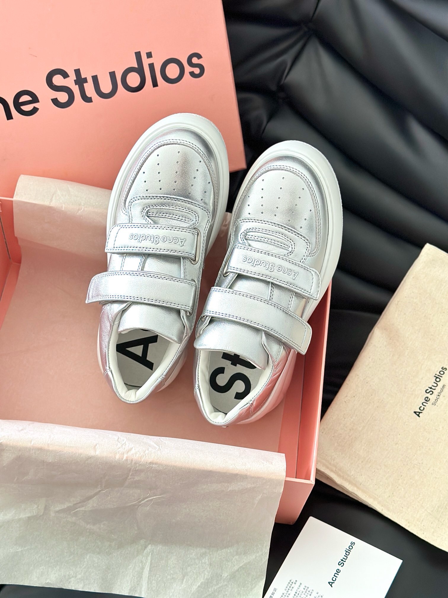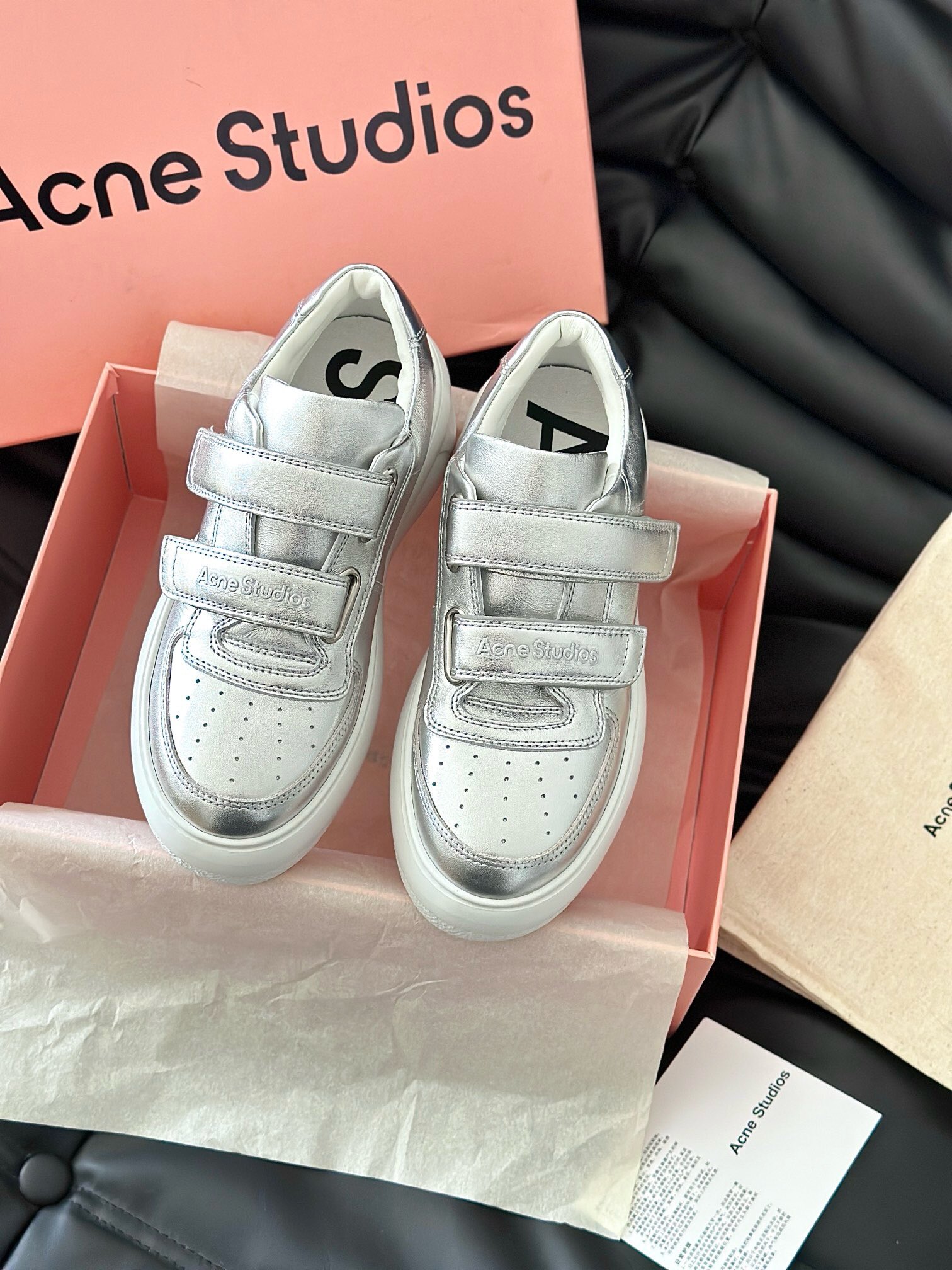 这款鞋子是AAAAA 1:1 质量 (非常棒). 使用了和原版一模一样的材料. 商标部分也保持了和Acne一样. 图片拍摄是实物鞋子拍摄, 您所收到的实物保证和我们图片一模一样.