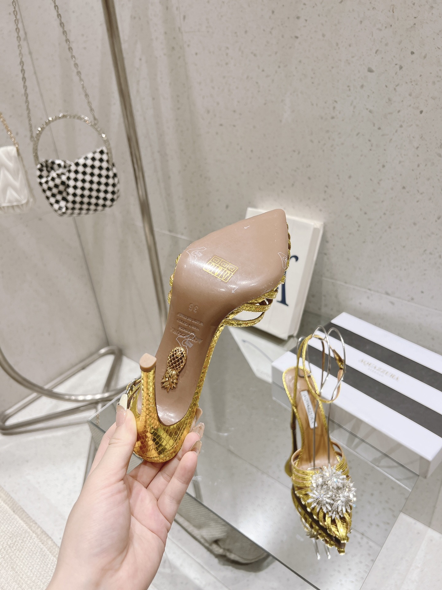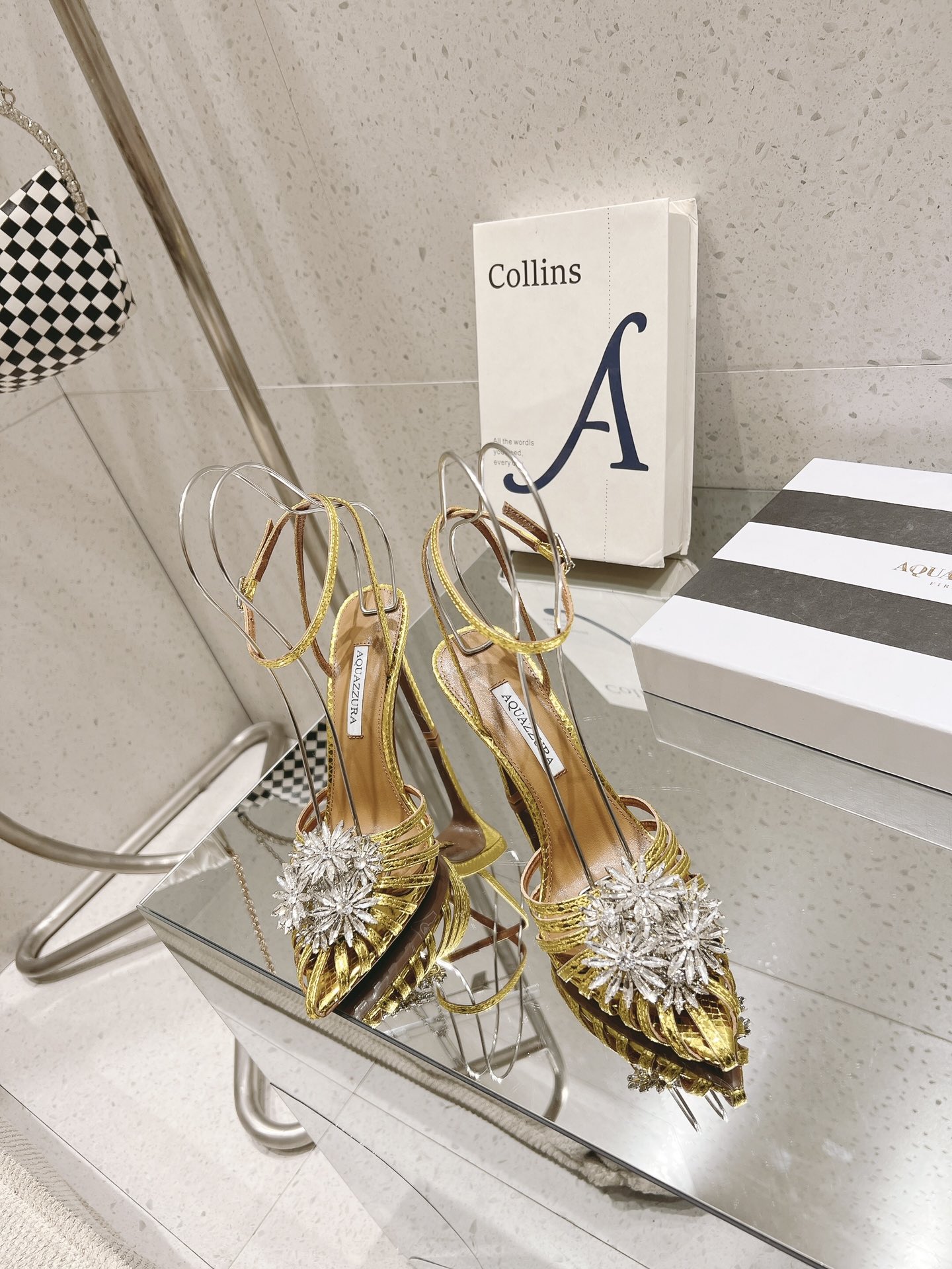 这款鞋子是AAAAA 1:1 质量 (非常棒). 使用了和原版一模一样的材料. 商标部分也保持了和Aquazzura一样. 图片拍摄是实物鞋子拍摄, 您所收到的实物保证和我们图片一模一样.
