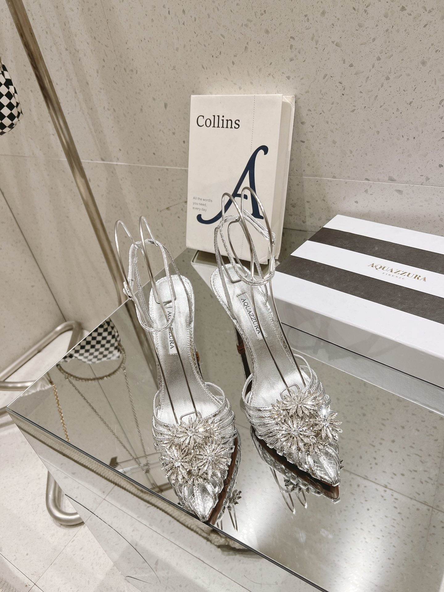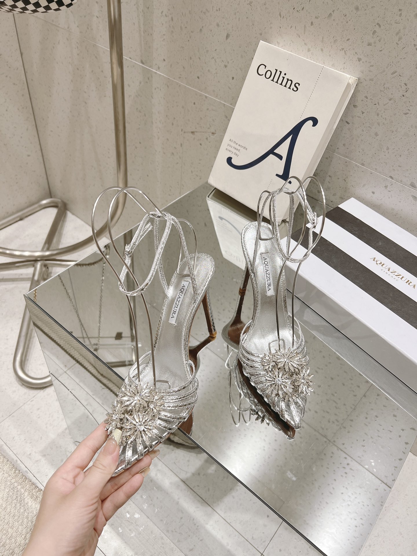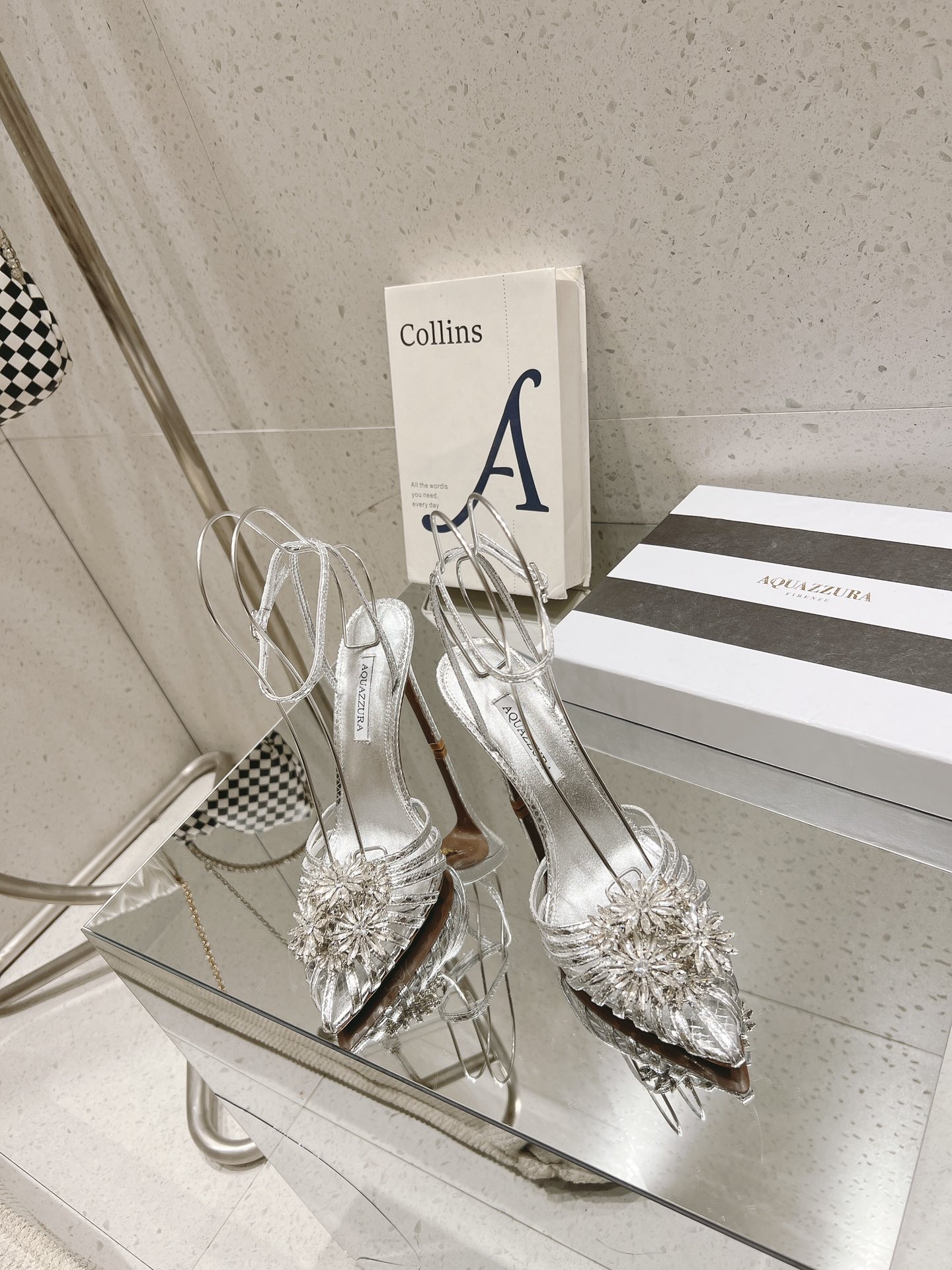 这款鞋子是AAAAA 1:1 质量 (非常棒). 使用了和原版一模一样的材料. 商标部分也保持了和Aquazzura一样. 图片拍摄是实物鞋子拍摄, 您所收到的实物保证和我们图片一模一样.