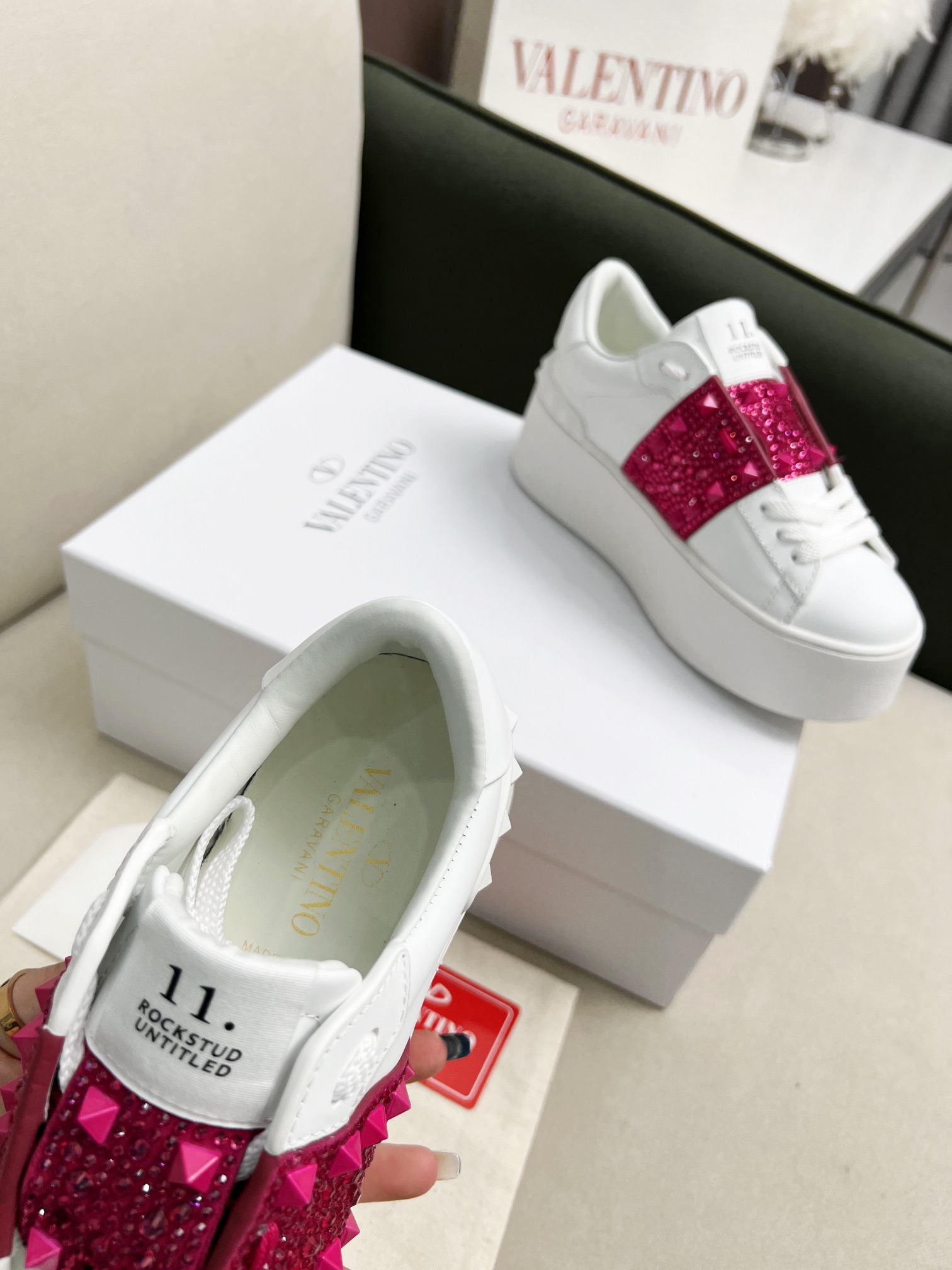 这款鞋子是AAAAA 1:1 质量 (非常棒). 使用了和原版一模一样的材料. 商标部分也保持了和华伦天奴/Valentino一样. 图片拍摄是实物鞋子拍摄, 您所收到的实物保证和我们图片一模一样.