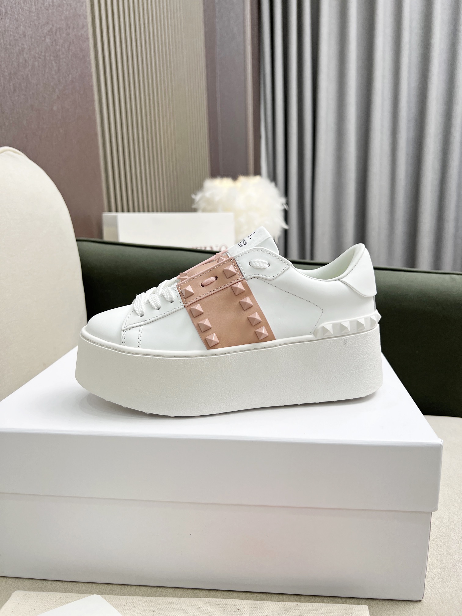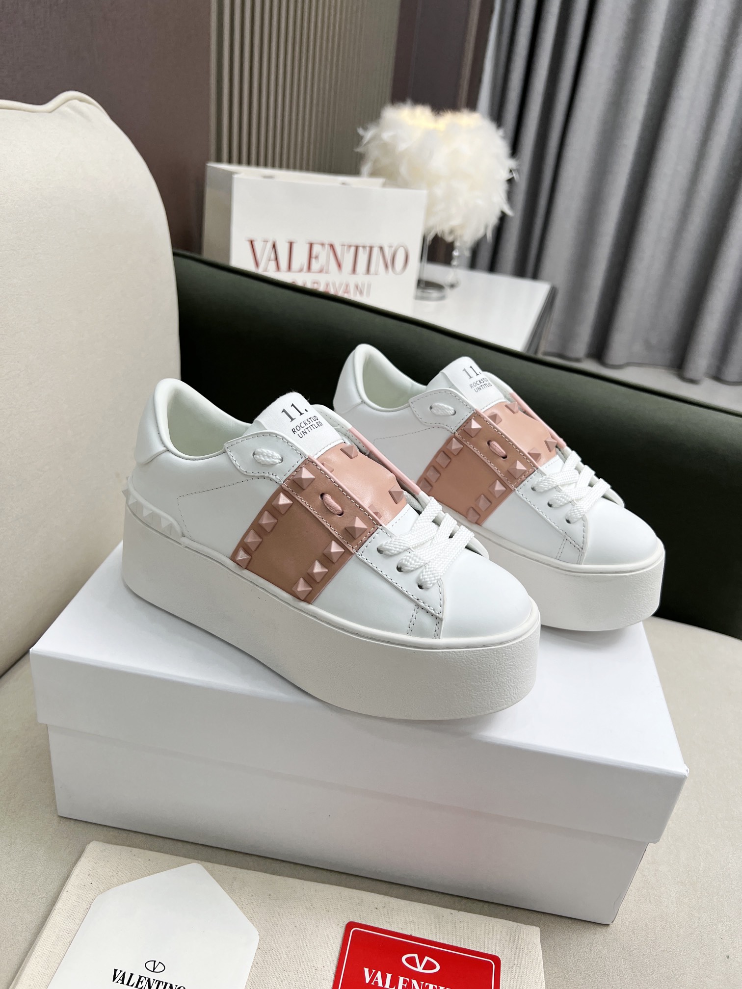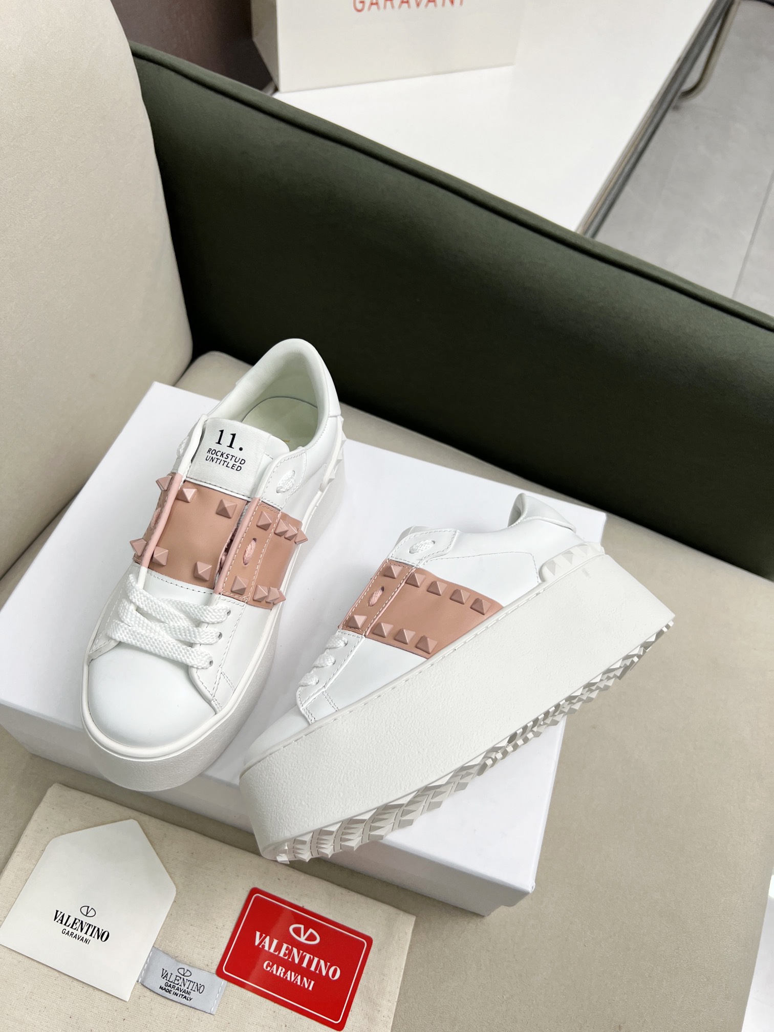 这款鞋子是AAAAA 1:1 质量 (非常棒). 使用了和原版一模一样的材料. 商标部分也保持了和华伦天奴/Valentino一样. 图片拍摄是实物鞋子拍摄, 您所收到的实物保证和我们图片一模一样.