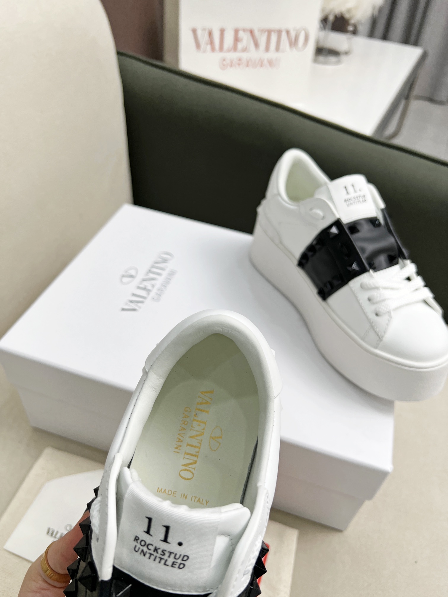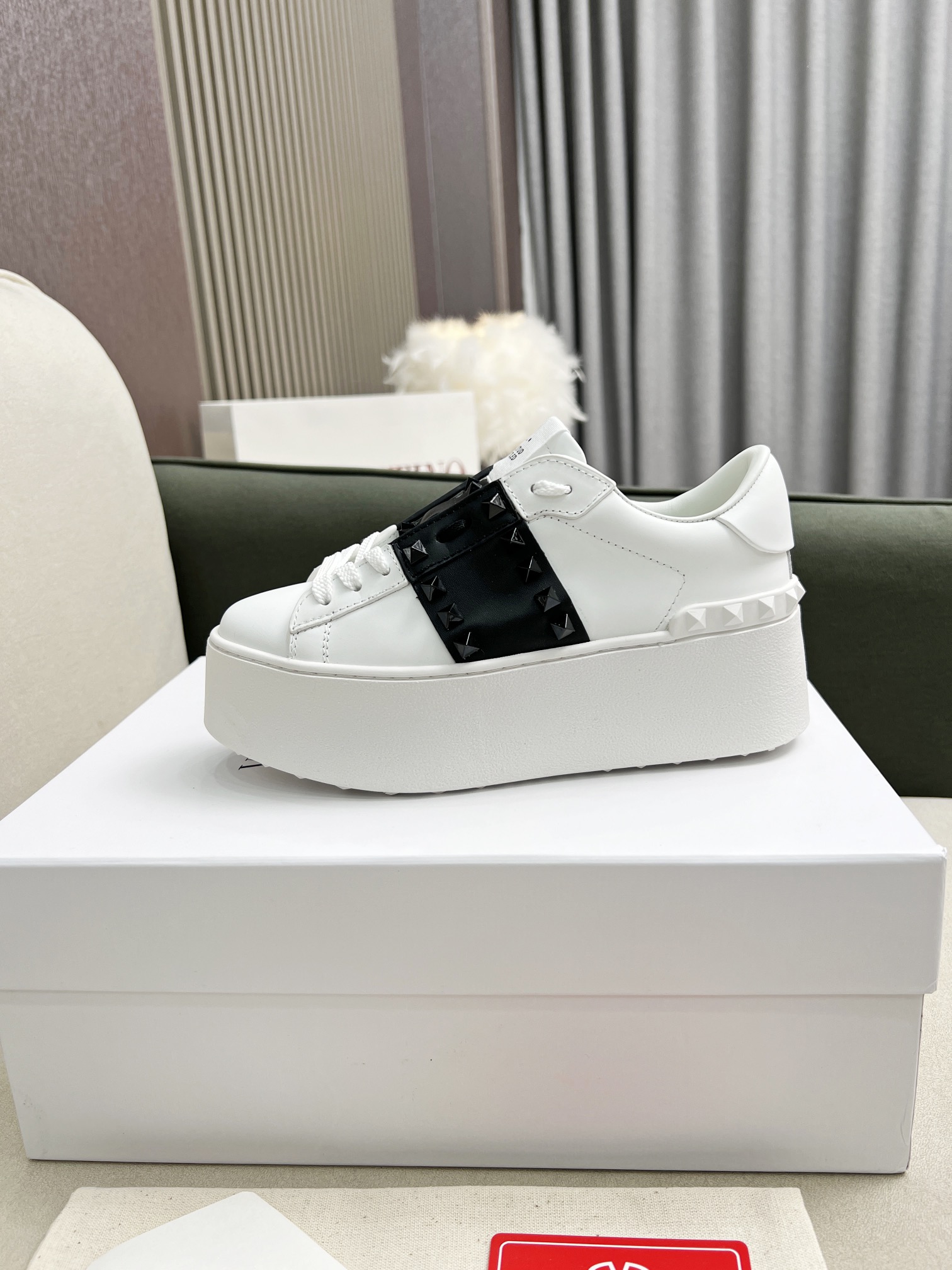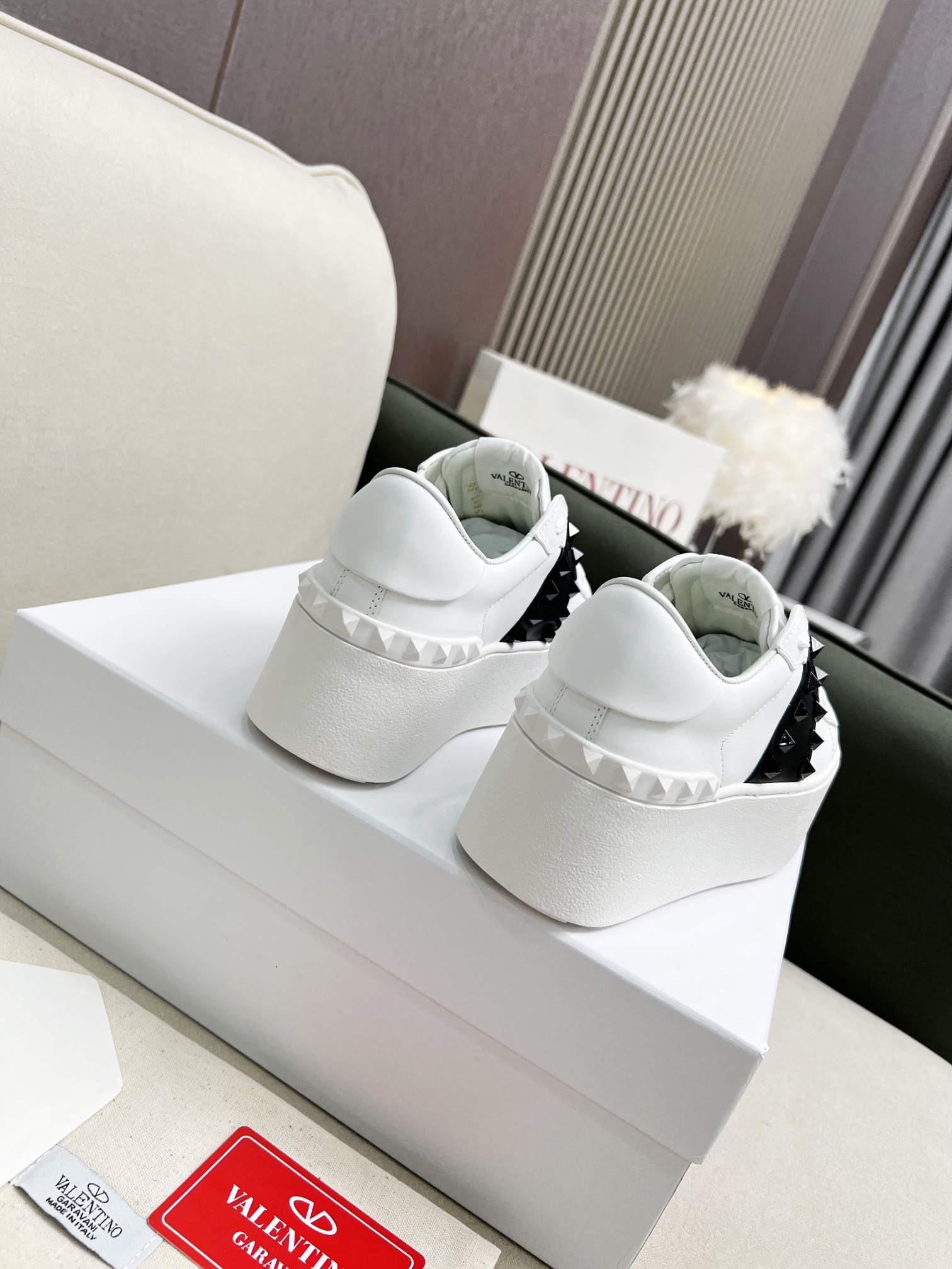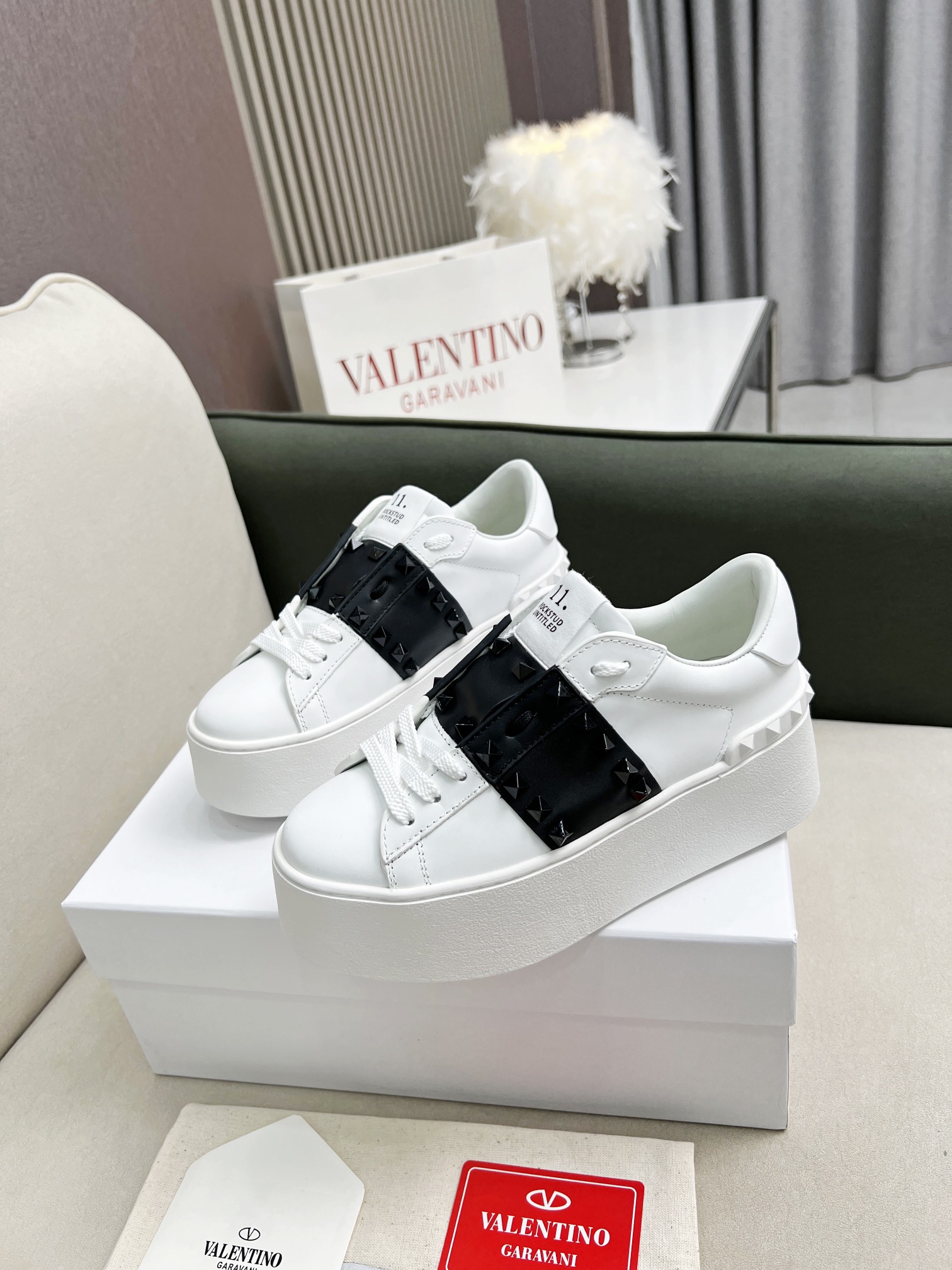 这款鞋子是AAAAA 1:1 质量 (非常棒). 使用了和原版一模一样的材料. 商标部分也保持了和华伦天奴/Valentino一样. 图片拍摄是实物鞋子拍摄, 您所收到的实物保证和我们图片一模一样.