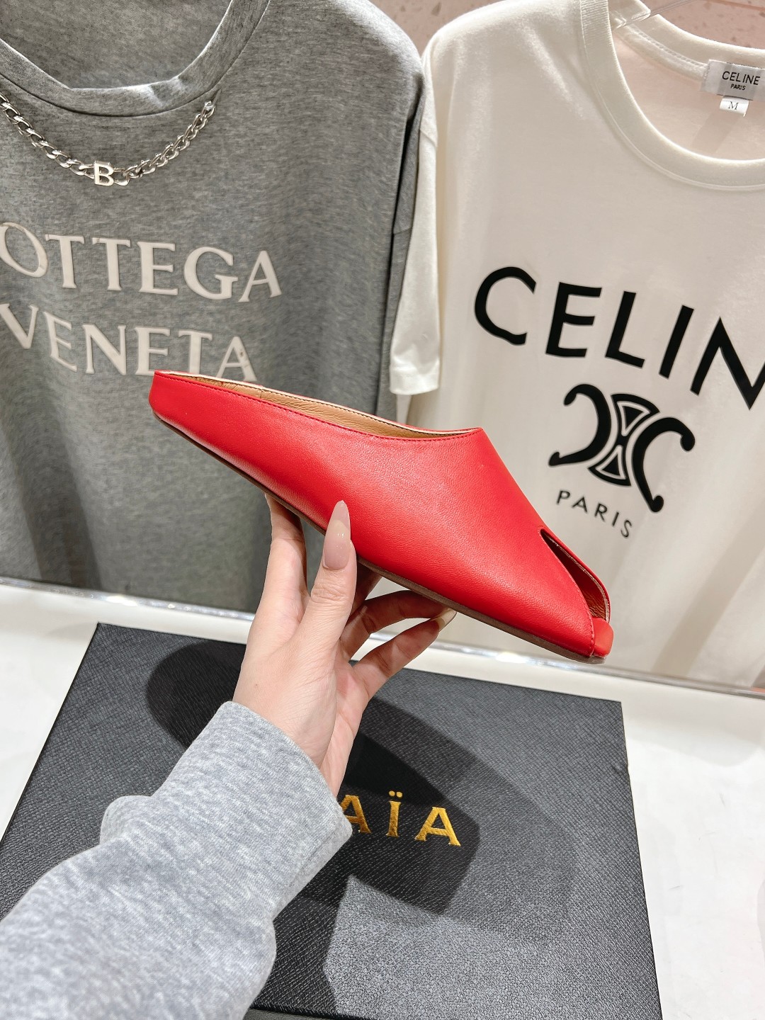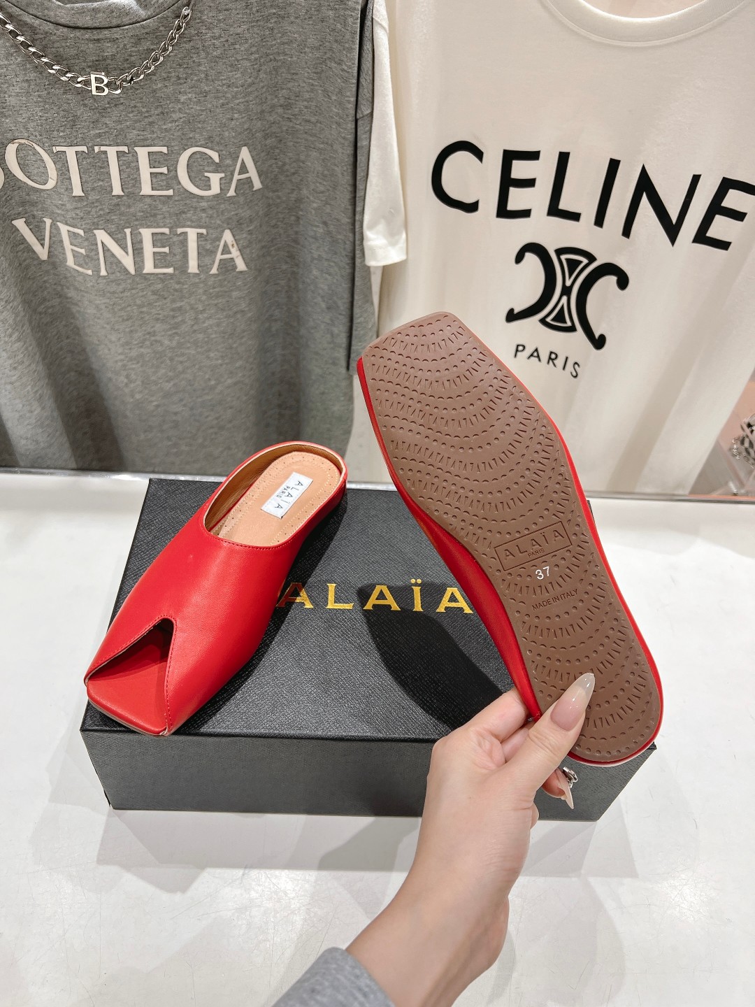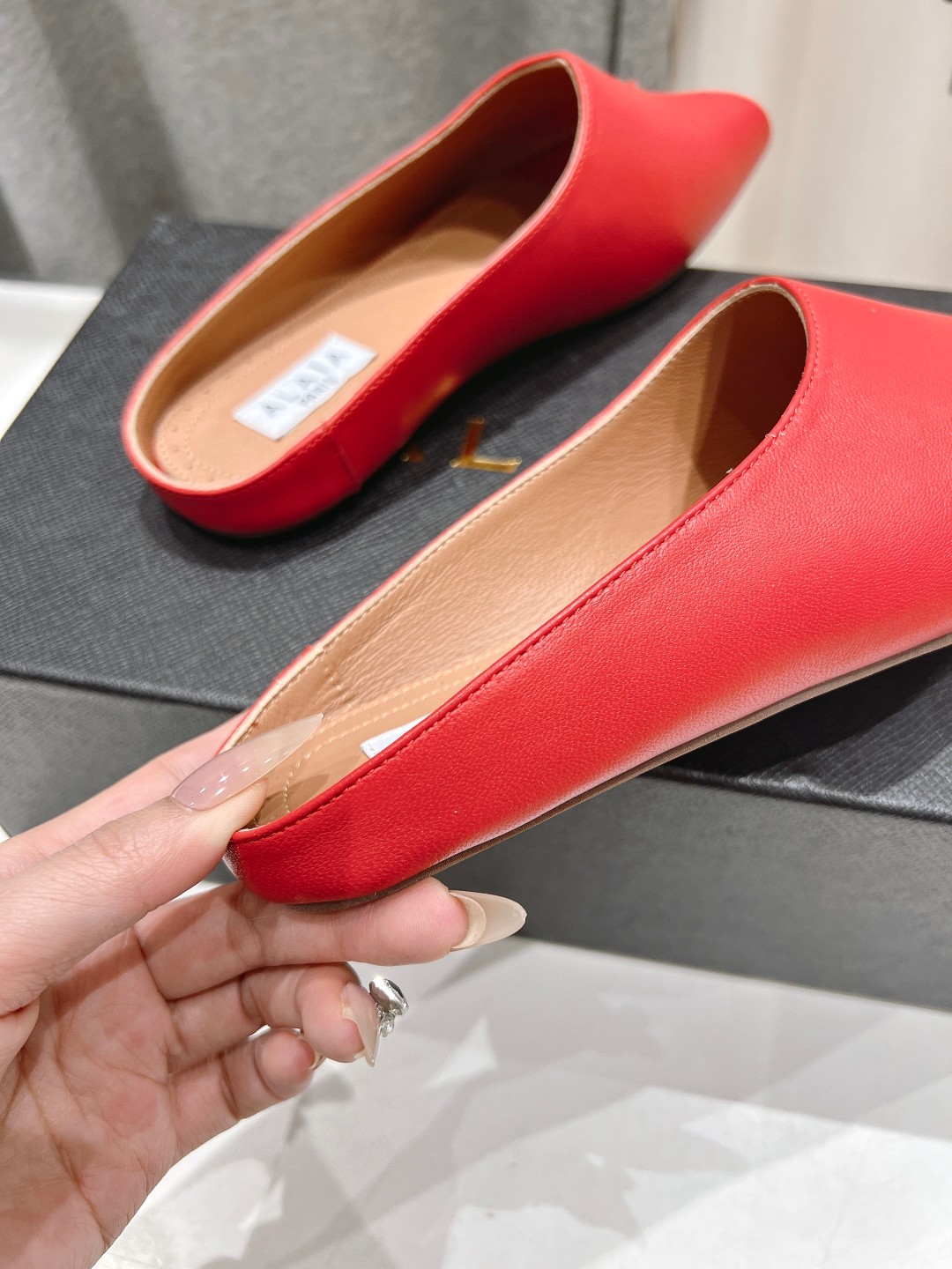 这款鞋子是AAAAA 1:1 质量 (非常棒). 使用了和原版一模一样的材料. 商标部分也保持了和Alaia一样. 图片拍摄是实物鞋子拍摄, 您所收到的实物保证和我们图片一模一样.