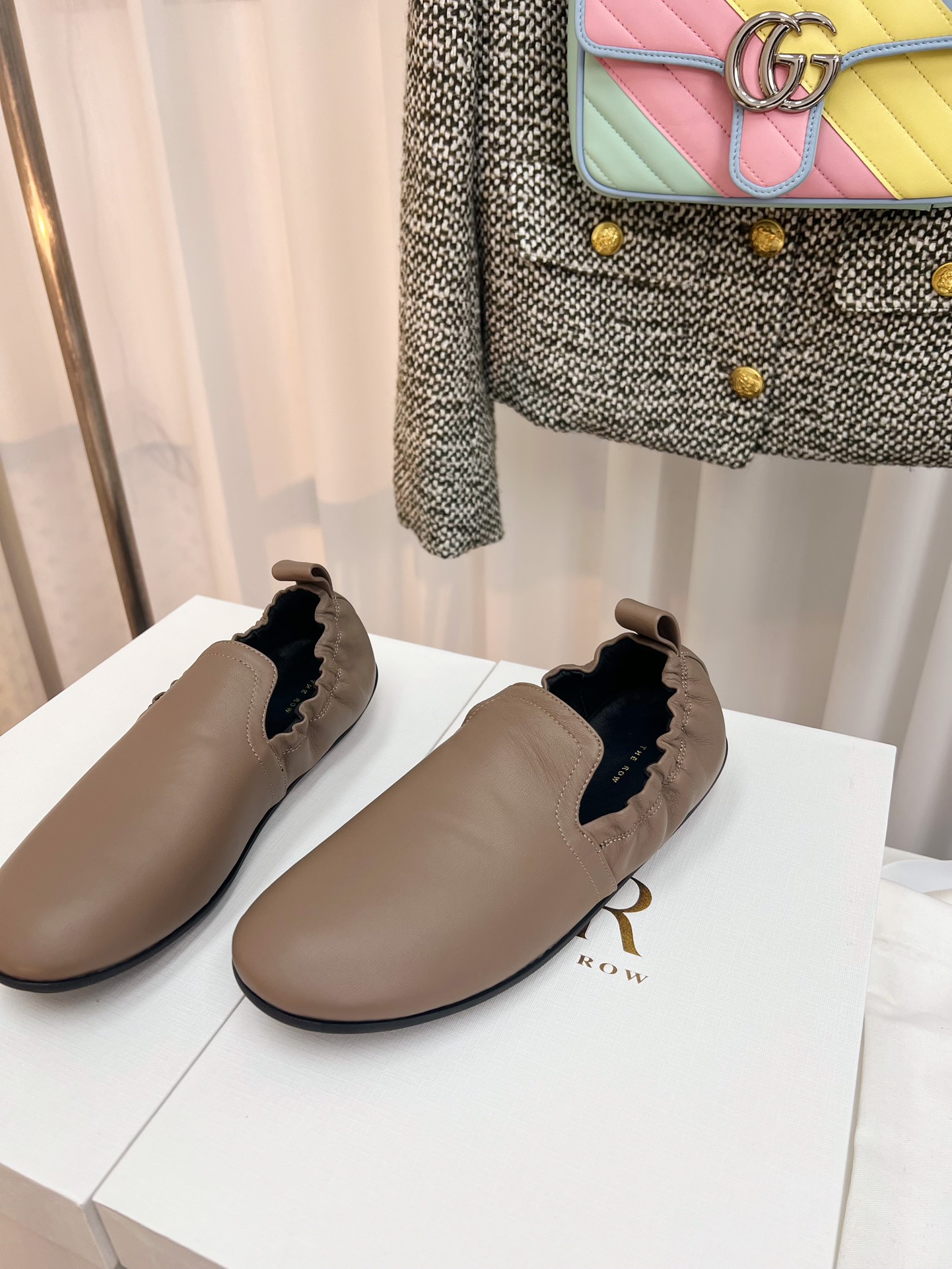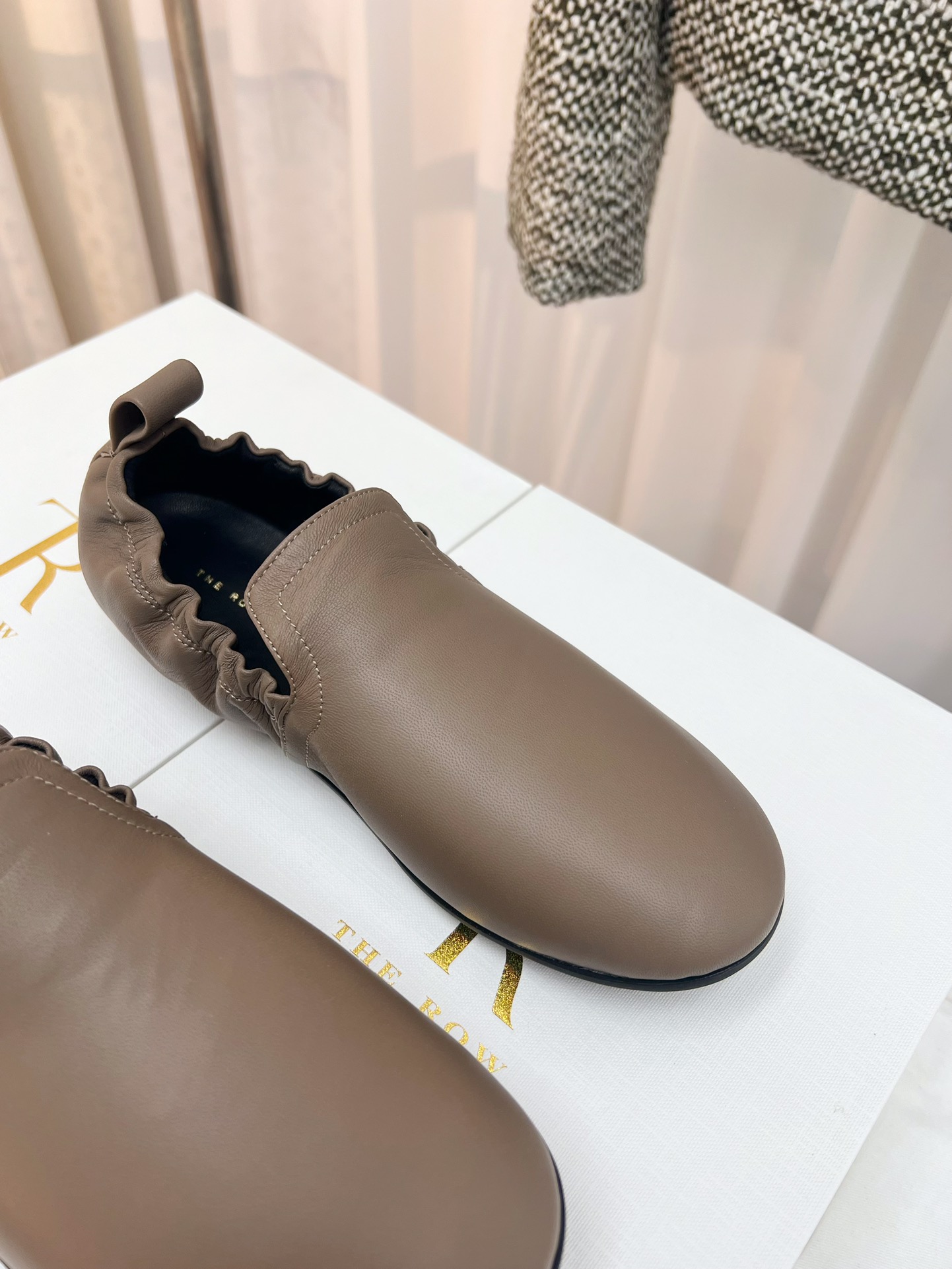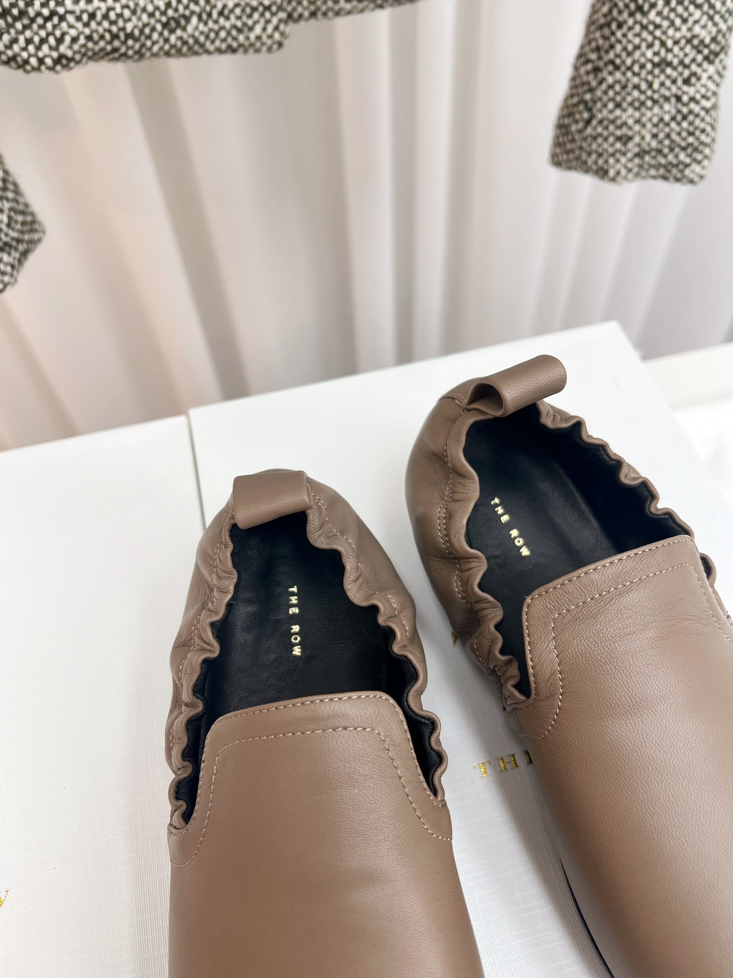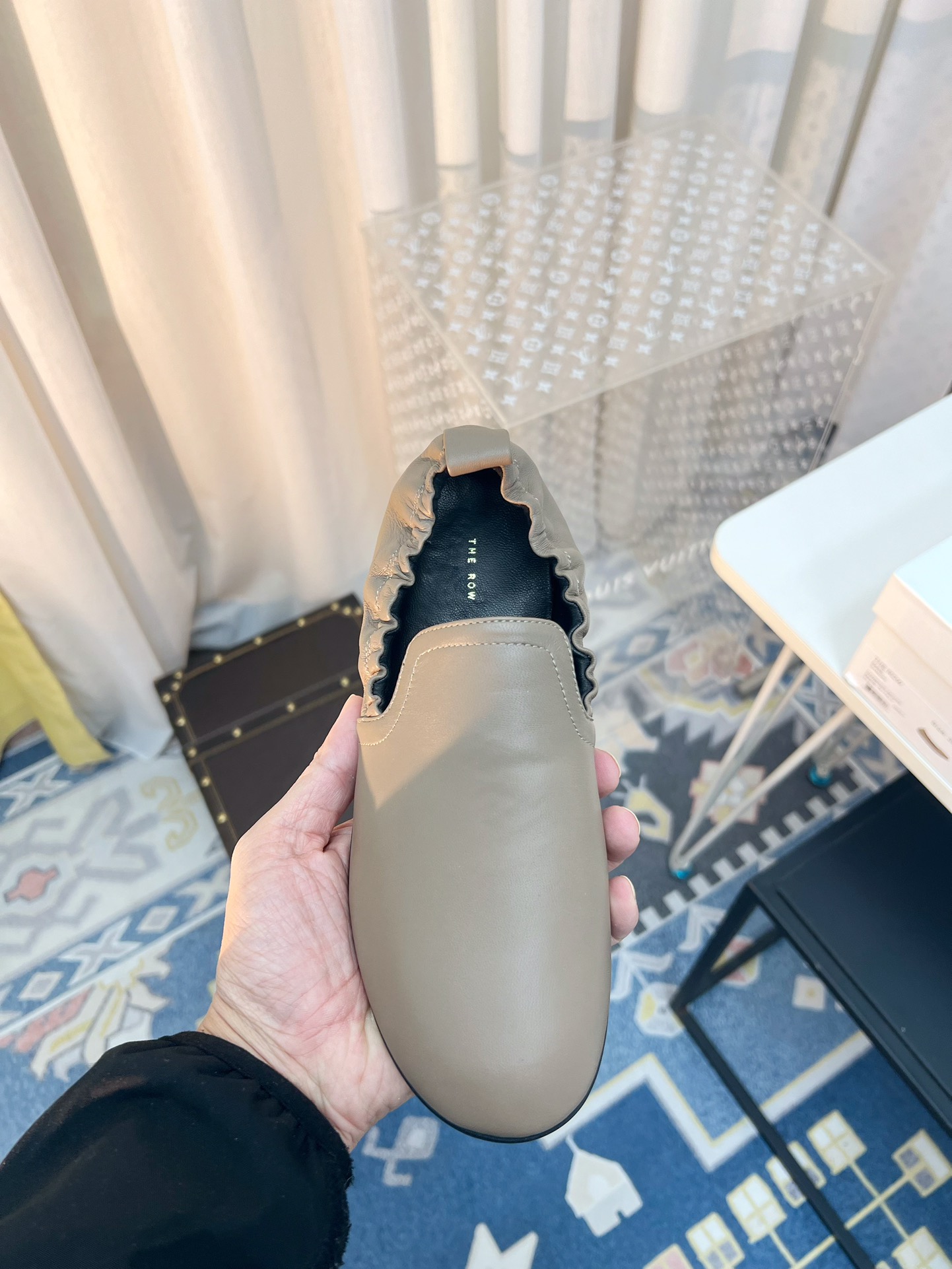 这款鞋子是AAAAA 1:1 质量 (非常棒). 使用了和原版一模一样的材料. 商标部分也保持了和The Row一样. 图片拍摄是实物鞋子拍摄, 您所收到的实物保证和我们图片一模一样.