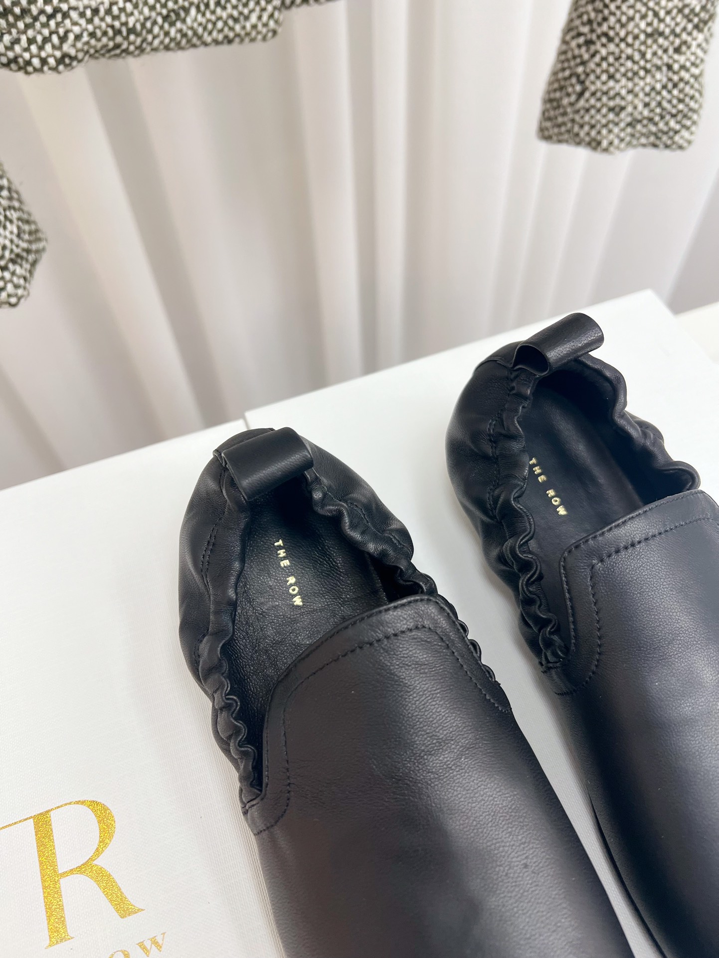 这款鞋子是AAAAA 1:1 质量 (非常棒). 使用了和原版一模一样的材料. 商标部分也保持了和The Row一样. 图片拍摄是实物鞋子拍摄, 您所收到的实物保证和我们图片一模一样.
