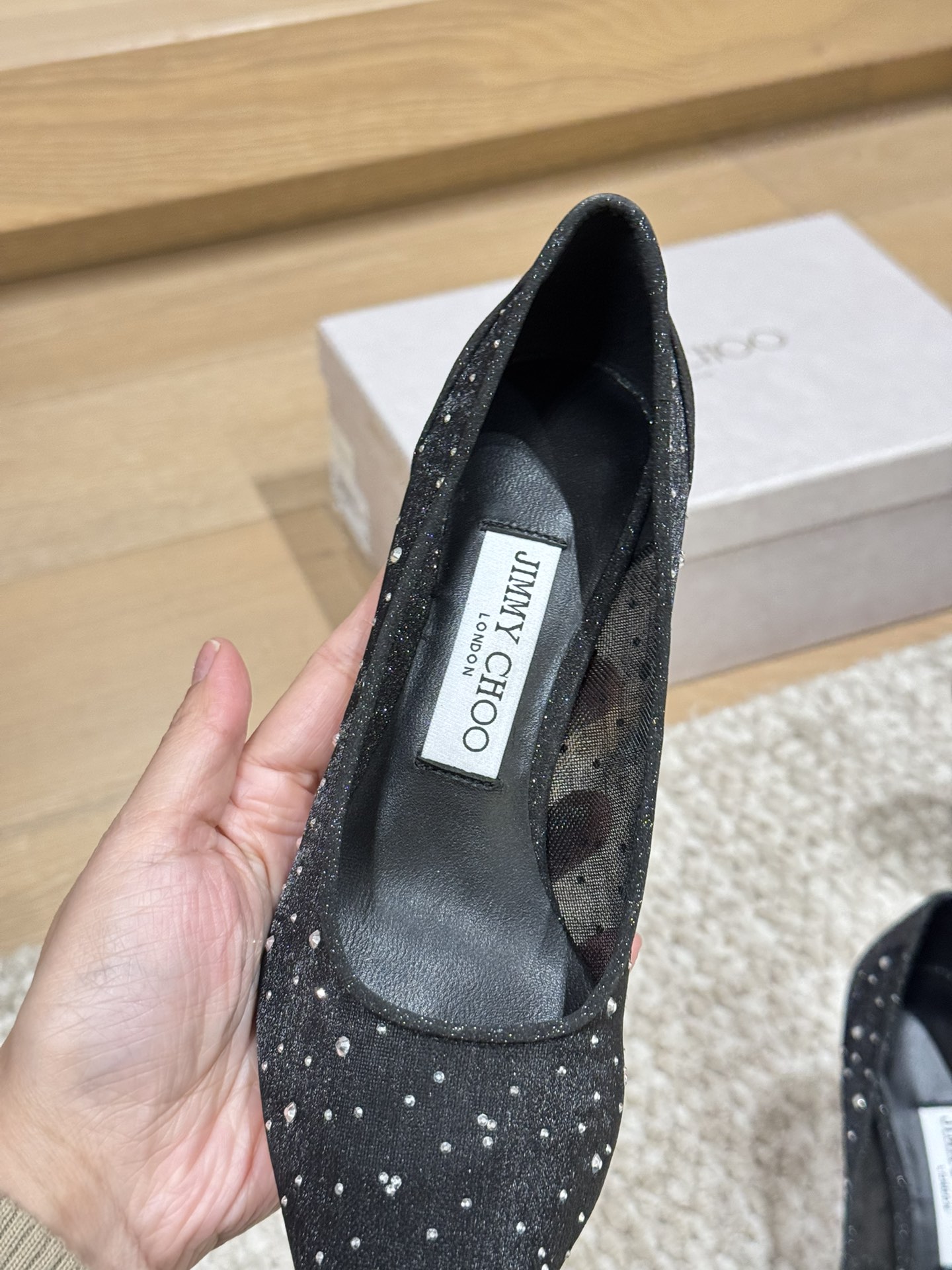 这款鞋子是AAAAA 1:1 质量 (非常棒). 使用了和原版一模一样的材料. 商标部分也保持了和吉米乔/JIMMY CHOO一样. 图片拍摄是实物鞋子拍摄, 您所收到的实物保证和我们图片一模一样.