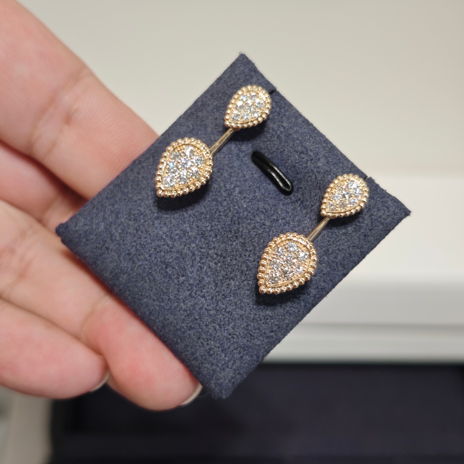 这款首饰是AAAAA 1:1 质量 (非常棒). 使用了和原版一模一样的材料. 商标部分也保持了和Boucheron一样. 图片拍摄是实物首饰拍摄, 您所收到的实物保证和我们图片一模一样.