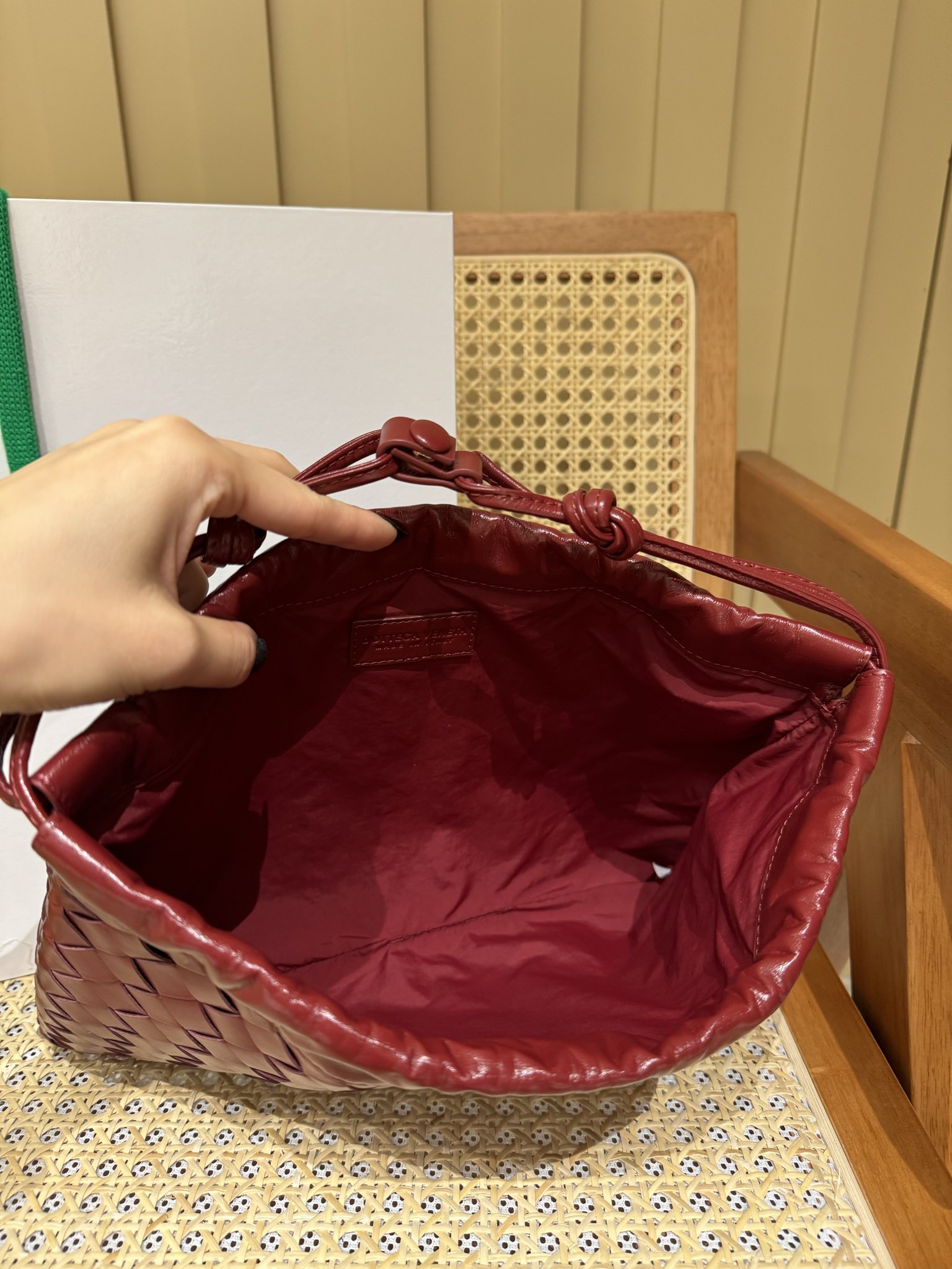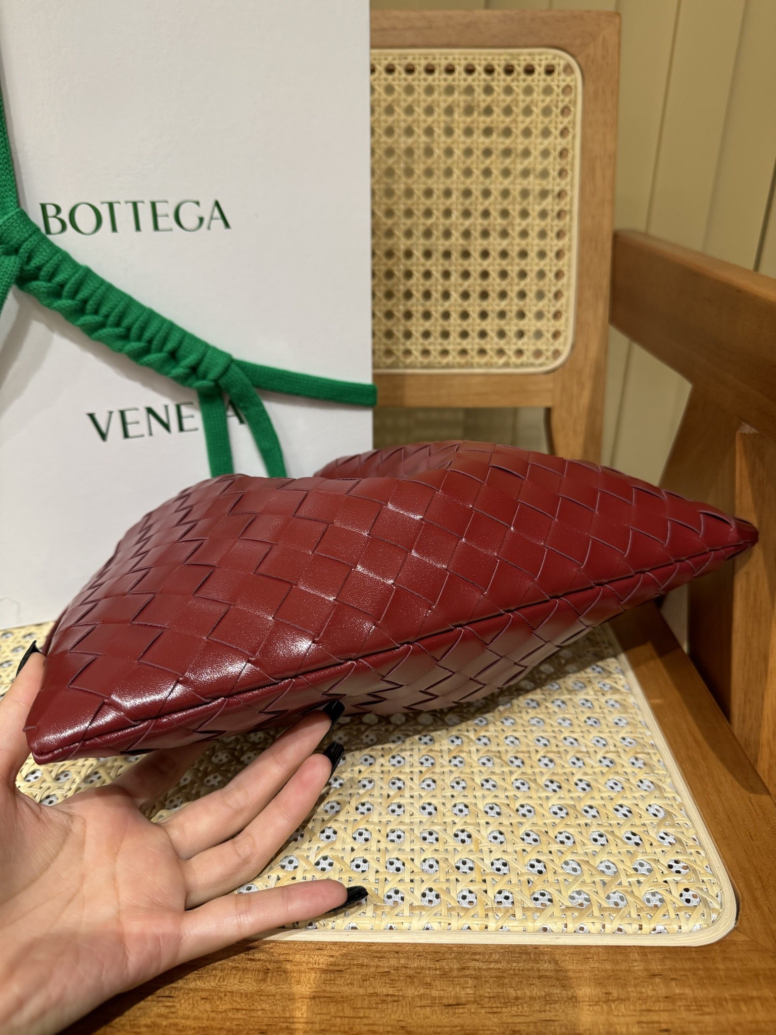 这款包包是AAAAA 1:1 质量 (非常棒). 使用了和原版一模一样的材料. 商标部分也保持了和葆蝶家/Bottega Veneta一样. 图片拍摄是实物包包拍摄, 您所收到的实物保证和我们图片一模一样.