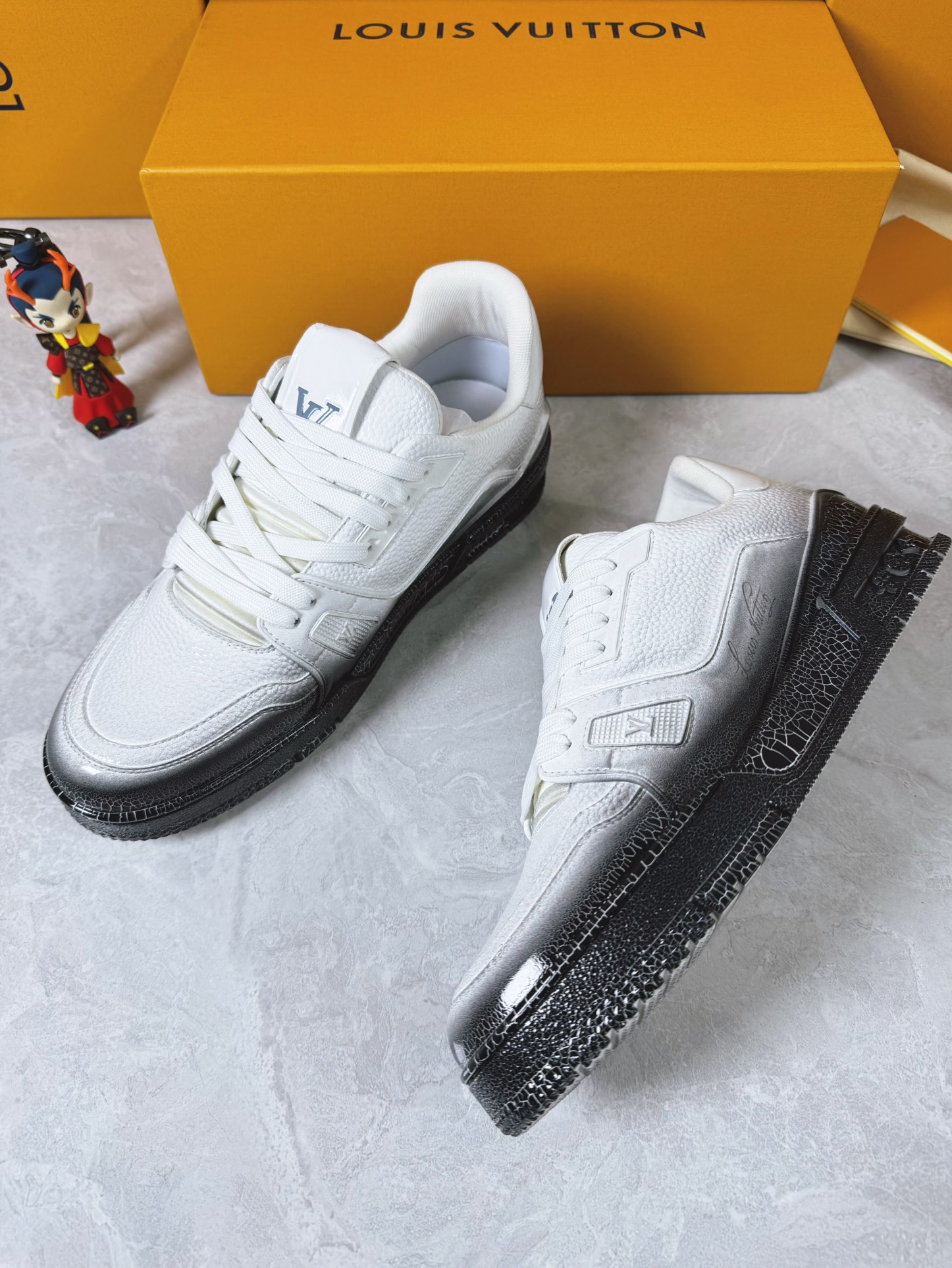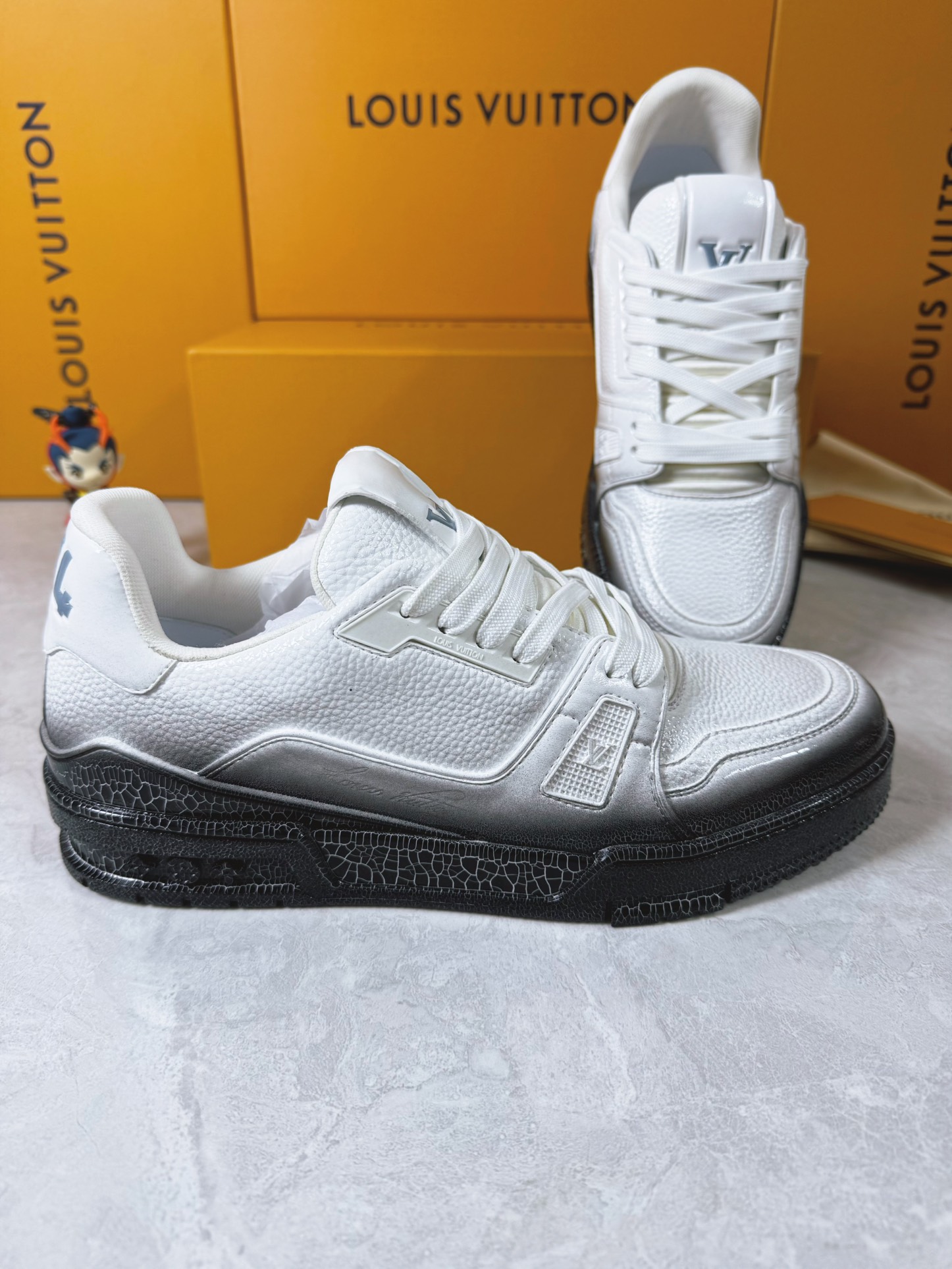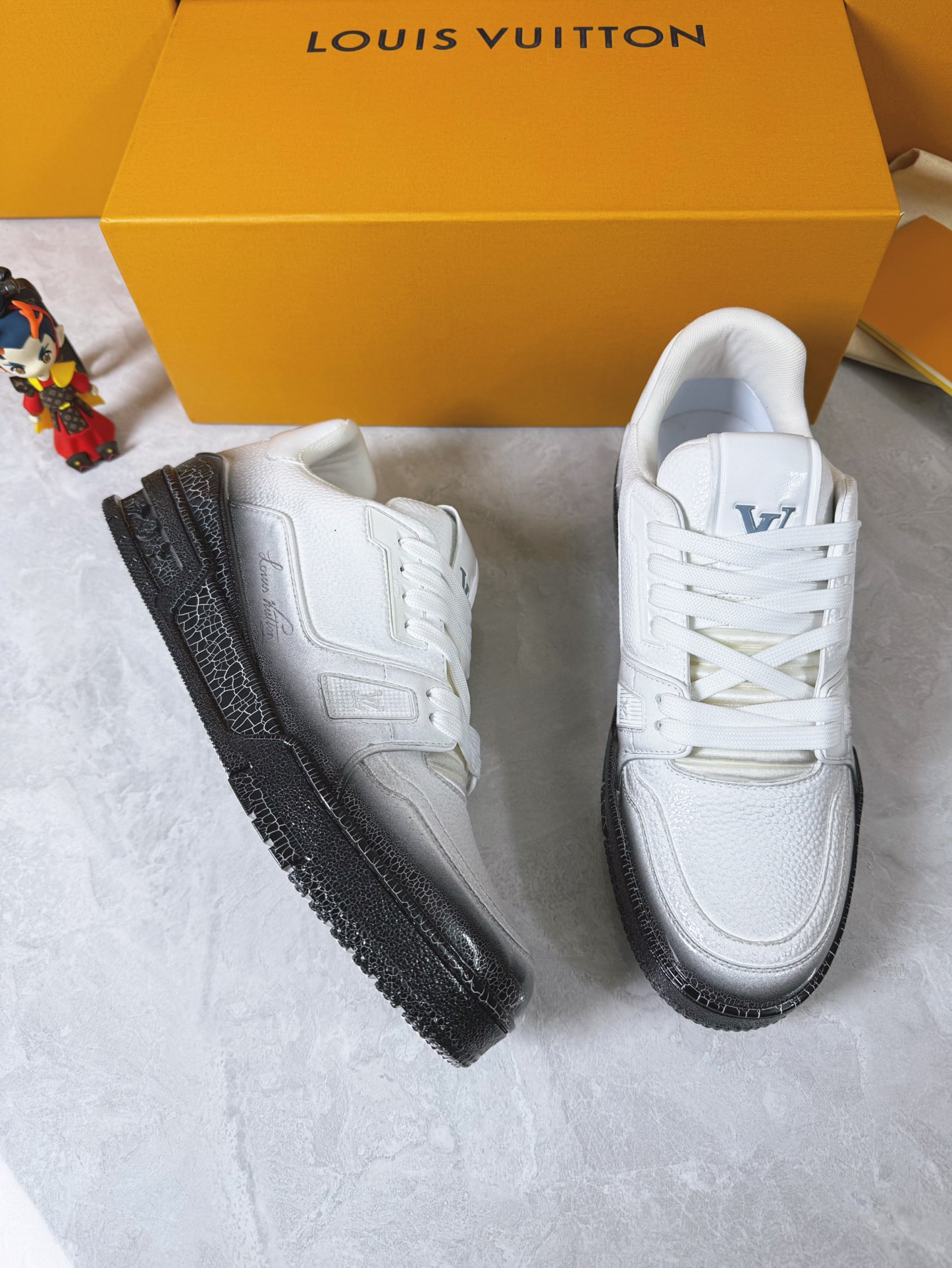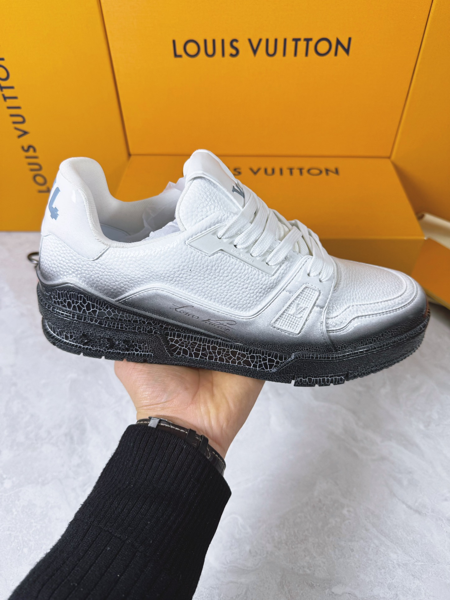 这款鞋子是AAAAA 1:1 质量 (非常棒). 使用了和原版一模一样的材料. 商标部分也保持了和路易威登/Louis Vuitton一样. 图片拍摄是实物鞋子拍摄, 您所收到的实物保证和我们图片一模一样.