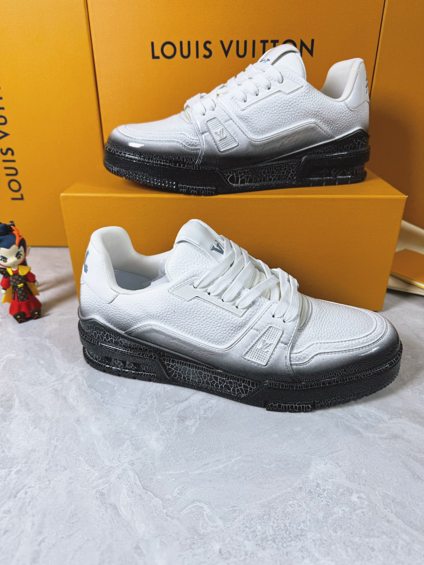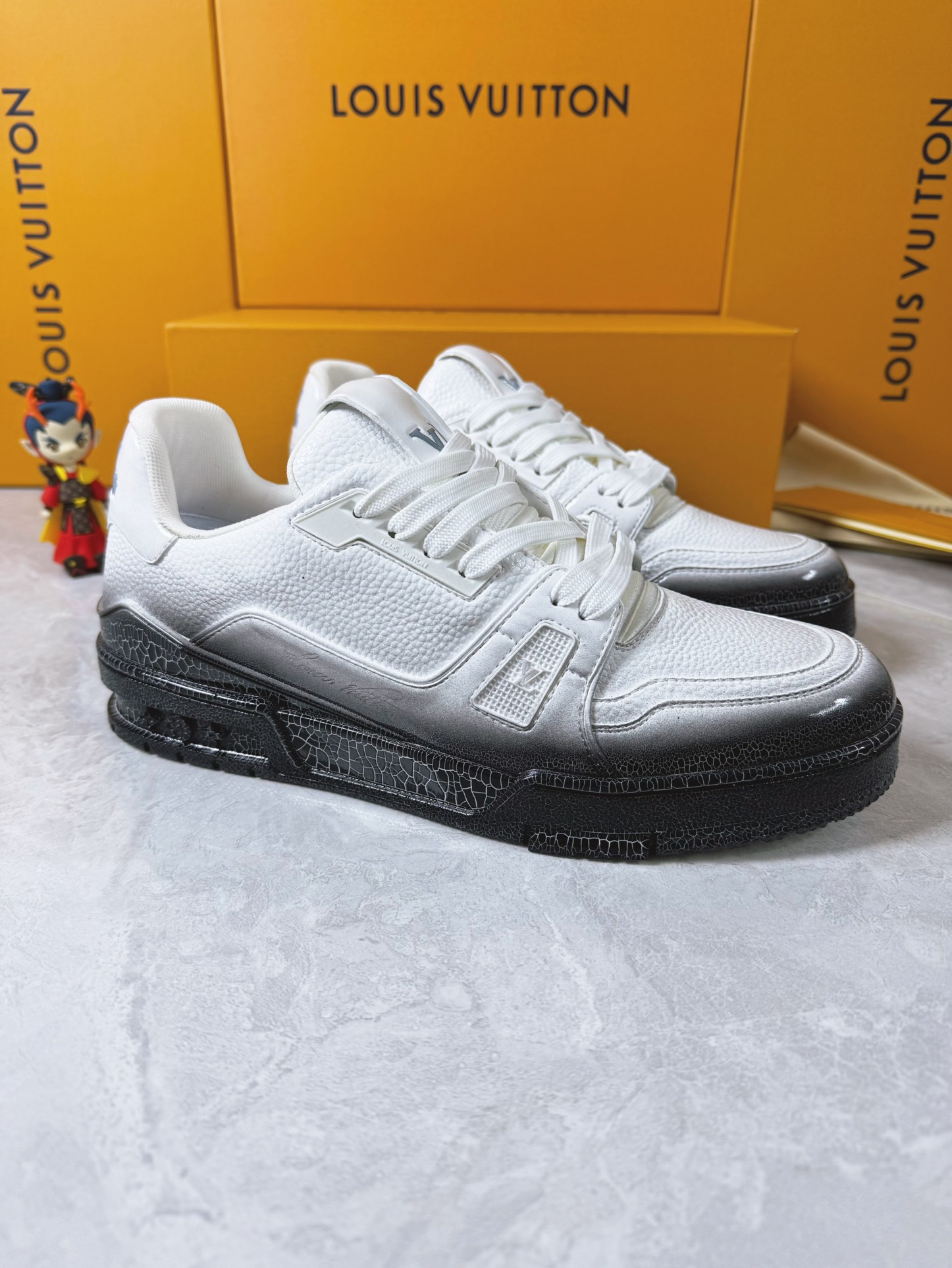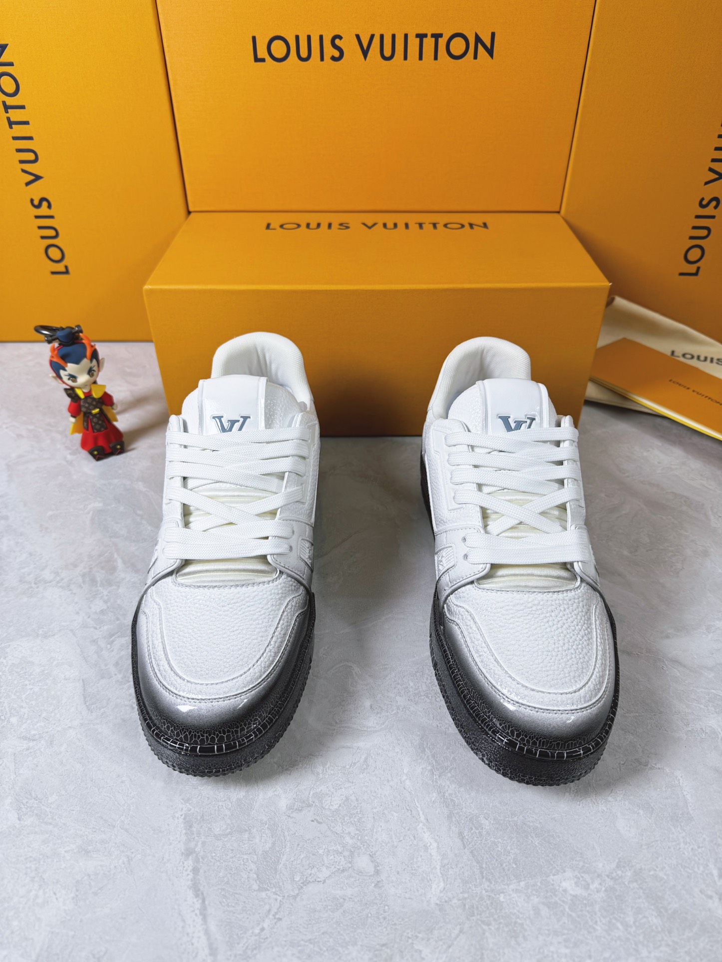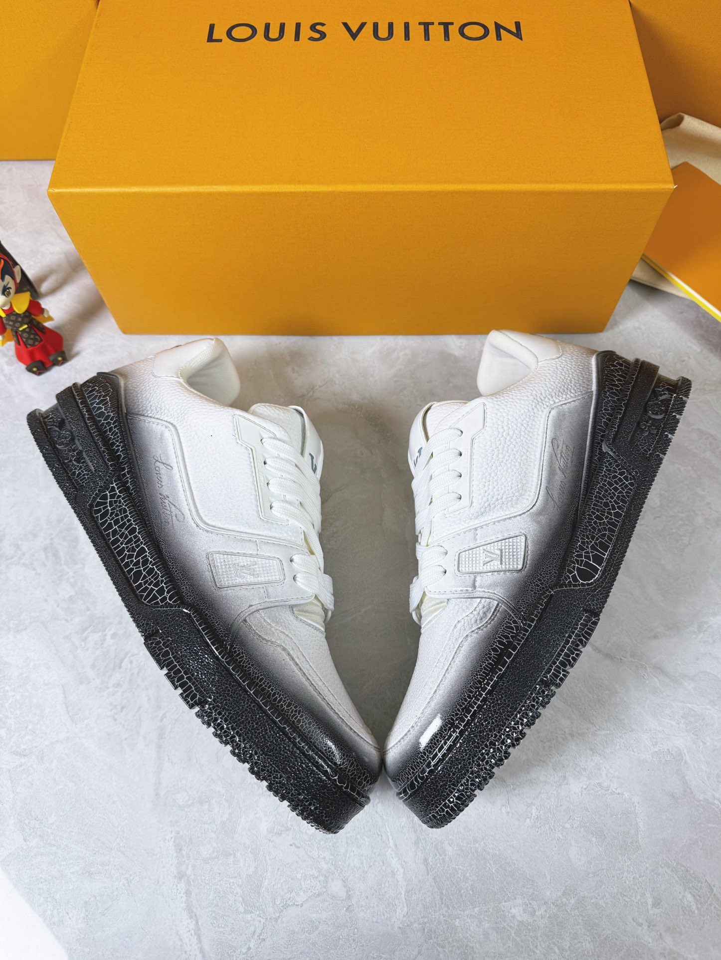 这款鞋子是AAAAA 1:1 质量 (非常棒). 使用了和原版一模一样的材料. 商标部分也保持了和路易威登/Louis Vuitton一样. 图片拍摄是实物鞋子拍摄, 您所收到的实物保证和我们图片一模一样.