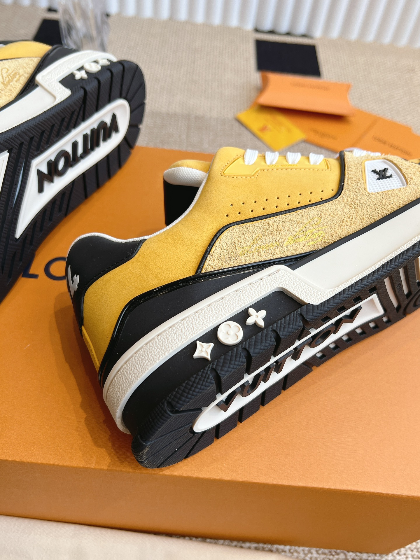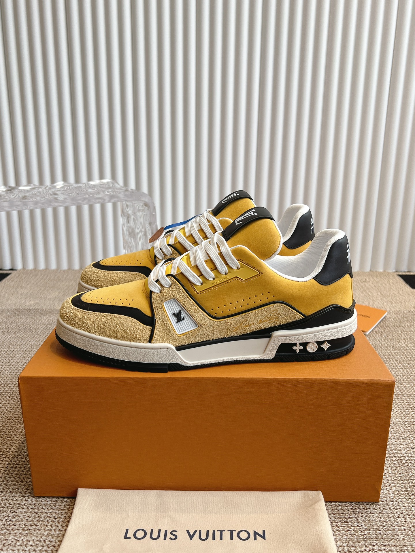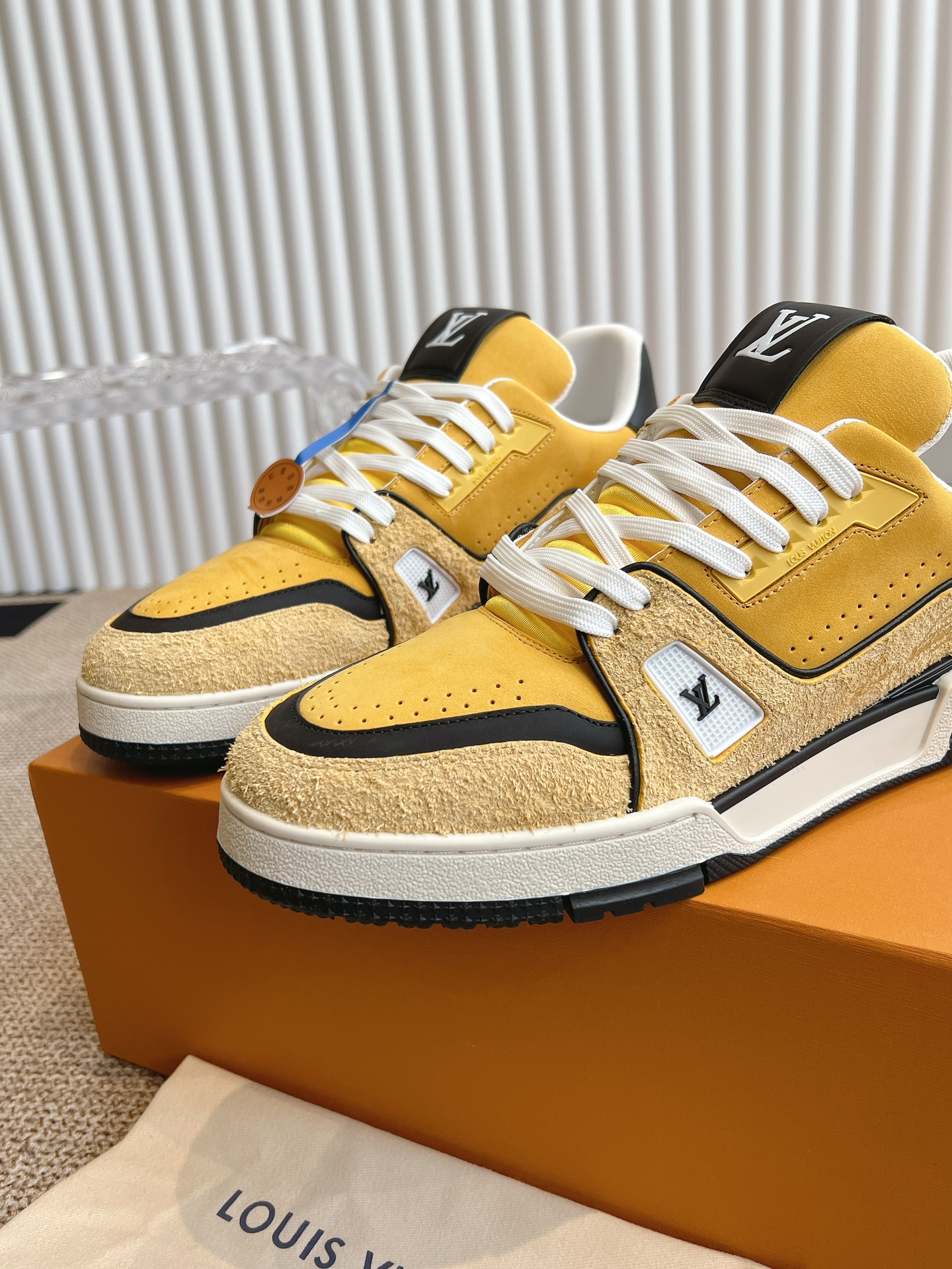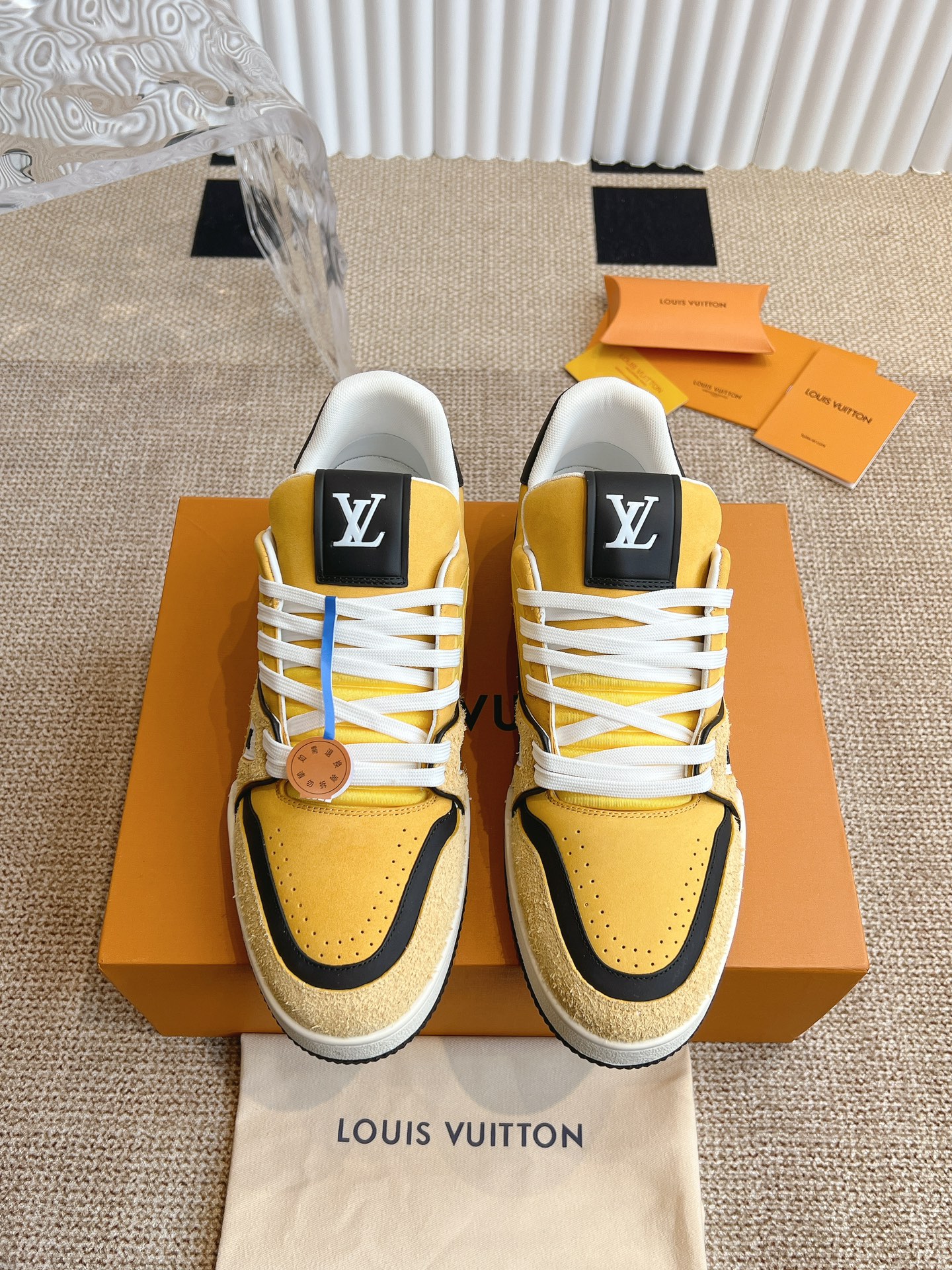这款鞋子是AAAAA 1:1 质量 (非常棒). 使用了和原版一模一样的材料. 商标部分也保持了和路易威登/Louis Vuitton一样. 图片拍摄是实物鞋子拍摄, 您所收到的实物保证和我们图片一模一样.