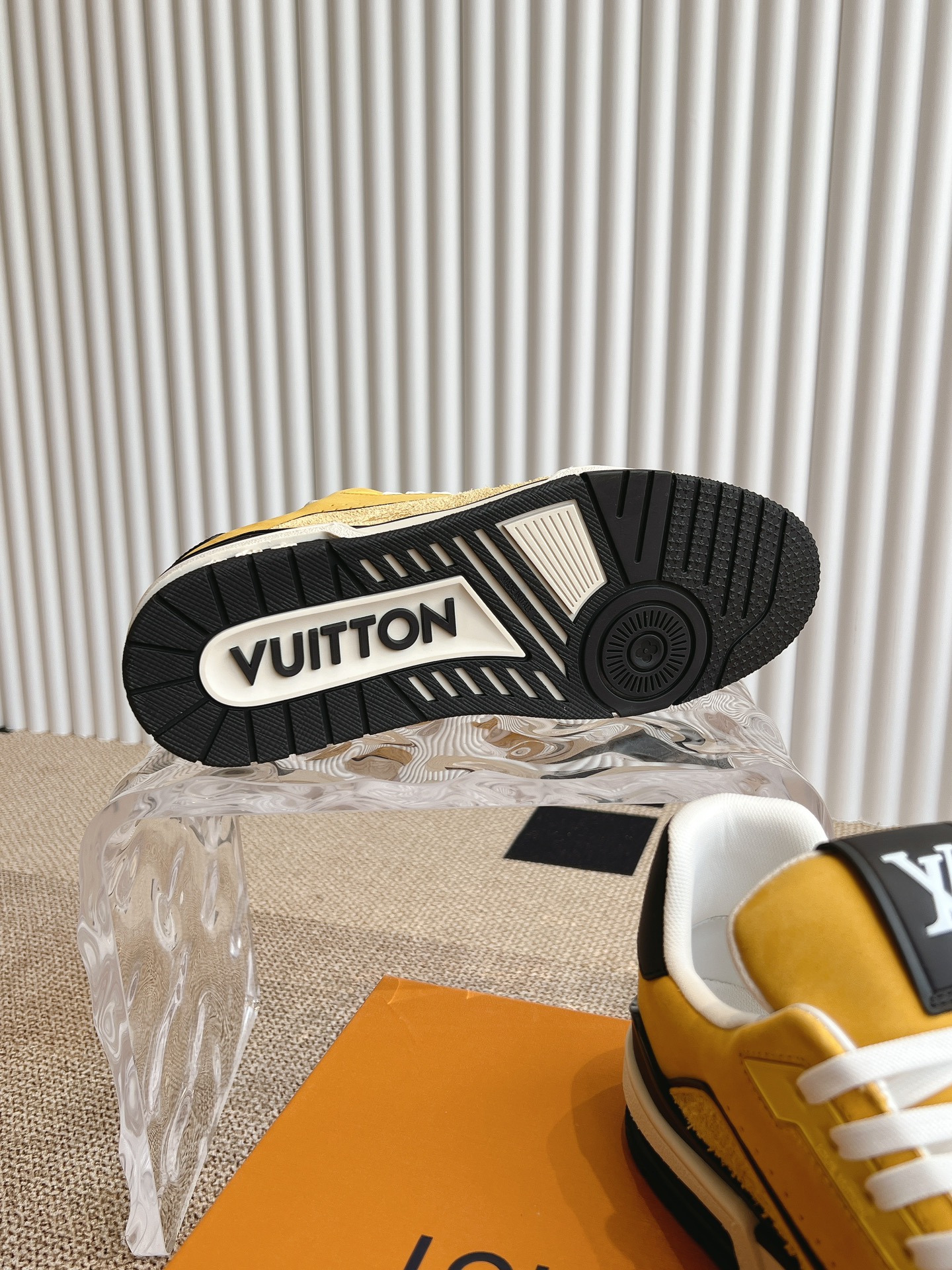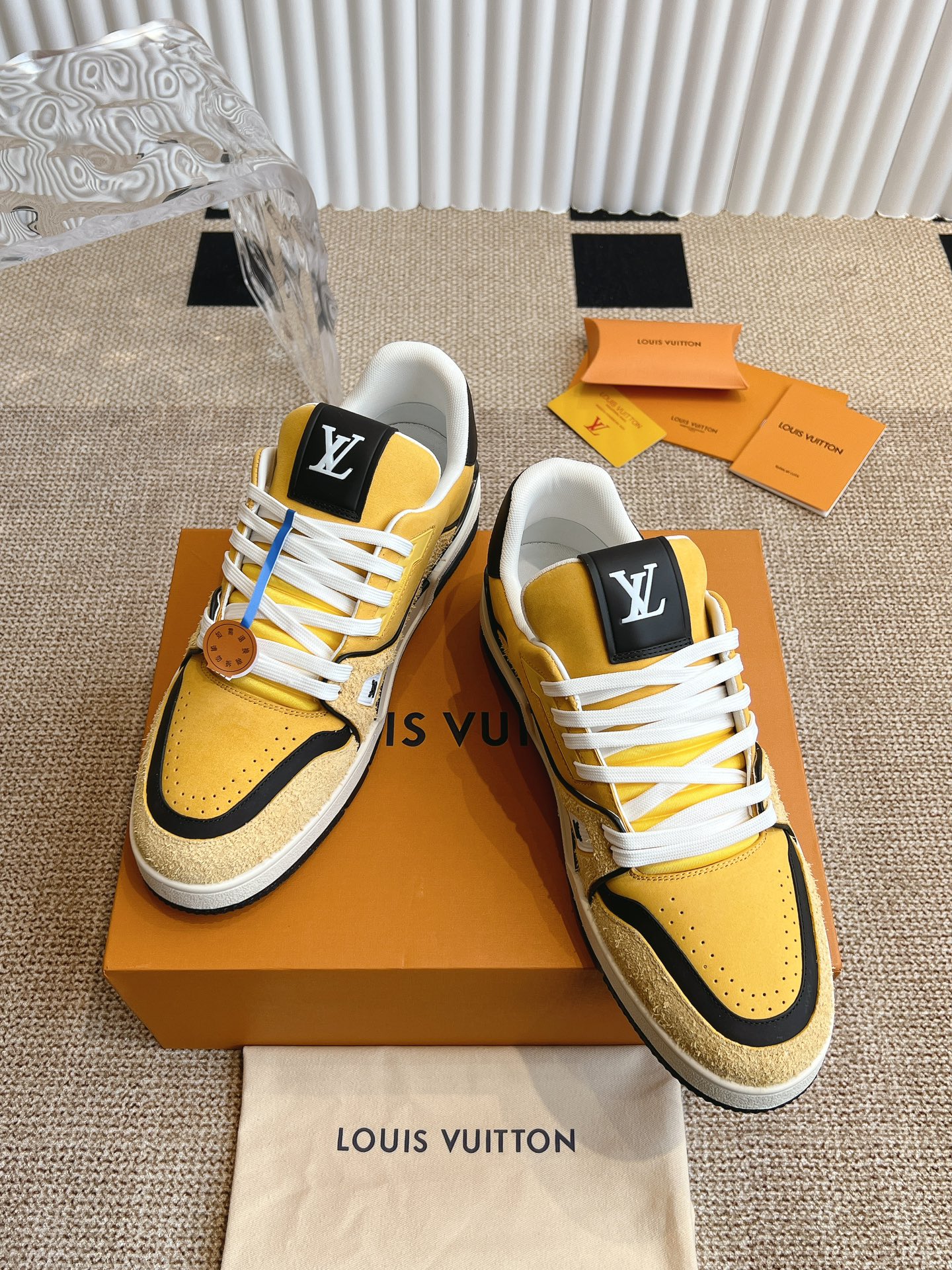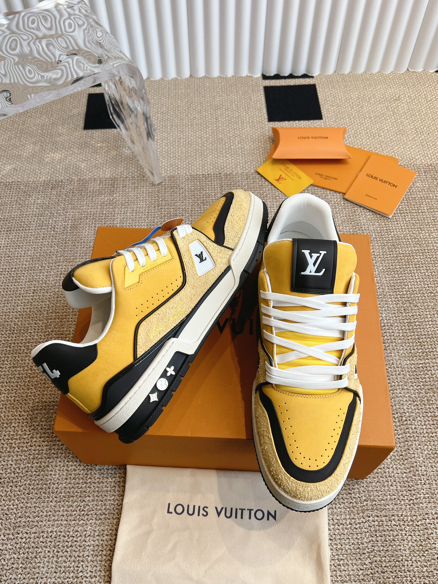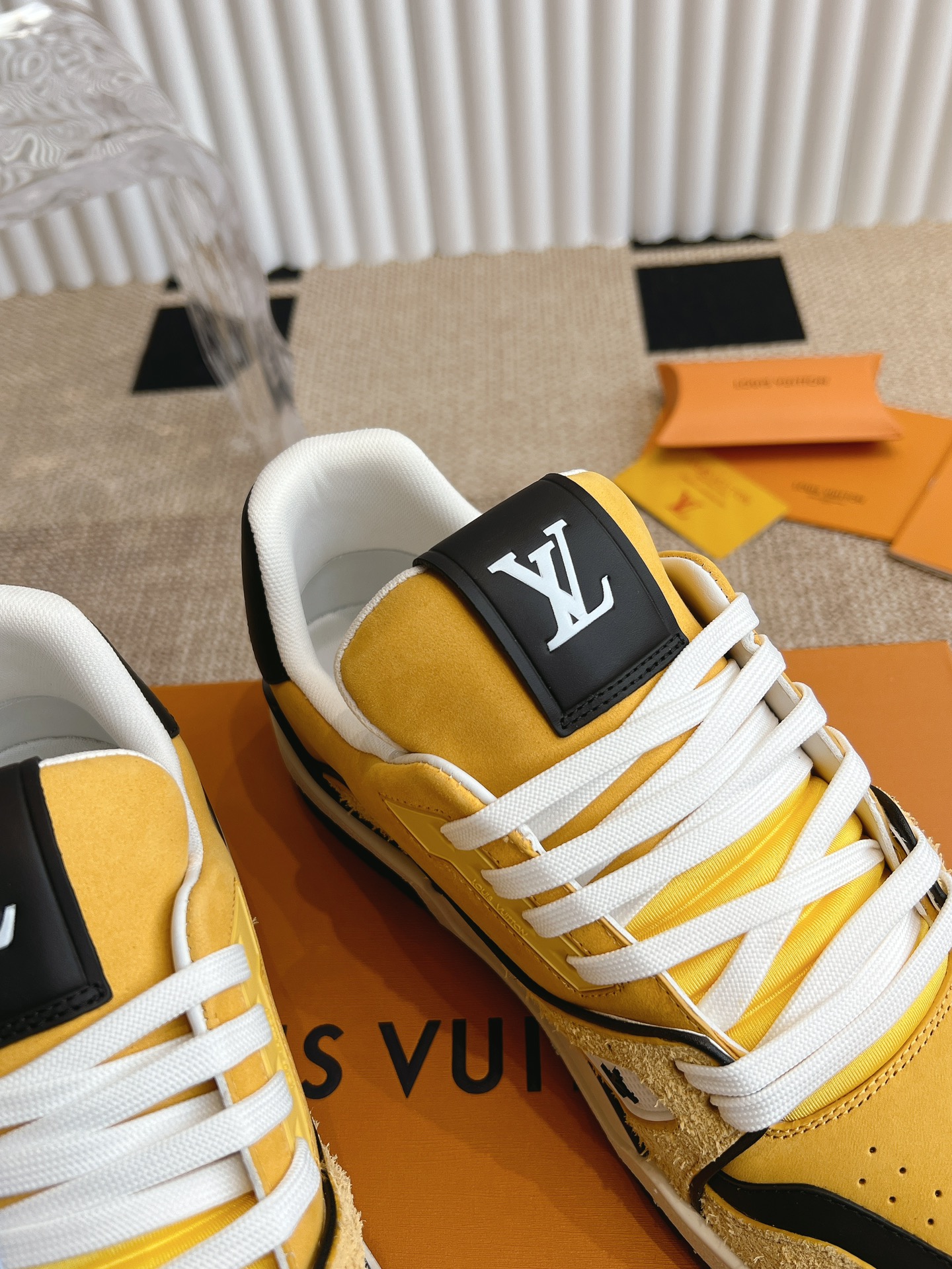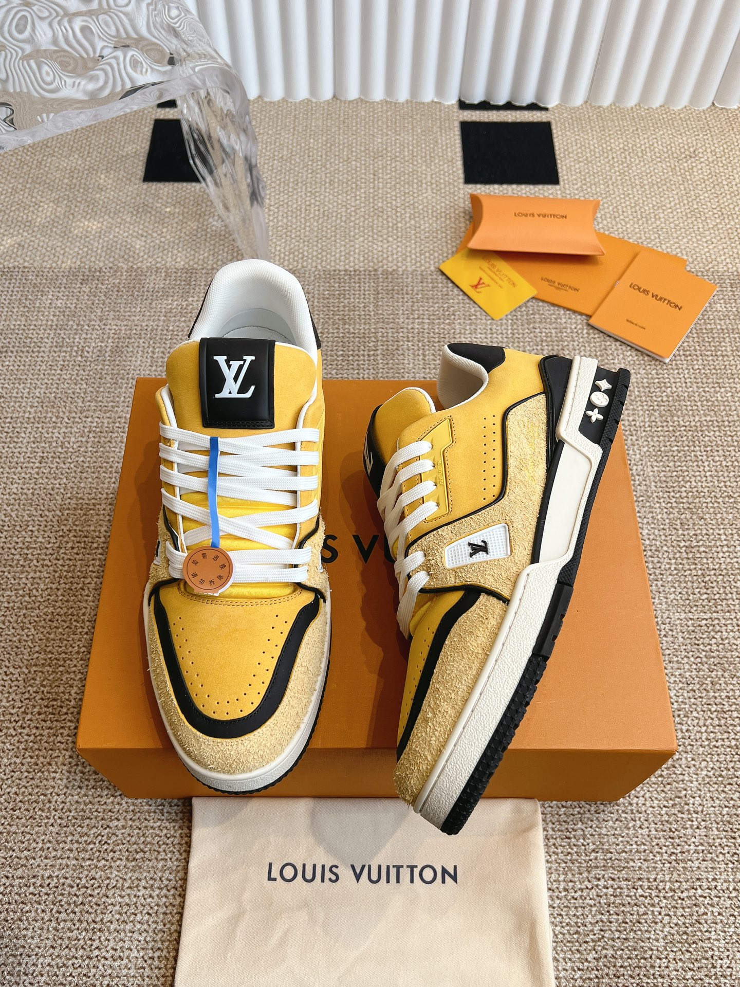 这款鞋子是AAAAA 1:1 质量 (非常棒). 使用了和原版一模一样的材料. 商标部分也保持了和路易威登/Louis Vuitton一样. 图片拍摄是实物鞋子拍摄, 您所收到的实物保证和我们图片一模一样.