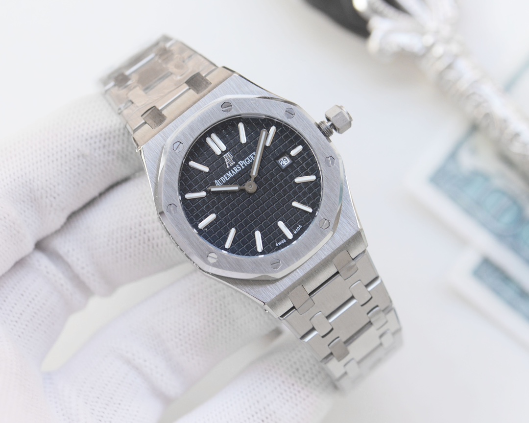 这款手表是AAAAA 1:1 质量 (非常棒). 使用了和原版一模一样的材料. 商标部分也保持了和爱彼/Audemars Piguet一样. 图片拍摄是实物手表拍摄, 您所收到的实物保证和我们图片一模一样.