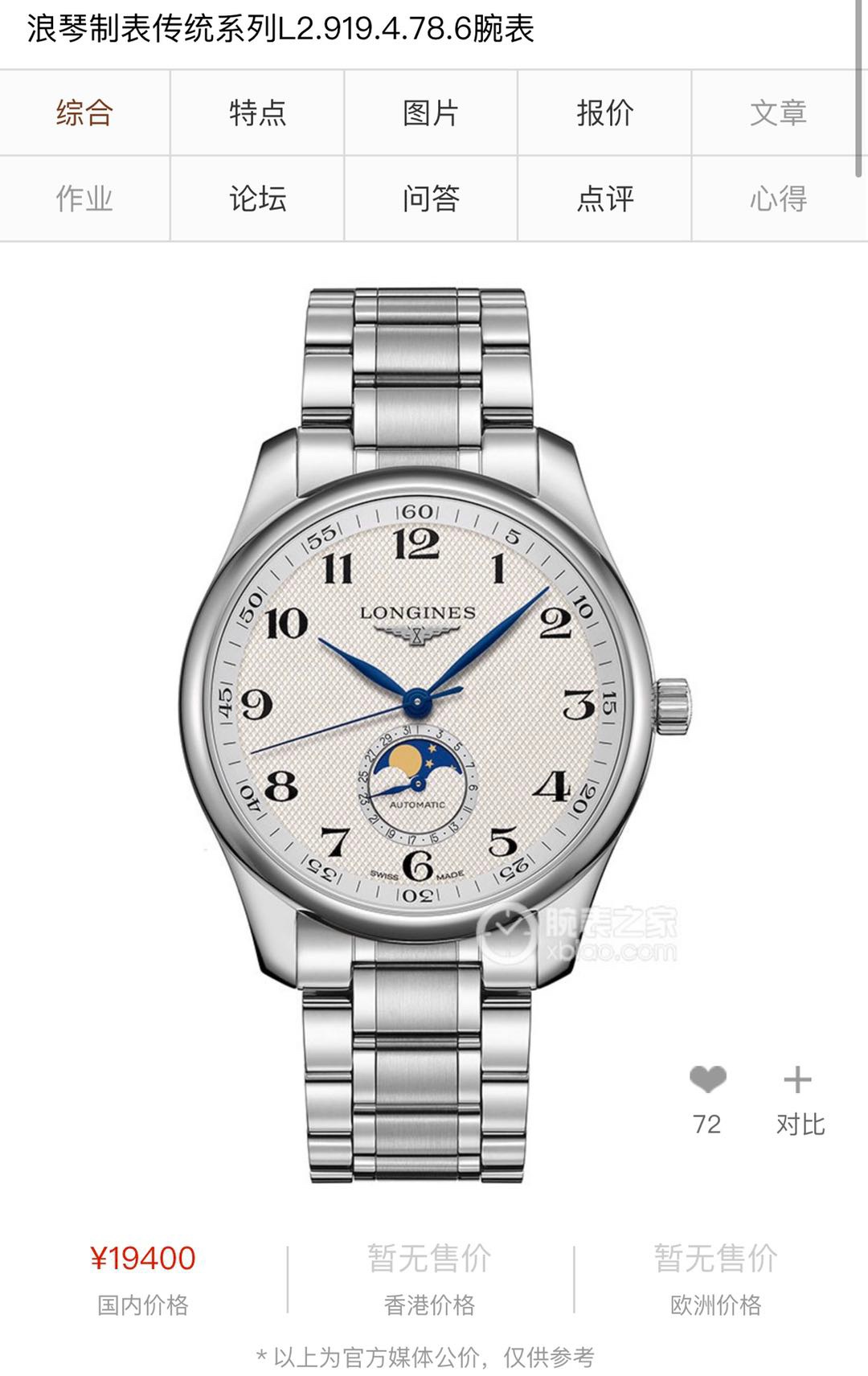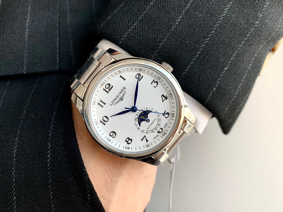这款手表是AAAAA 1:1 质量 (非常棒). 使用了和原版一模一样的材料. 商标部分也保持了和浪琴/Longines一样. 图片拍摄是实物手表拍摄, 您所收到的实物保证和我们图片一模一样.