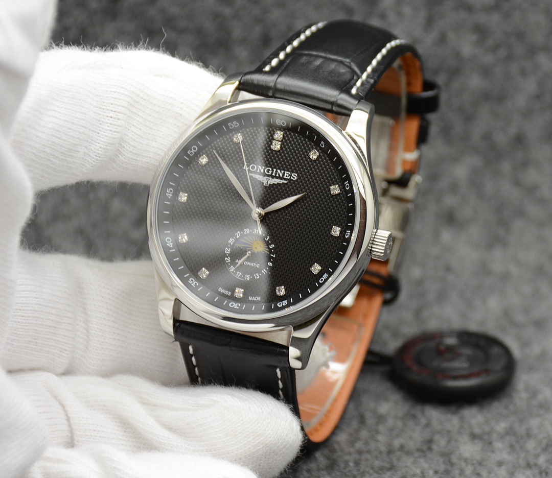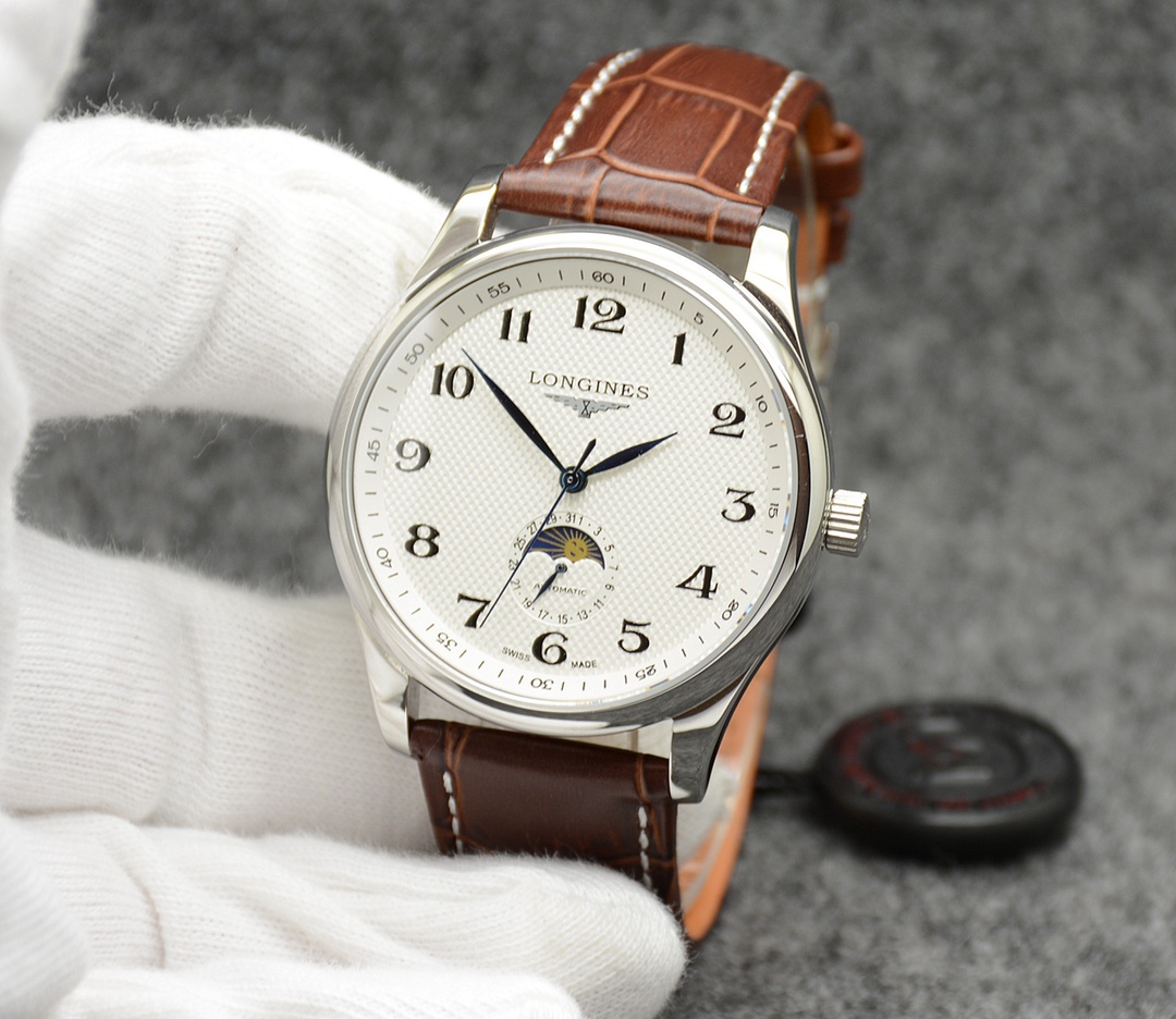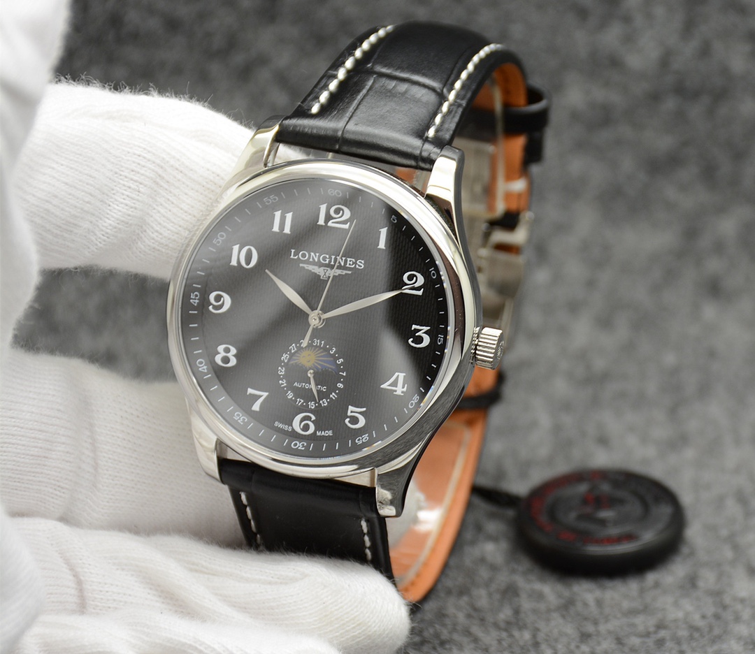 这款手表是AAAAA 1:1 质量 (非常棒). 使用了和原版一模一样的材料. 商标部分也保持了和浪琴/Longines一样. 图片拍摄是实物手表拍摄, 您所收到的实物保证和我们图片一模一样.