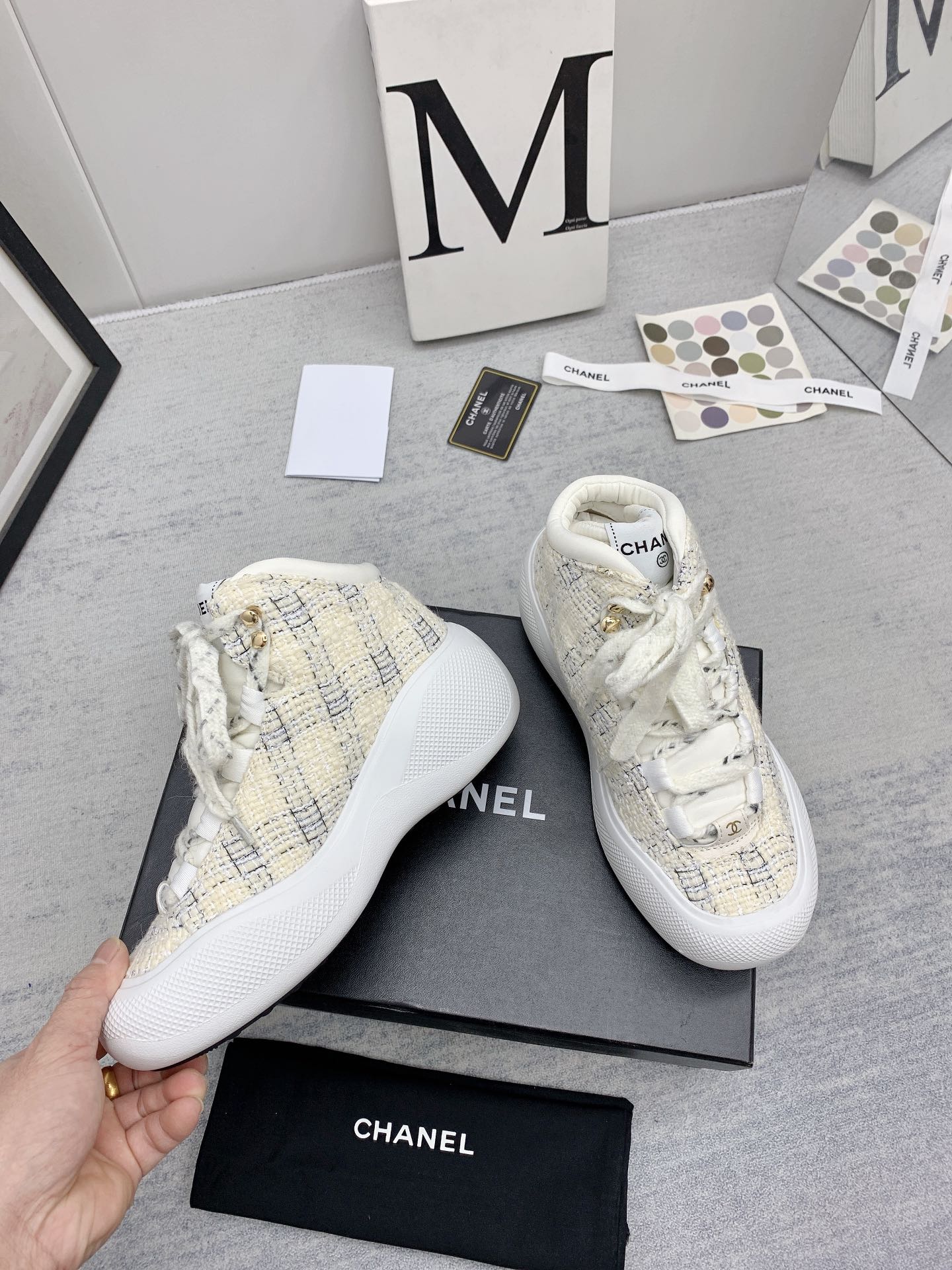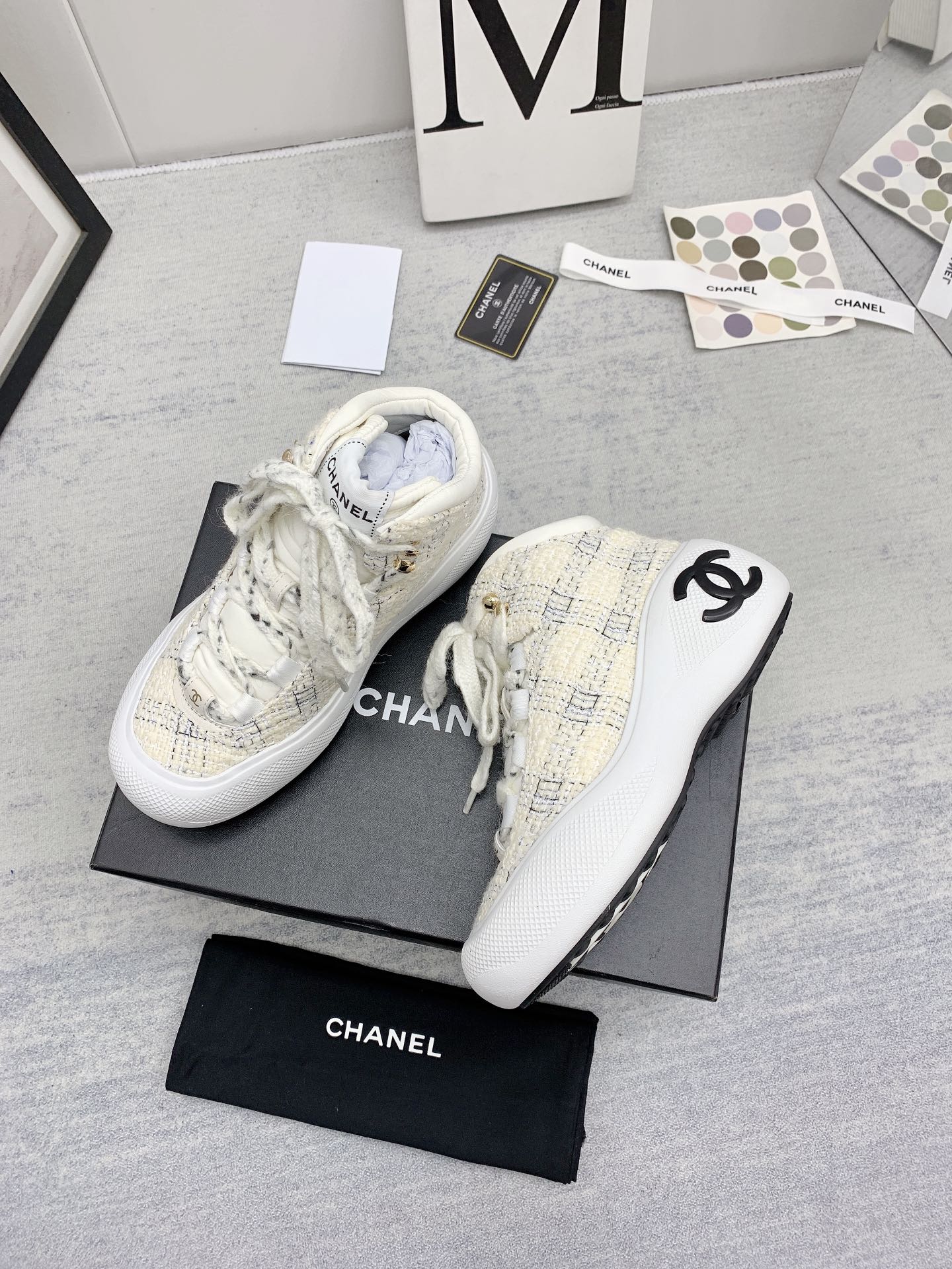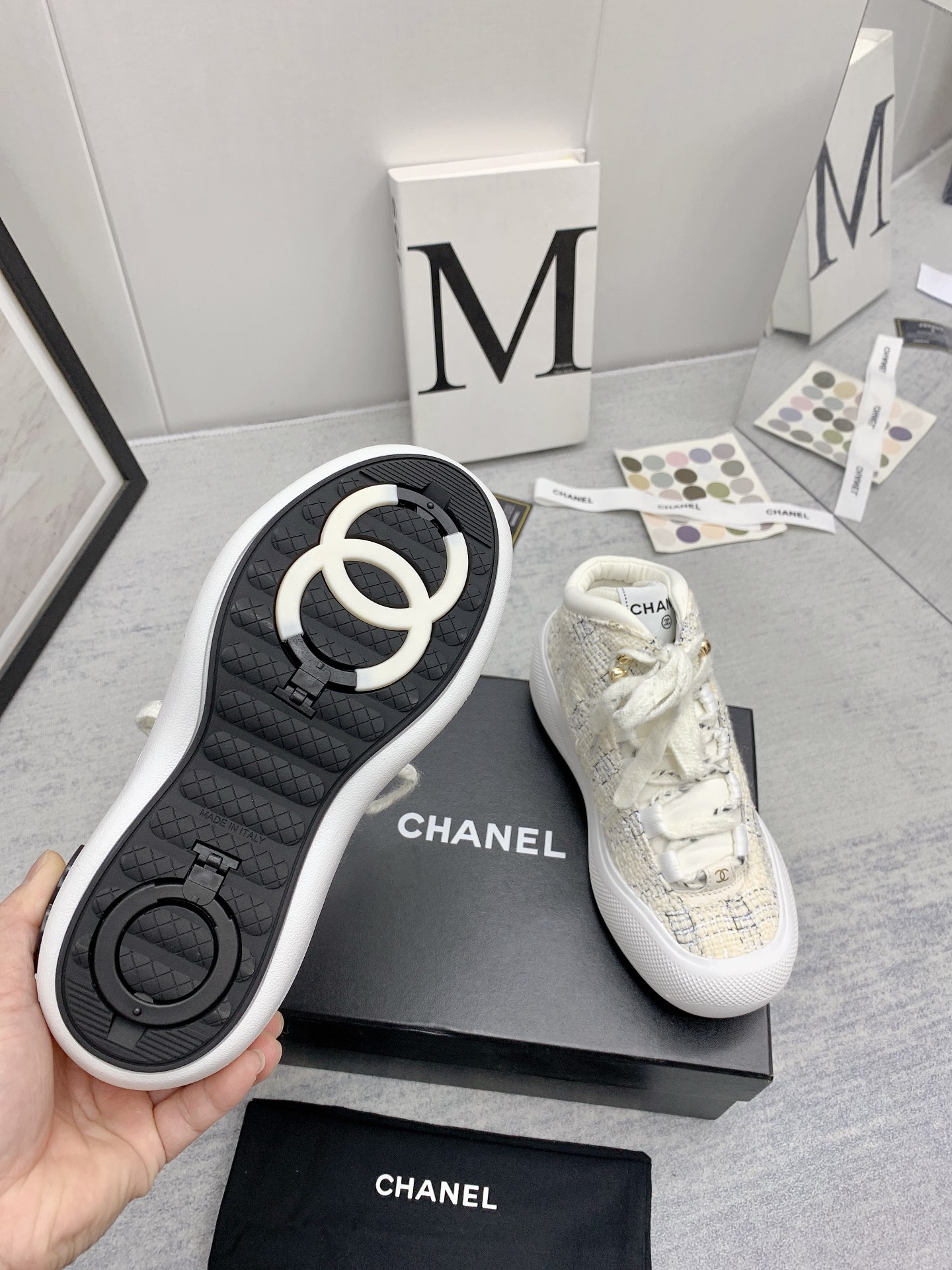 这款鞋子是AAAAA 1:1 质量 (非常棒). 使用了和原版一模一样的材料. 商标部分也保持了和香奈儿/Chanel一样. 图片拍摄是实物鞋子拍摄, 您所收到的实物保证和我们图片一模一样.