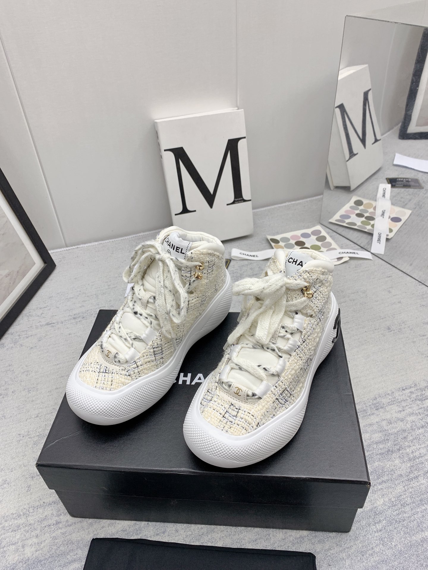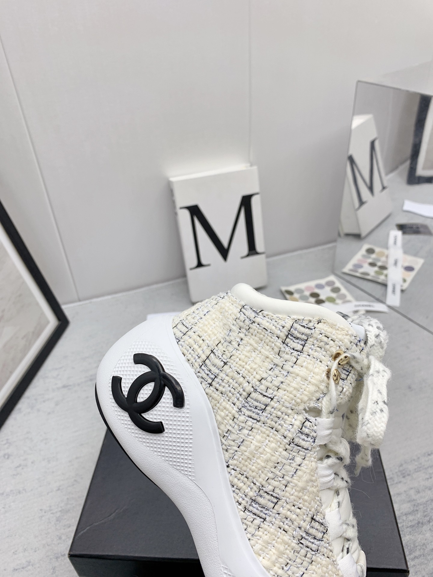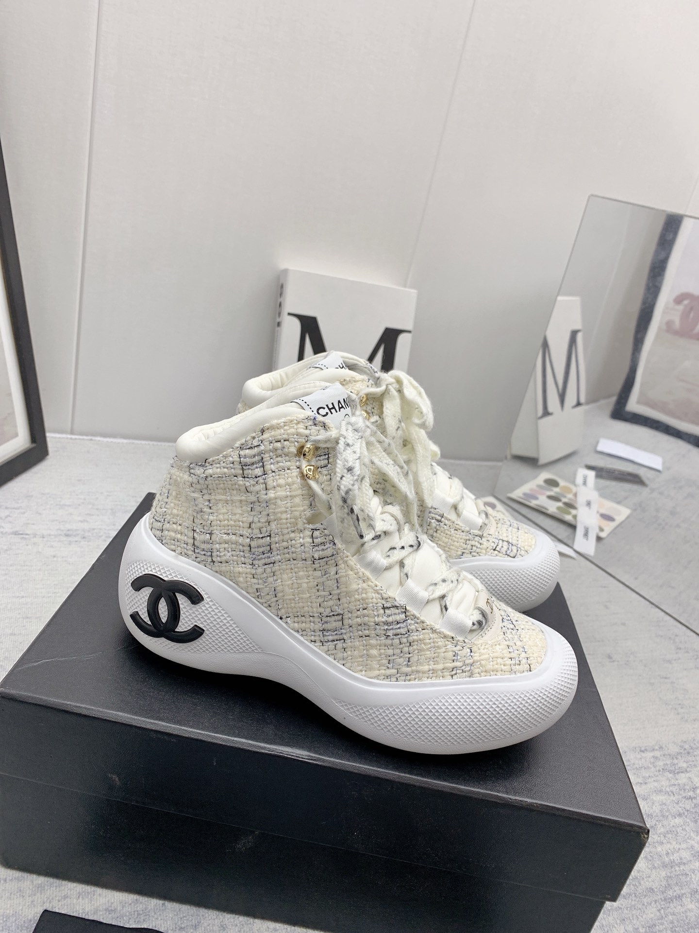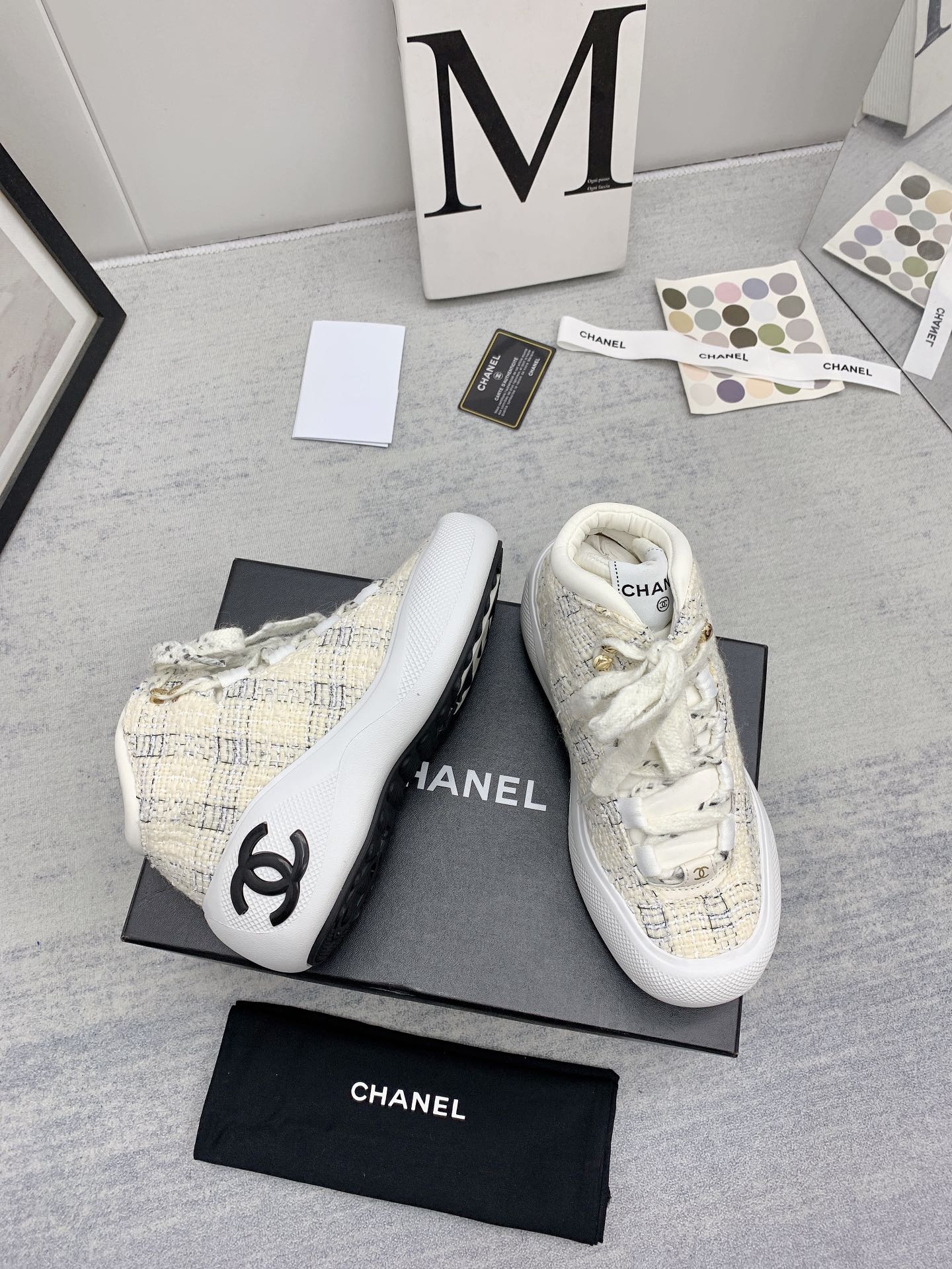 这款鞋子是AAAAA 1:1 质量 (非常棒). 使用了和原版一模一样的材料. 商标部分也保持了和香奈儿/Chanel一样. 图片拍摄是实物鞋子拍摄, 您所收到的实物保证和我们图片一模一样.