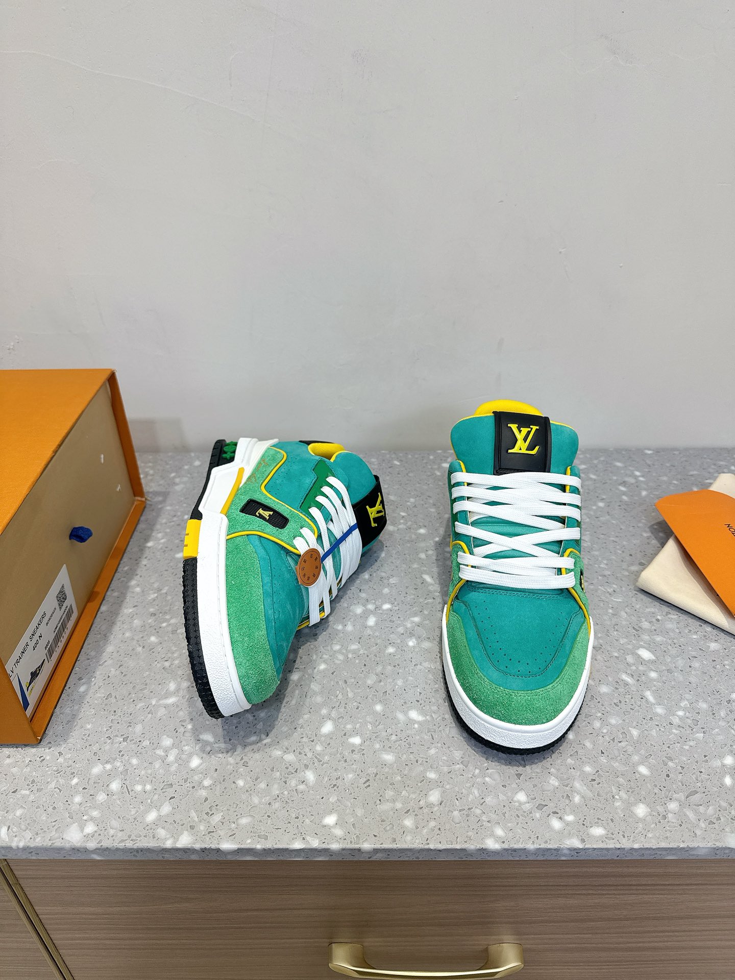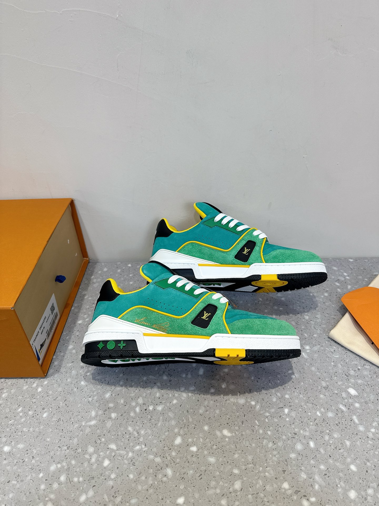 这款鞋子是AAAAA 1:1 质量 (非常棒). 使用了和原版一模一样的材料. 商标部分也保持了和路易威登/Louis Vuitton一样. 图片拍摄是实物鞋子拍摄, 您所收到的实物保证和我们图片一模一样.