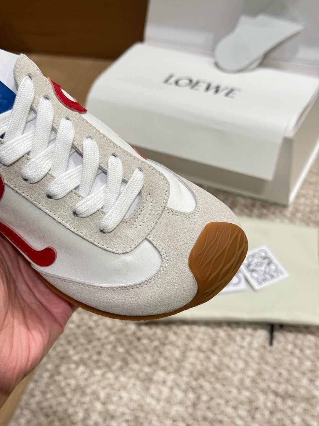 这款鞋子是AAAAA 1:1 质量 (非常棒). 使用了和原版一模一样的材料. 商标部分也保持了和罗意威/Loewe一样. 图片拍摄是实物鞋子拍摄, 您所收到的实物保证和我们图片一模一样.