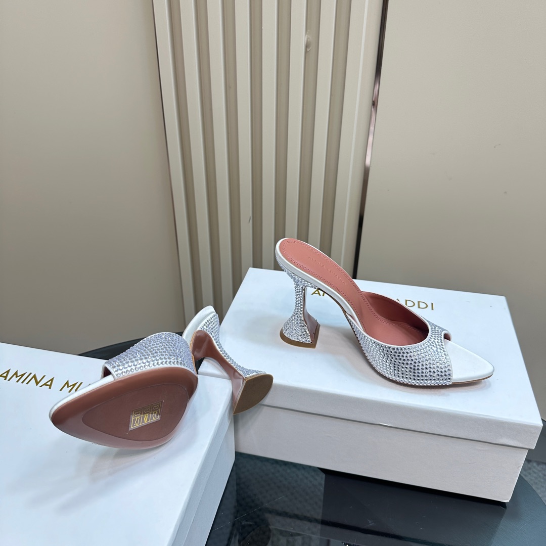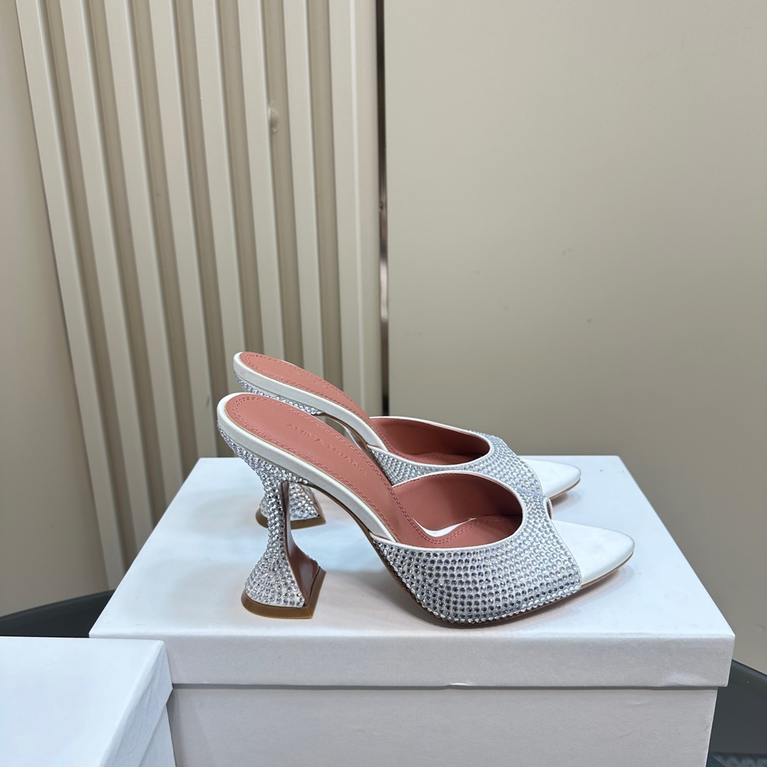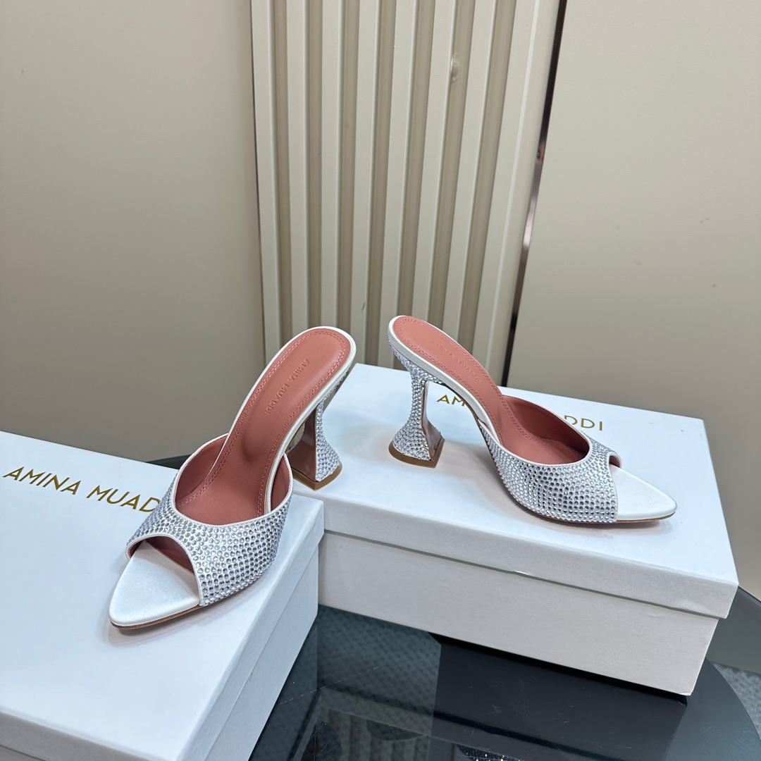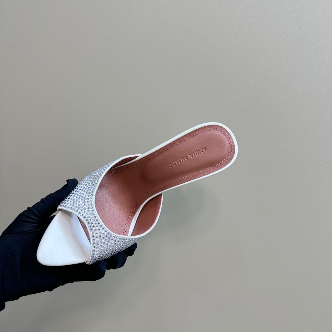 这款鞋子是AAAAA 1:1 质量 (非常棒). 使用了和原版一模一样的材料. 商标部分也保持了和Amina Muaddi一样. 图片拍摄是实物鞋子拍摄, 您所收到的实物保证和我们图片一模一样.