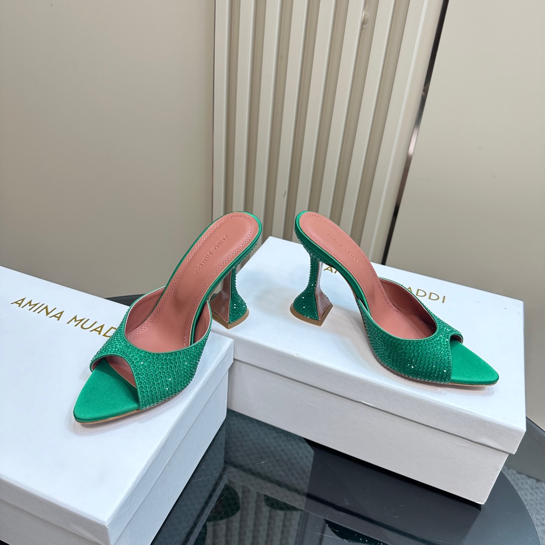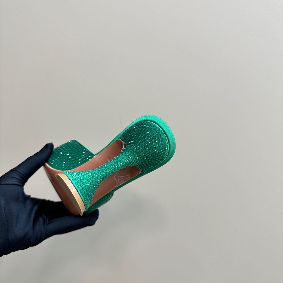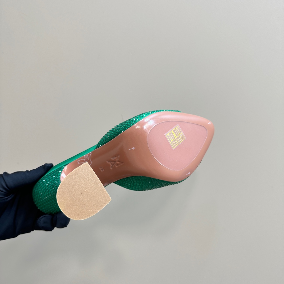这款鞋子是AAAAA 1:1 质量 (非常棒). 使用了和原版一模一样的材料. 商标部分也保持了和Amina Muaddi一样. 图片拍摄是实物鞋子拍摄, 您所收到的实物保证和我们图片一模一样.