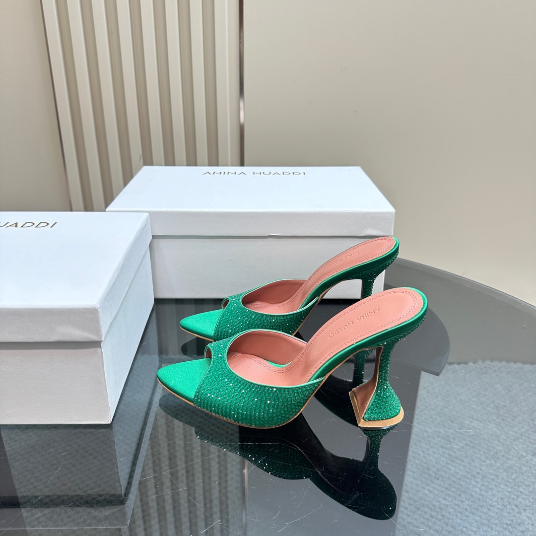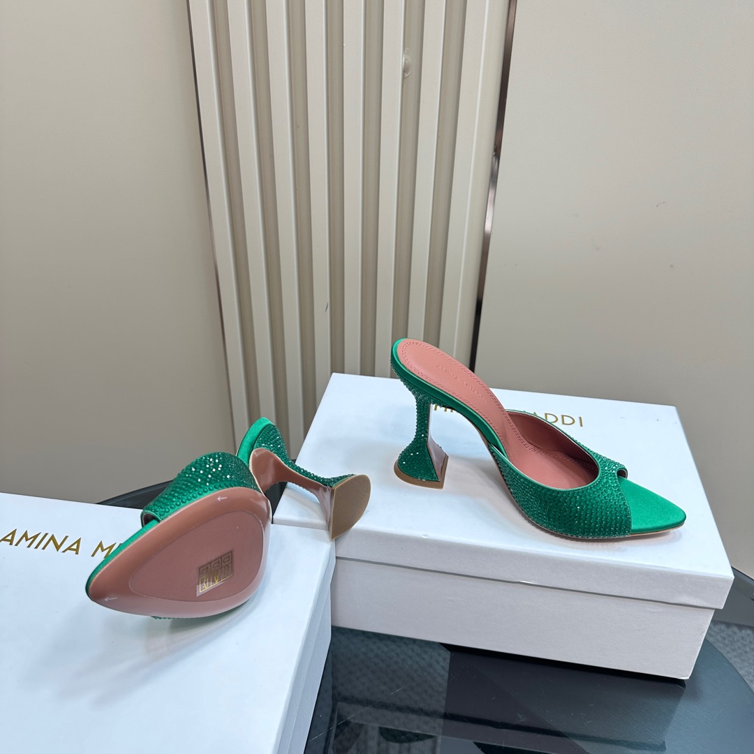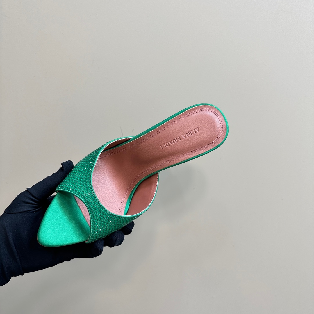 这款鞋子是AAAAA 1:1 质量 (非常棒). 使用了和原版一模一样的材料. 商标部分也保持了和Amina Muaddi一样. 图片拍摄是实物鞋子拍摄, 您所收到的实物保证和我们图片一模一样.
