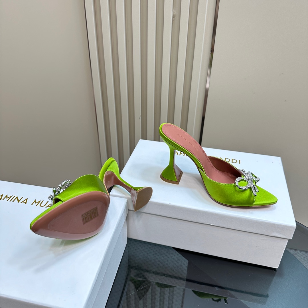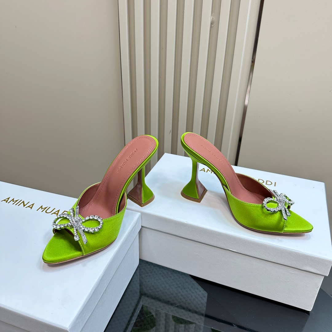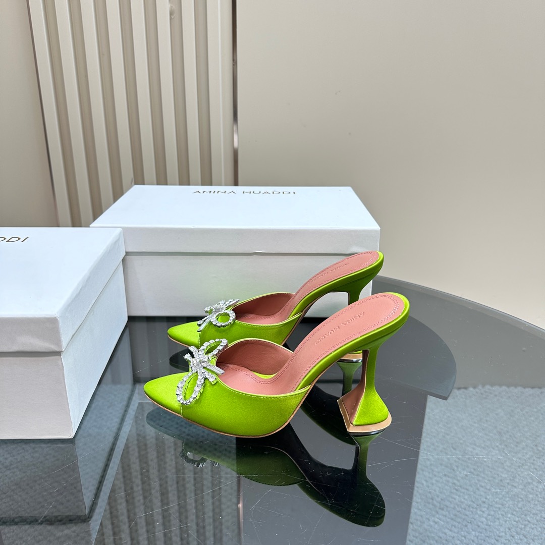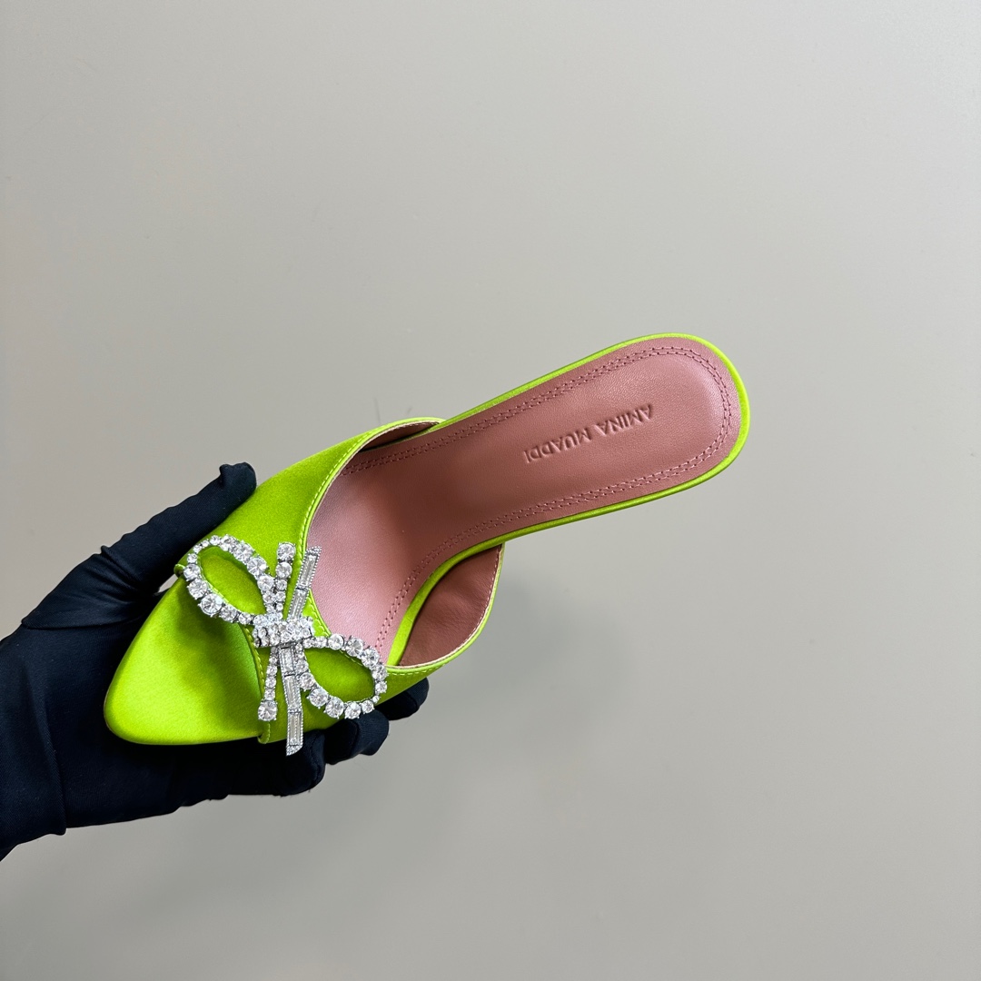 这款鞋子是AAAAA 1:1 质量 (非常棒). 使用了和原版一模一样的材料. 商标部分也保持了和Amina Muaddi一样. 图片拍摄是实物鞋子拍摄, 您所收到的实物保证和我们图片一模一样.
