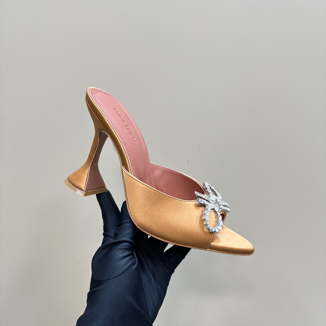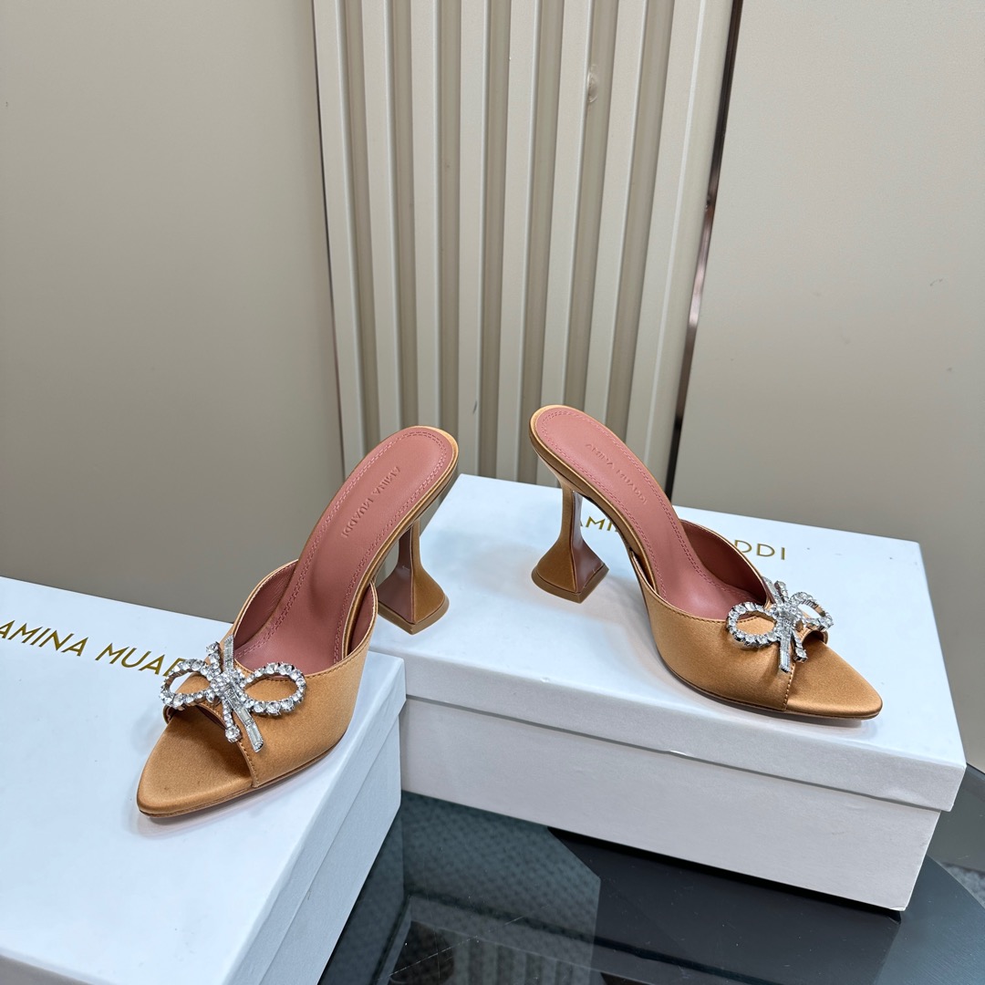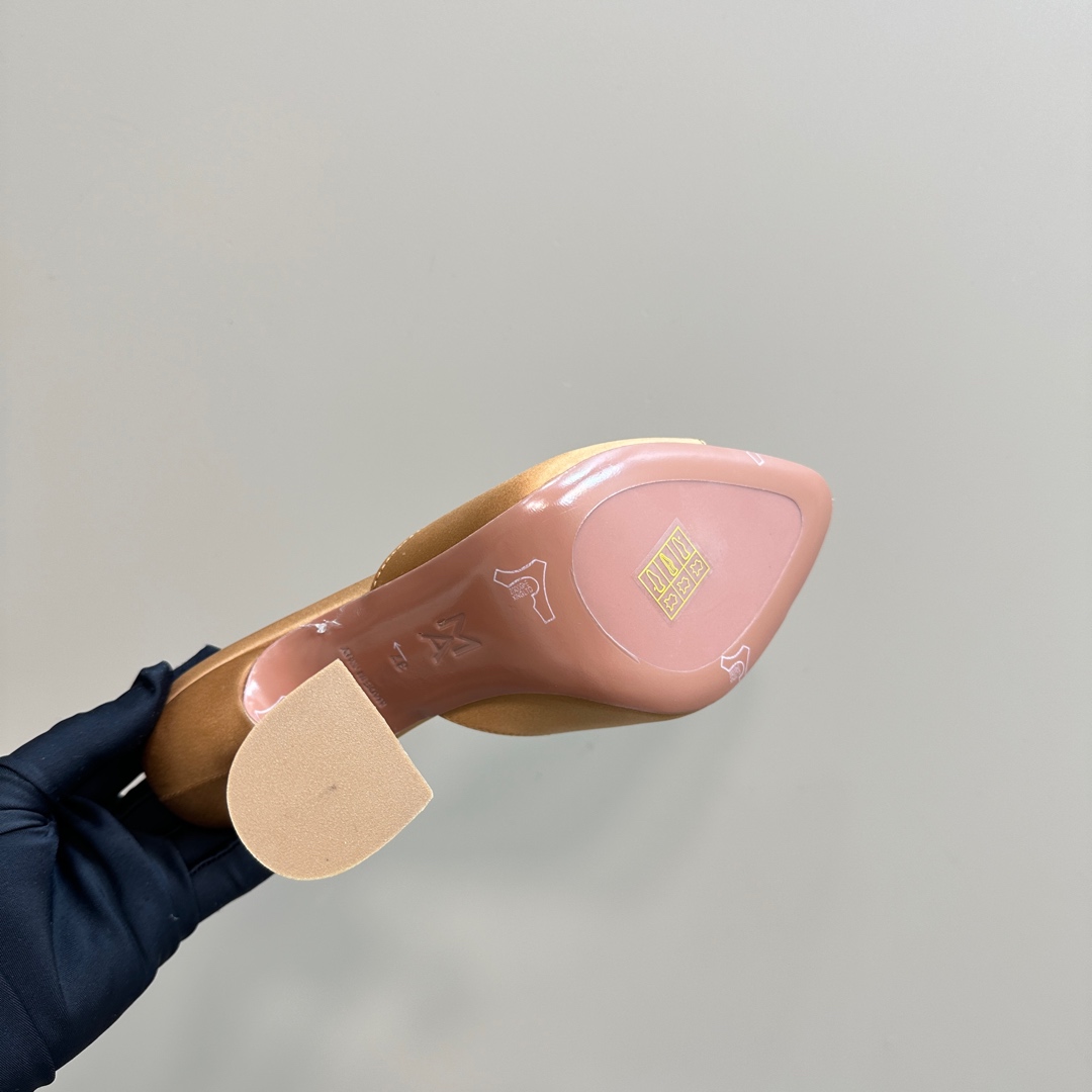 这款鞋子是AAAAA 1:1 质量 (非常棒). 使用了和原版一模一样的材料. 商标部分也保持了和Amina Muaddi一样. 图片拍摄是实物鞋子拍摄, 您所收到的实物保证和我们图片一模一样.