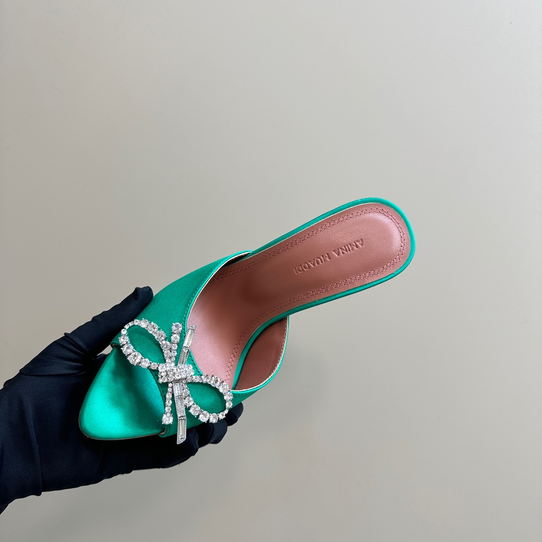 这款鞋子是AAAAA 1:1 质量 (非常棒). 使用了和原版一模一样的材料. 商标部分也保持了和Amina Muaddi一样. 图片拍摄是实物鞋子拍摄, 您所收到的实物保证和我们图片一模一样.