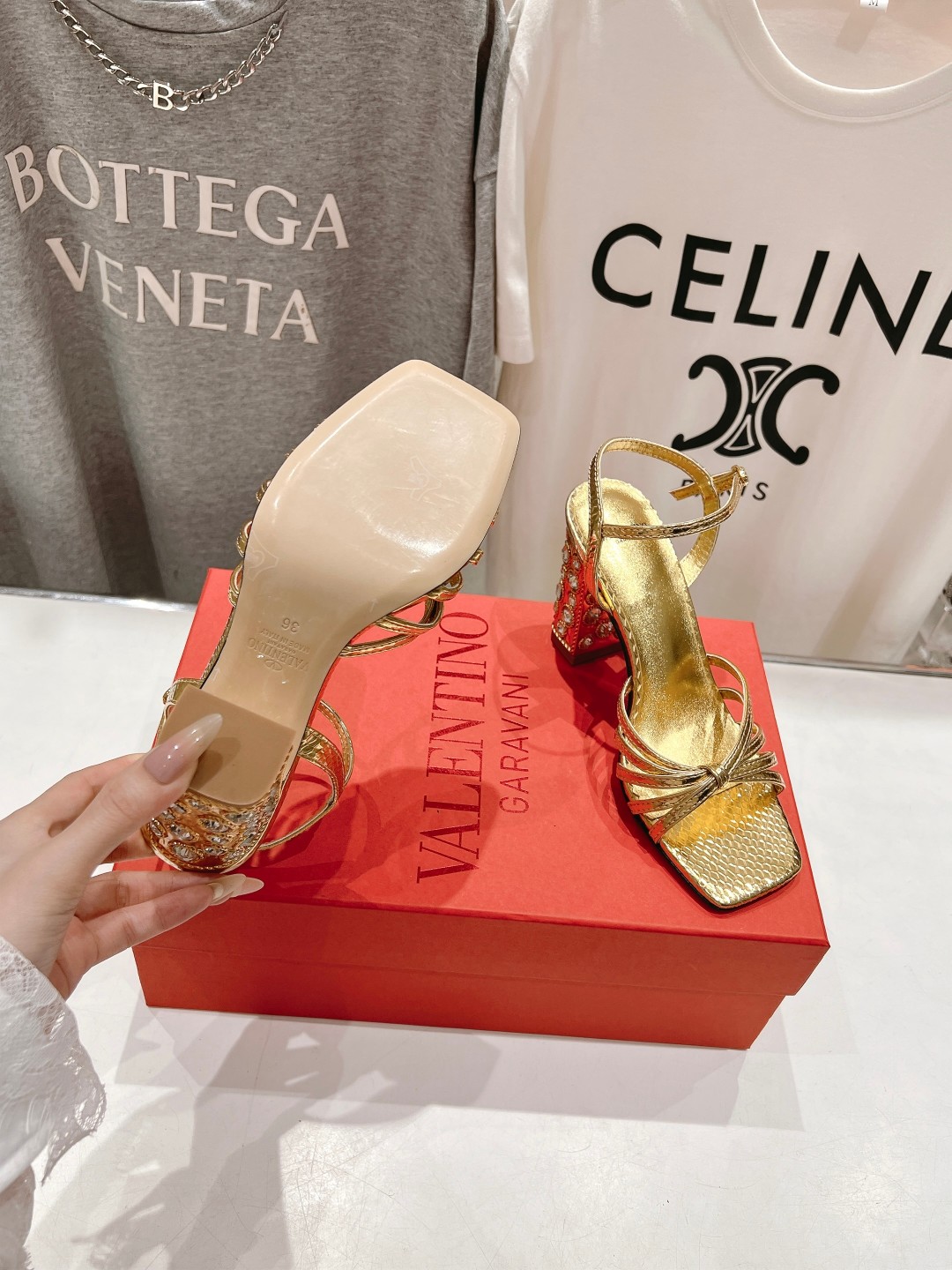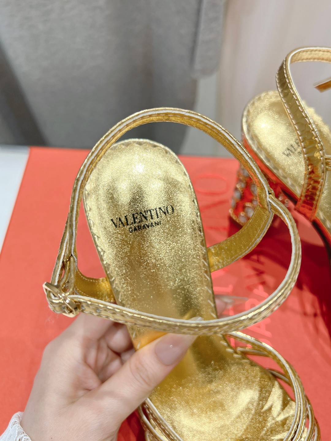 这款鞋子是AAAAA 1:1 质量 (非常棒). 使用了和原版一模一样的材料. 商标部分也保持了和华伦天奴/Valentino一样. 图片拍摄是实物鞋子拍摄, 您所收到的实物保证和我们图片一模一样.