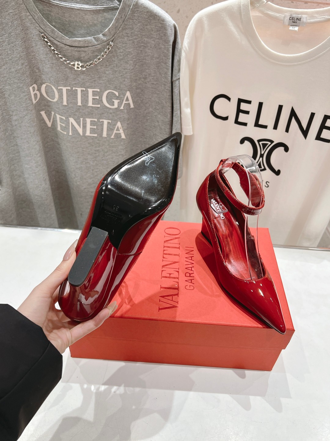 这款鞋子是AAAAA 1:1 质量 (非常棒). 使用了和原版一模一样的材料. 商标部分也保持了和华伦天奴/Valentino一样. 图片拍摄是实物鞋子拍摄, 您所收到的实物保证和我们图片一模一样.