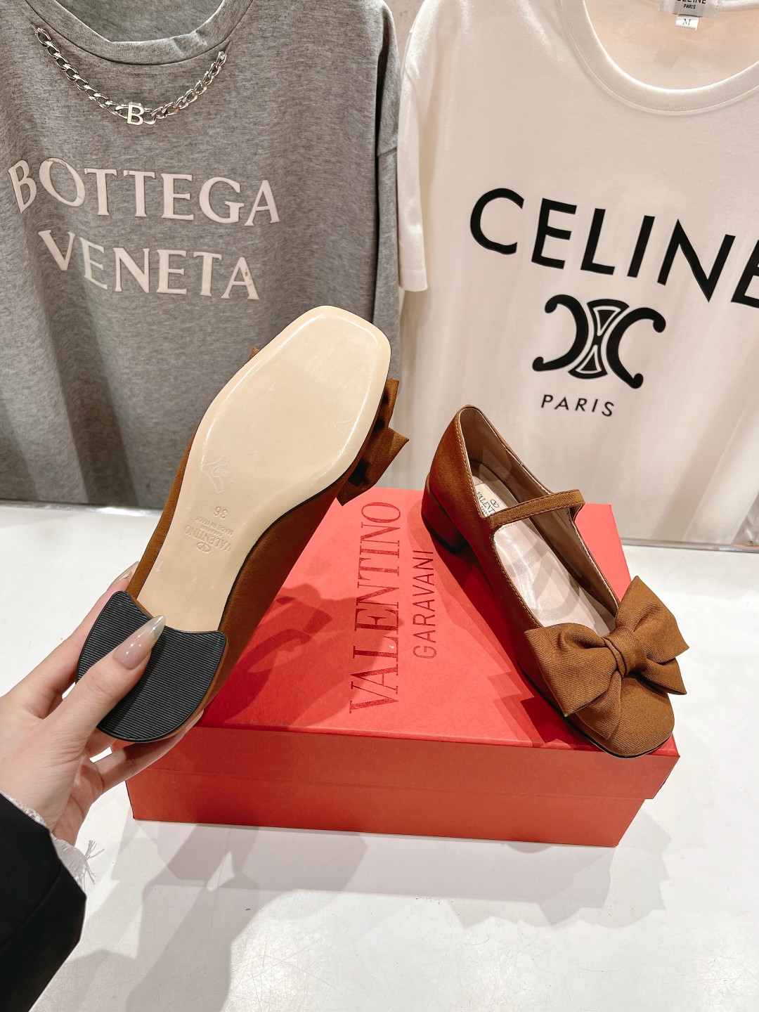 这款鞋子是AAAAA 1:1 质量 (非常棒). 使用了和原版一模一样的材料. 商标部分也保持了和华伦天奴/Valentino一样. 图片拍摄是实物鞋子拍摄, 您所收到的实物保证和我们图片一模一样.