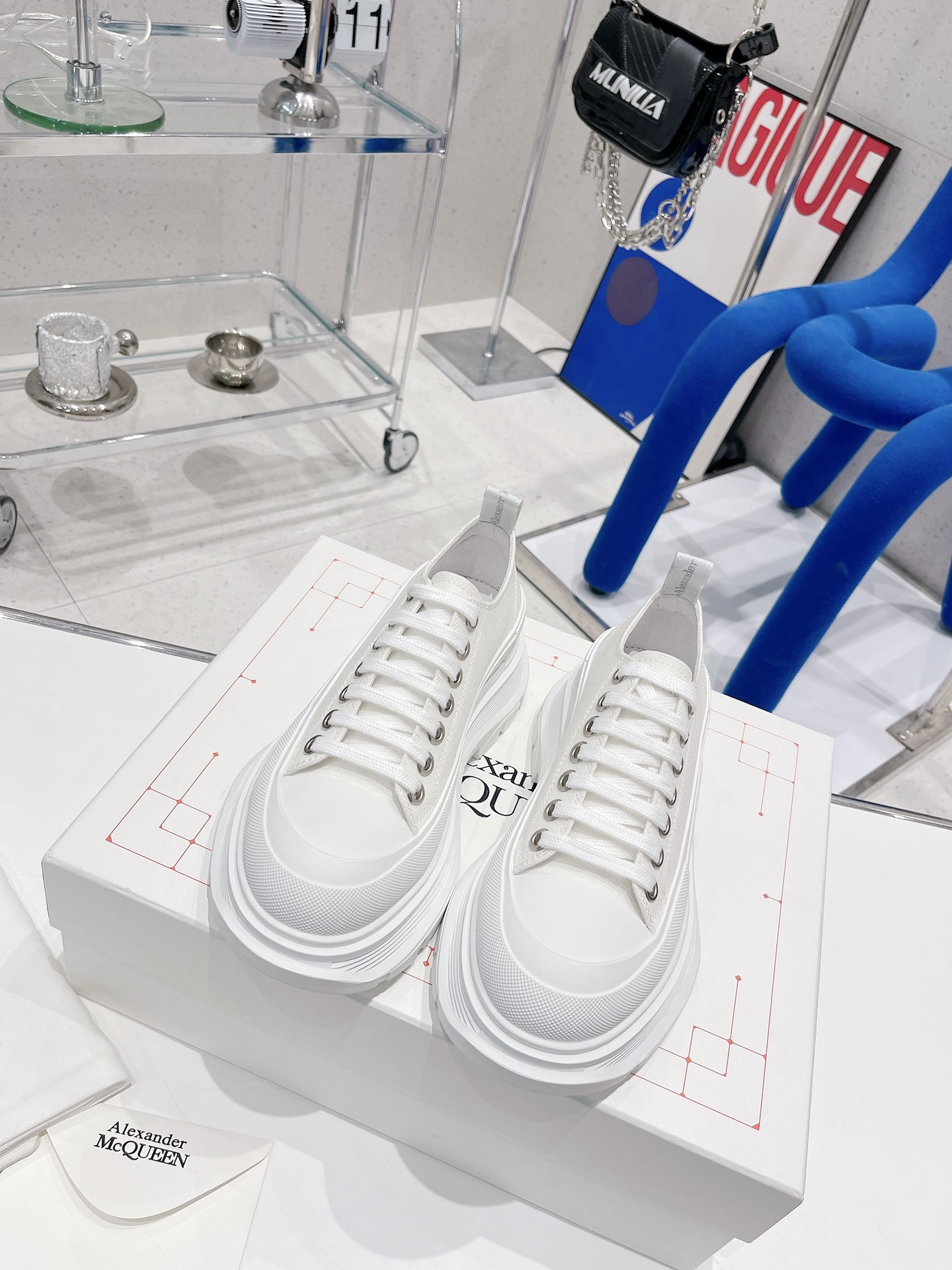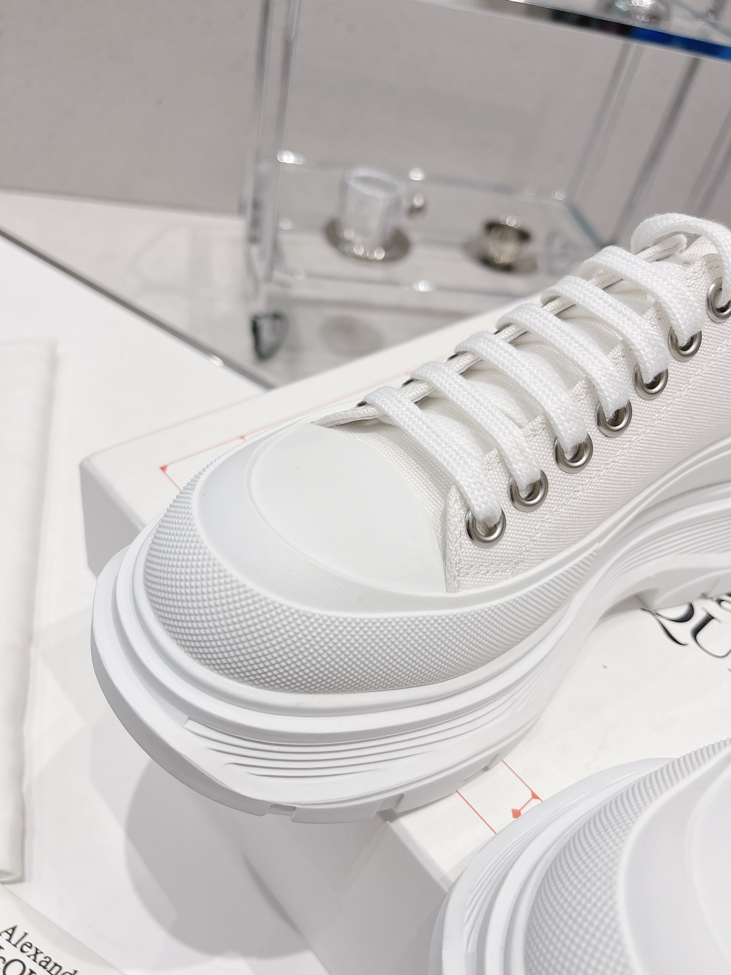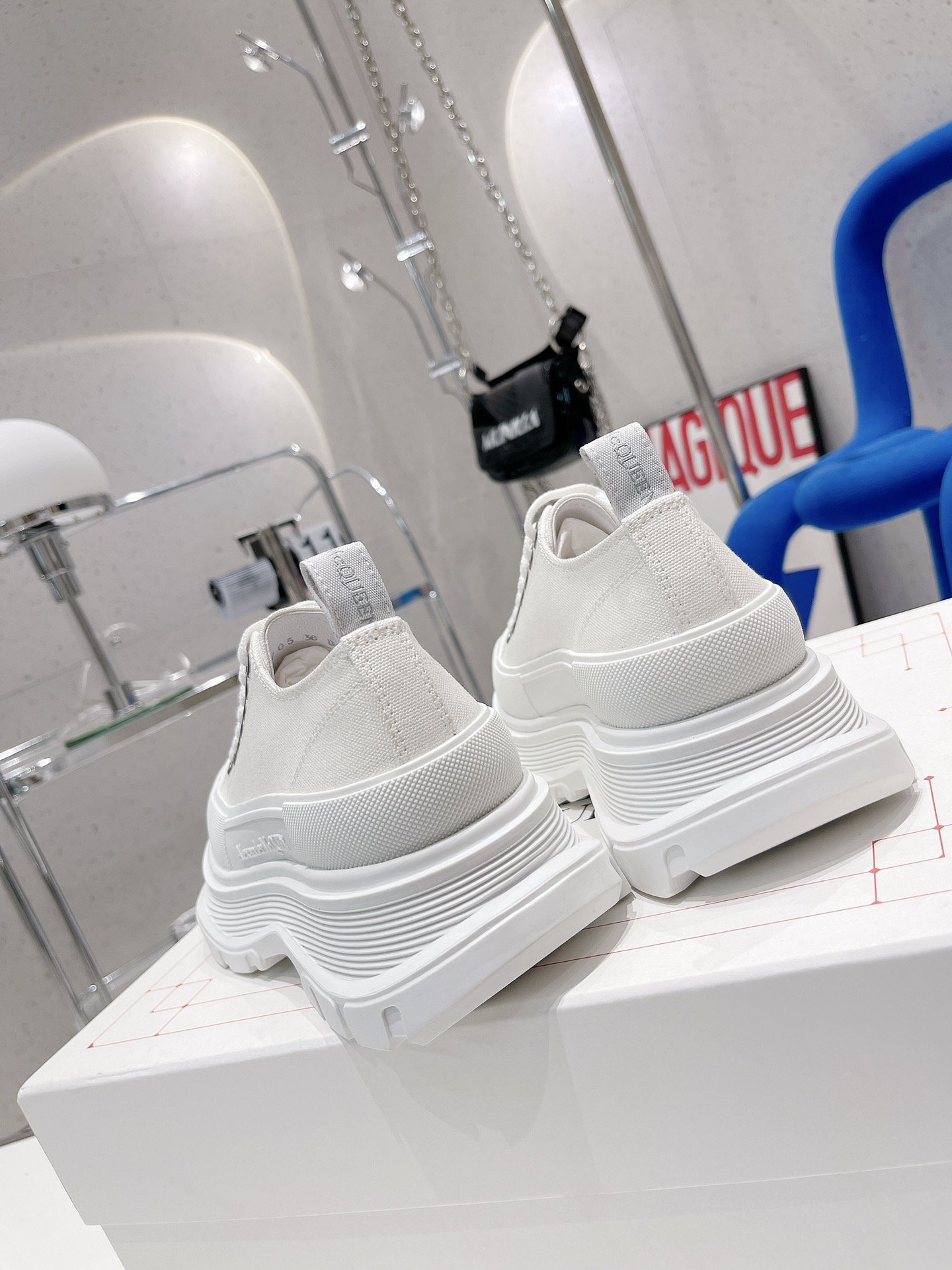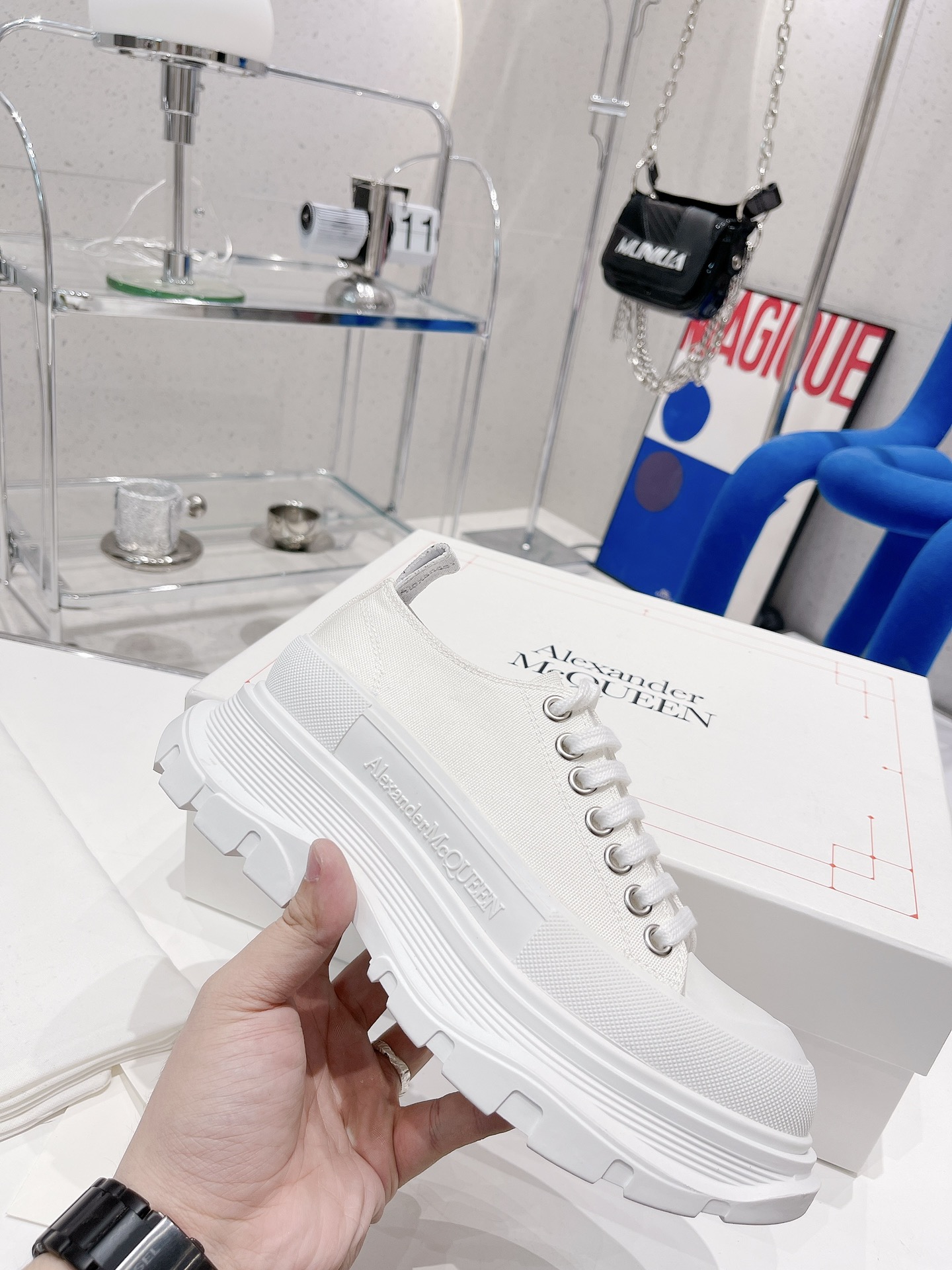 这款鞋子是AAAAA 1:1 质量 (非常棒). 使用了和原版一模一样的材料. 商标部分也保持了和亚历山大·麦昆/McQueen一样. 图片拍摄是实物鞋子拍摄, 您所收到的实物保证和我们图片一模一样.