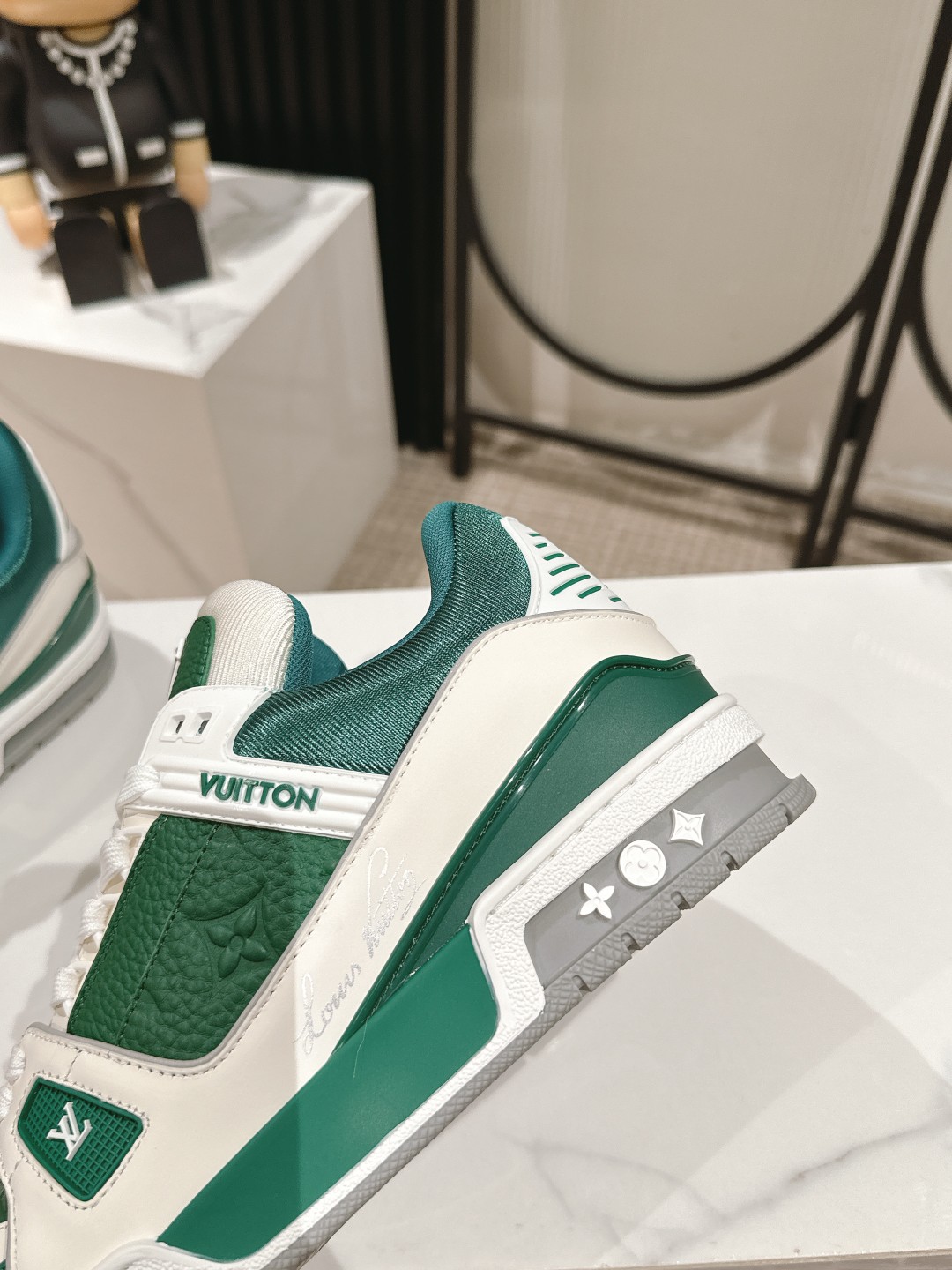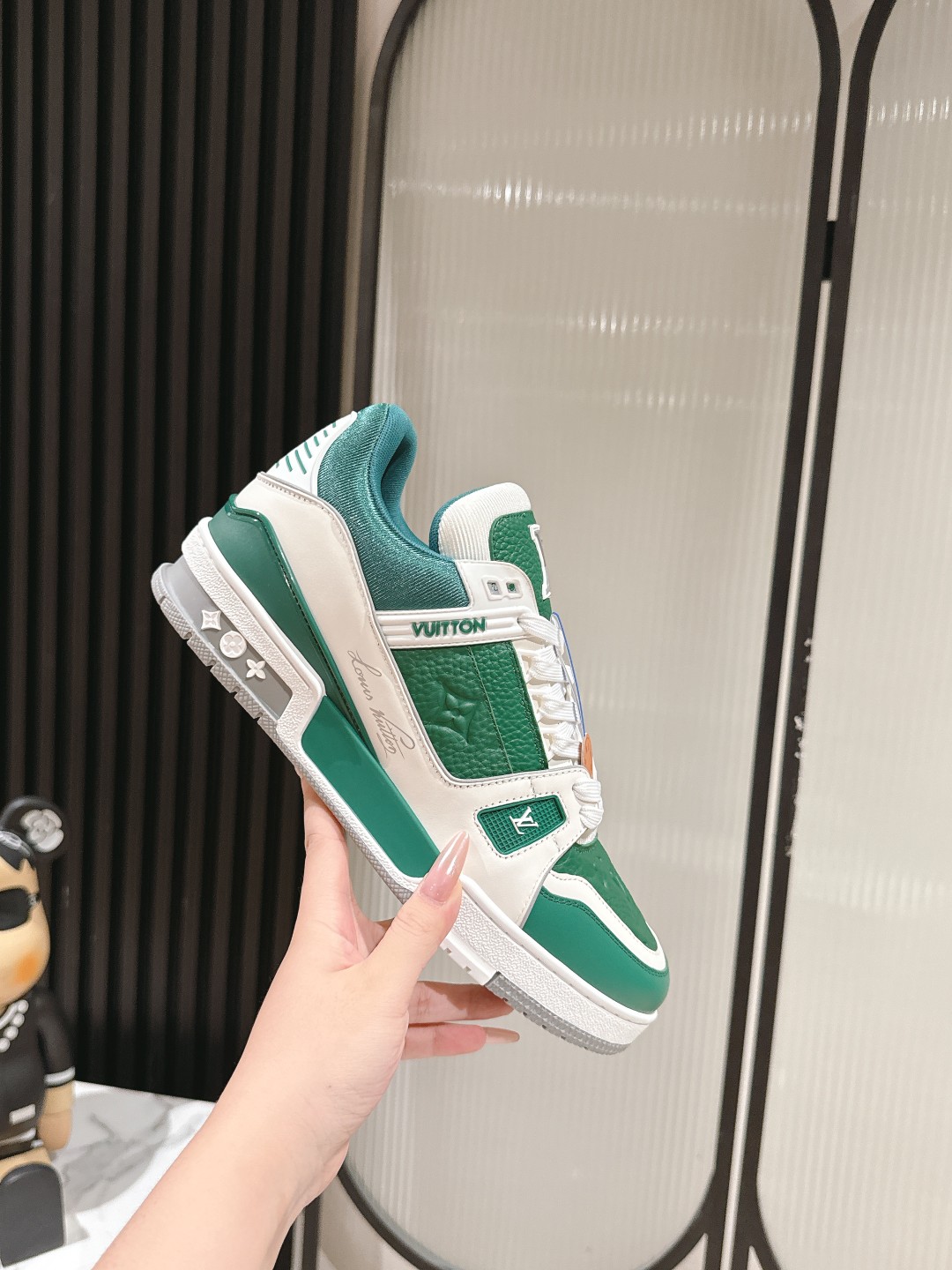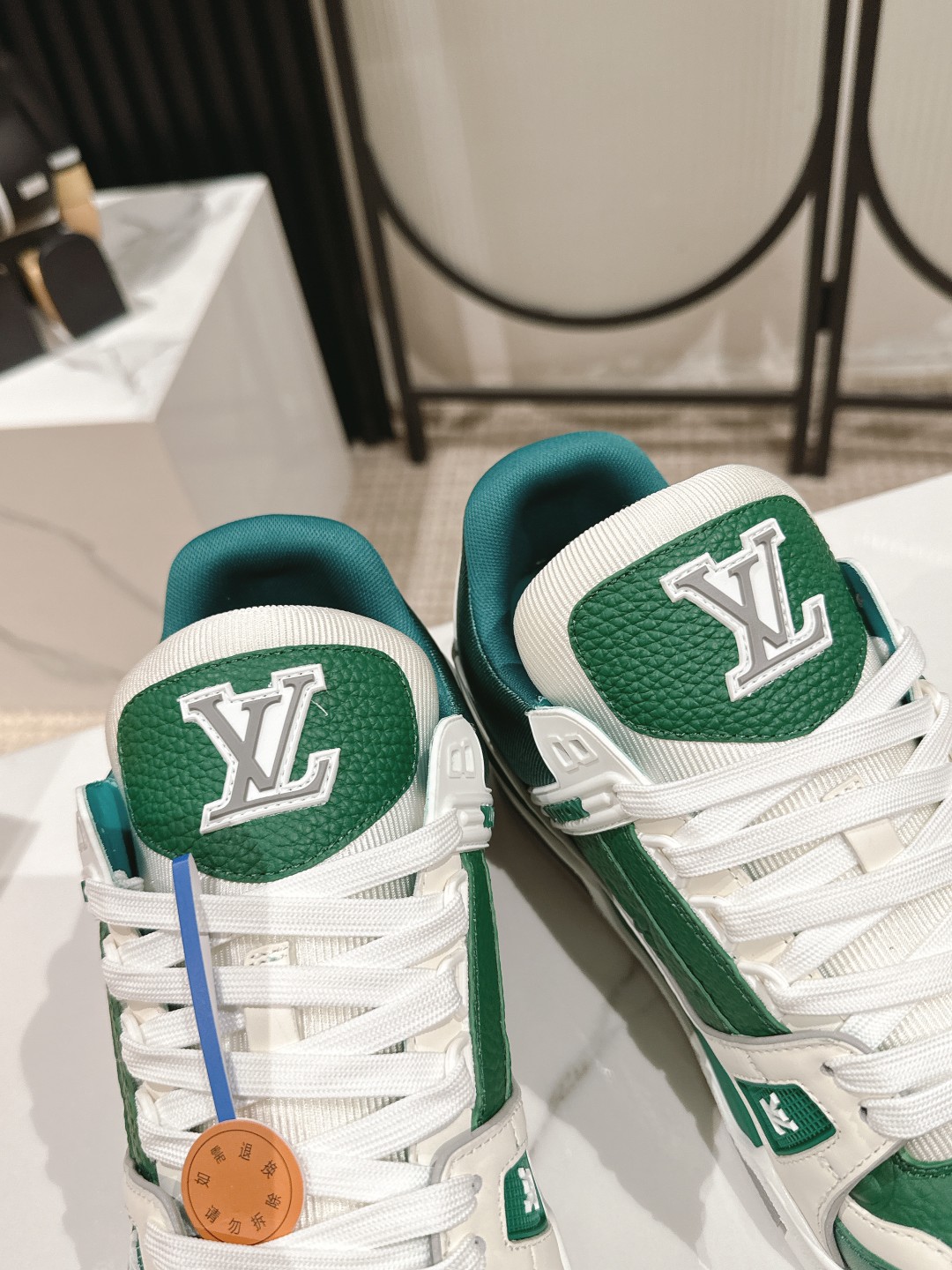 这款鞋子是AAAAA 1:1 质量 (非常棒). 使用了和原版一模一样的材料. 商标部分也保持了和路易威登/Louis Vuitton一样. 图片拍摄是实物鞋子拍摄, 您所收到的实物保证和我们图片一模一样.