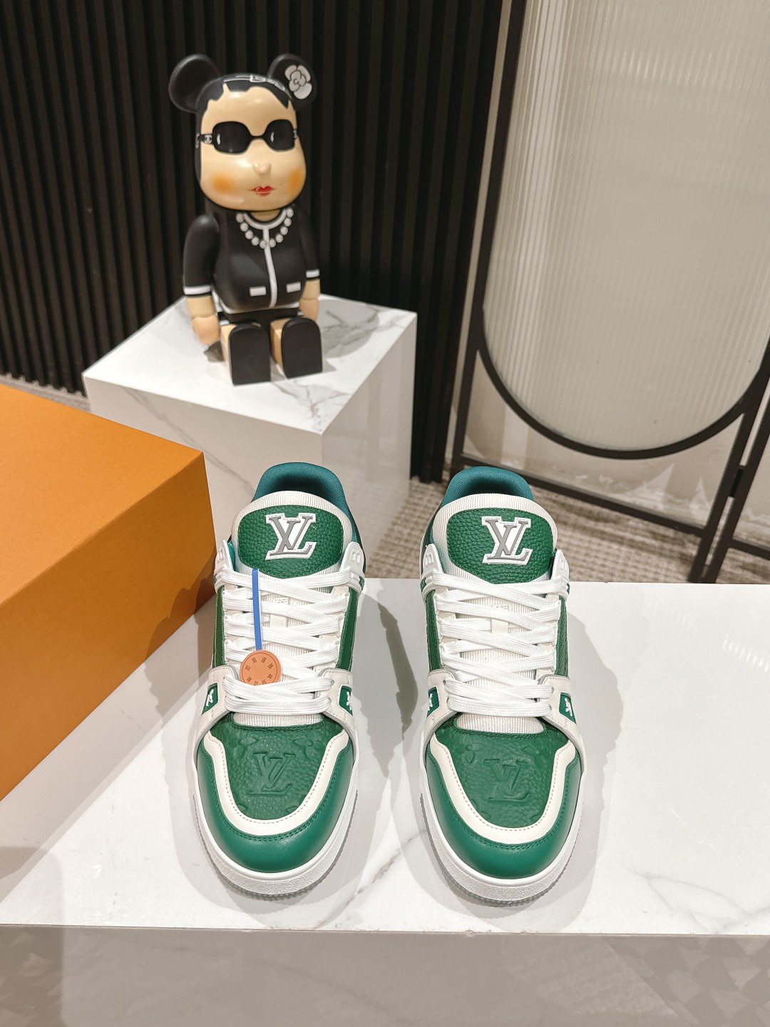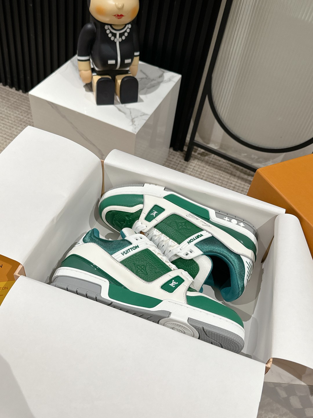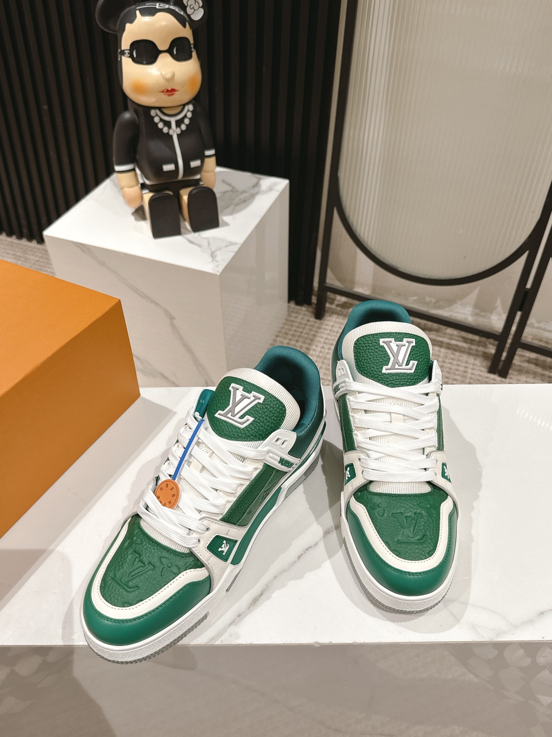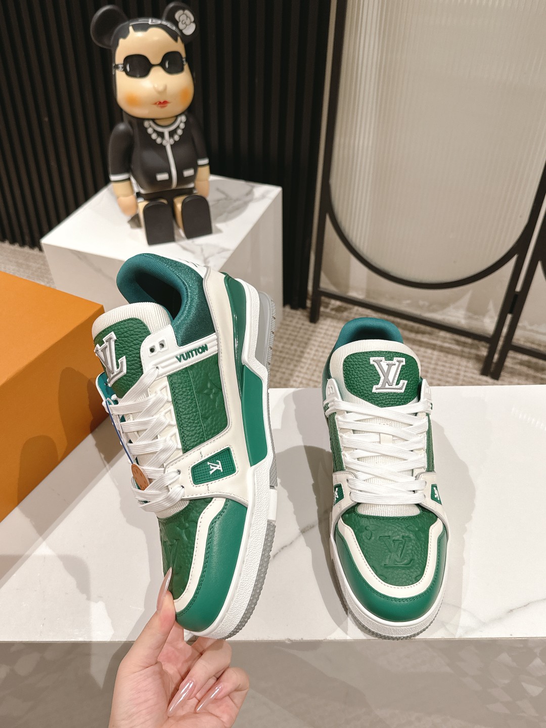 这款鞋子是AAAAA 1:1 质量 (非常棒). 使用了和原版一模一样的材料. 商标部分也保持了和路易威登/Louis Vuitton一样. 图片拍摄是实物鞋子拍摄, 您所收到的实物保证和我们图片一模一样.