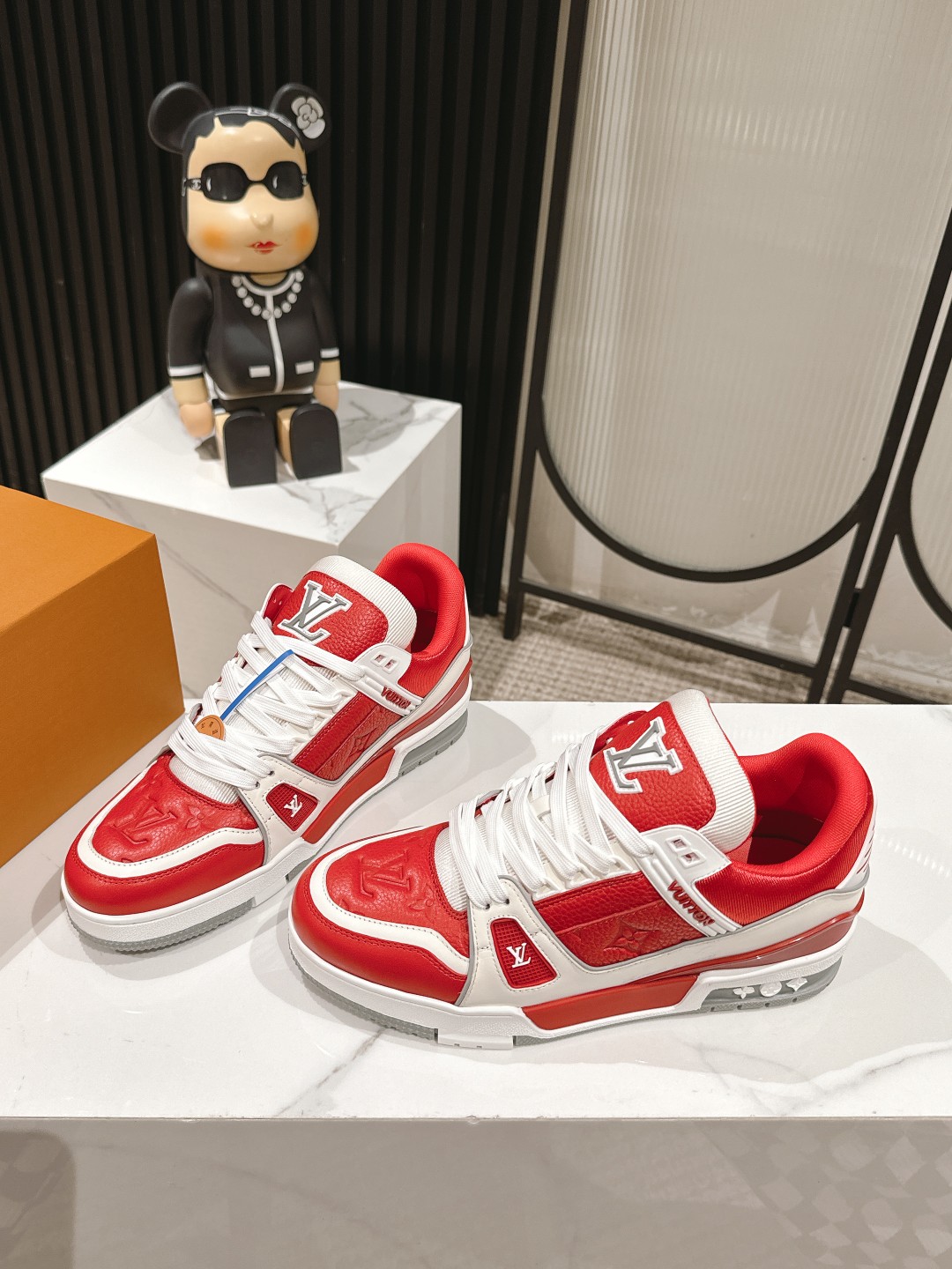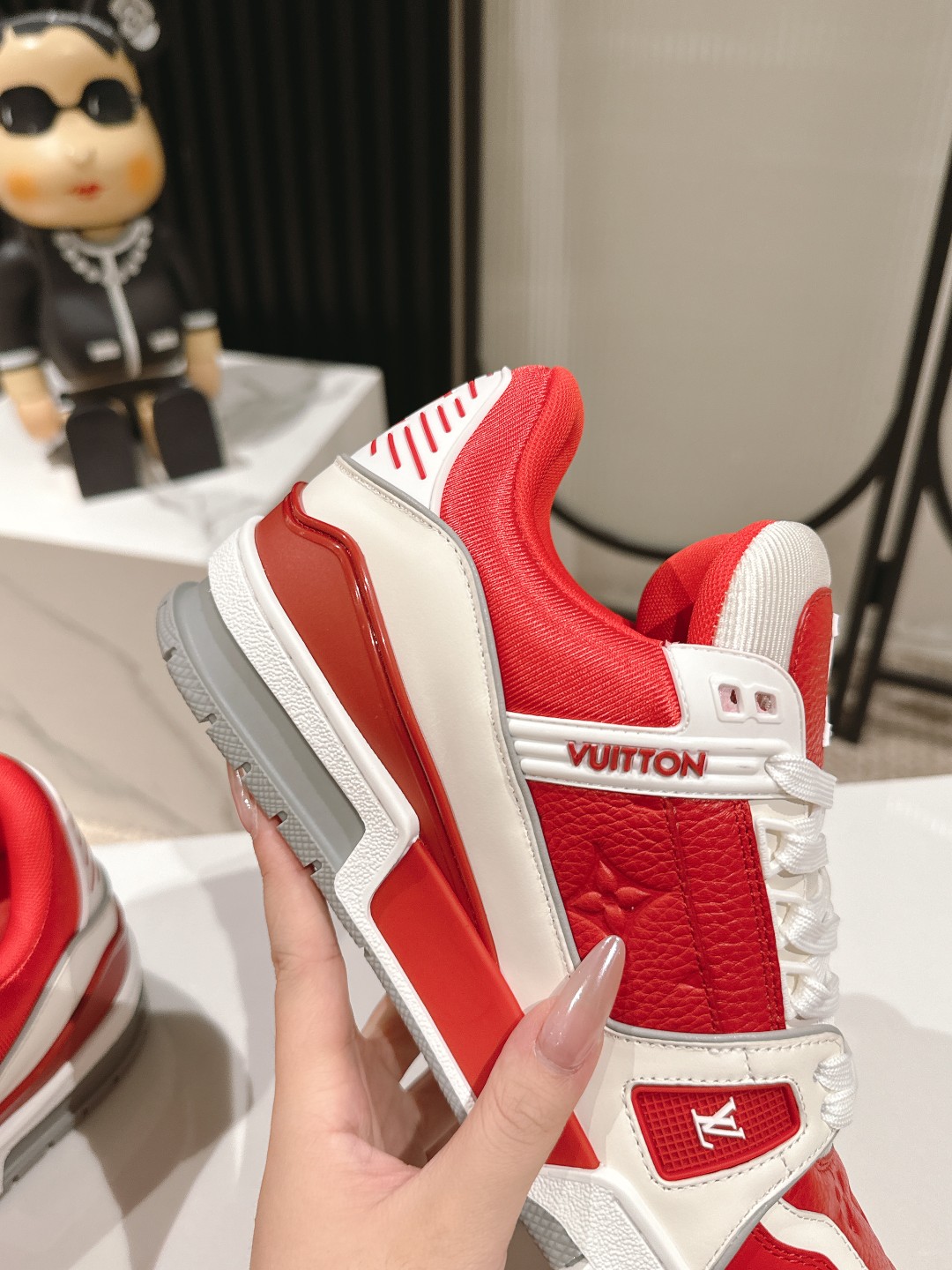 这款鞋子是AAAAA 1:1 质量 (非常棒). 使用了和原版一模一样的材料. 商标部分也保持了和路易威登/Louis Vuitton一样. 图片拍摄是实物鞋子拍摄, 您所收到的实物保证和我们图片一模一样.
