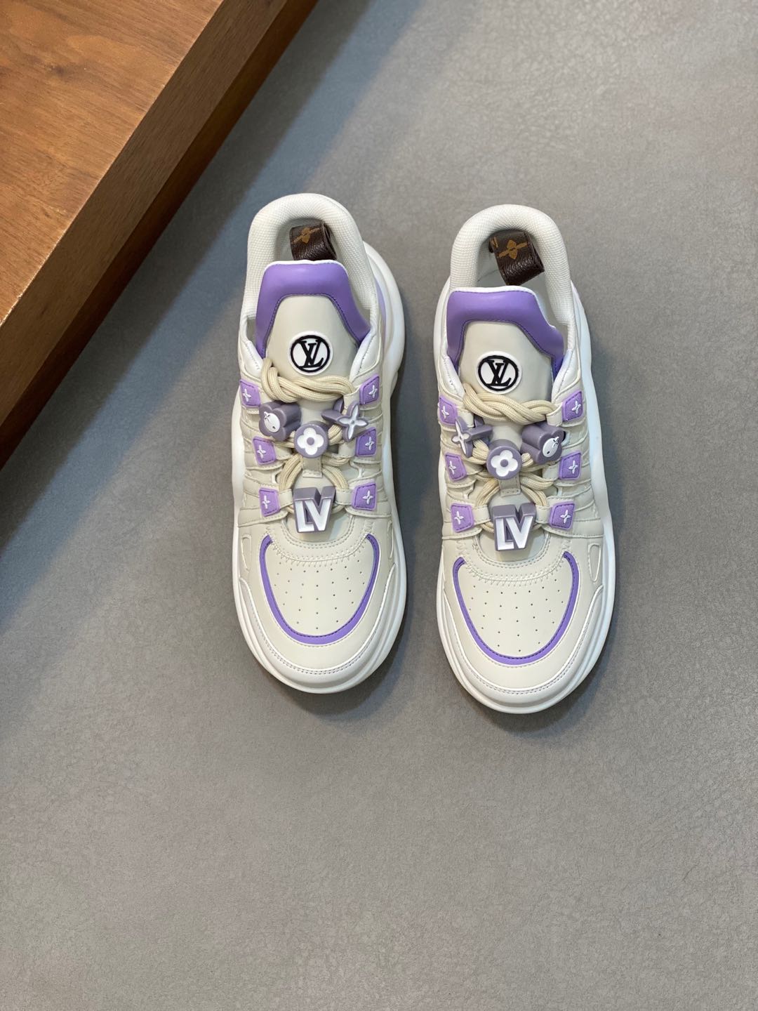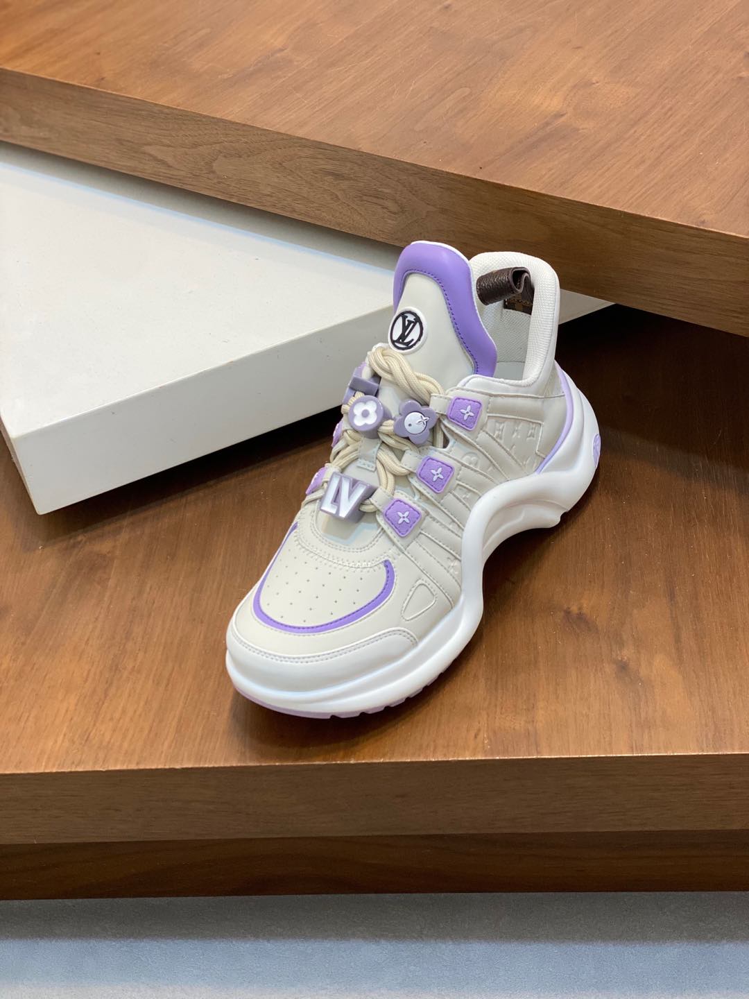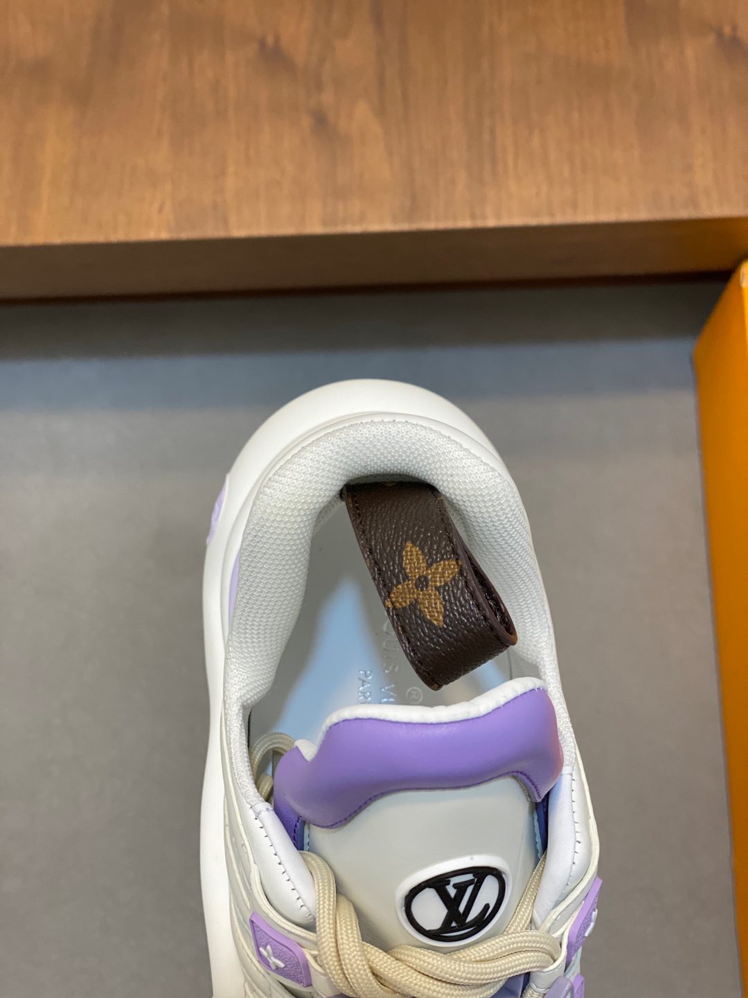 这款鞋子是AAAAA 1:1 质量 (非常棒). 使用了和原版一模一样的材料. 商标部分也保持了和路易威登/Louis Vuitton一样. 图片拍摄是实物鞋子拍摄, 您所收到的实物保证和我们图片一模一样.